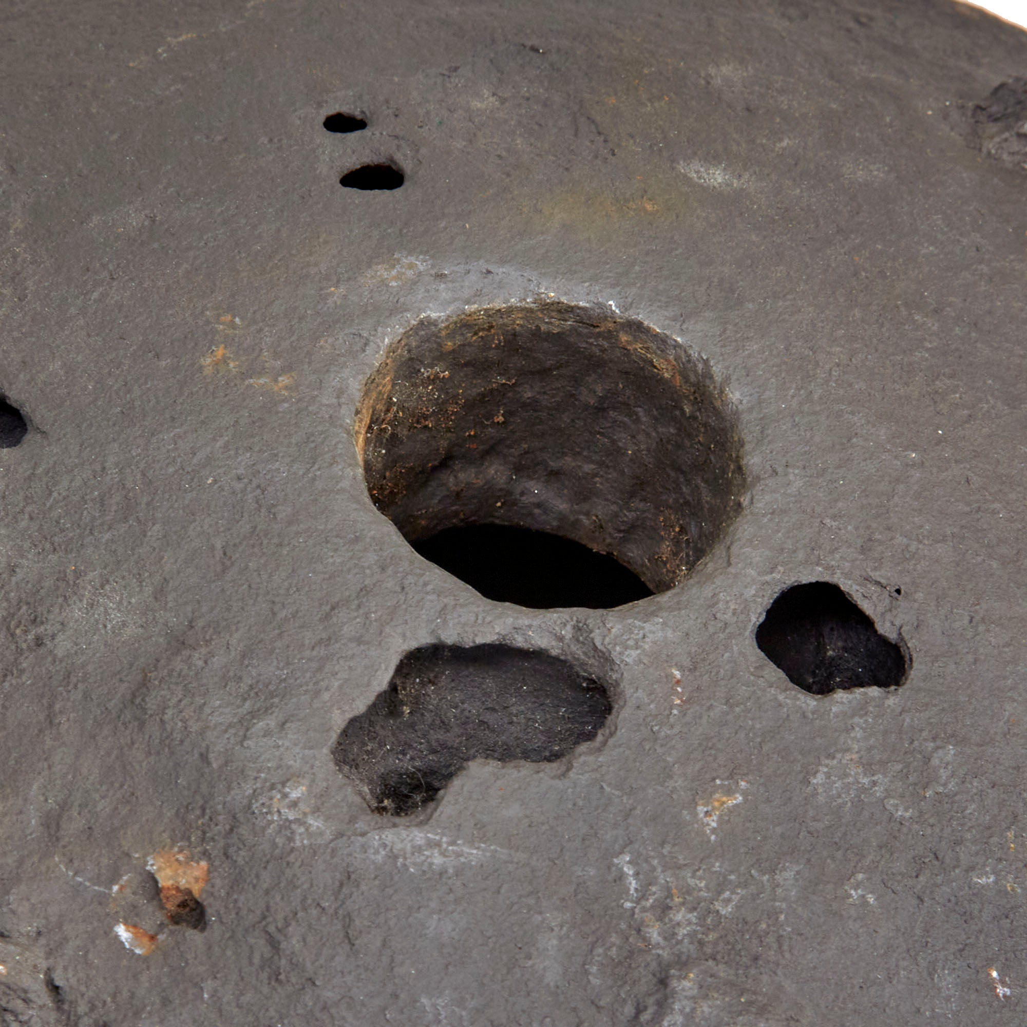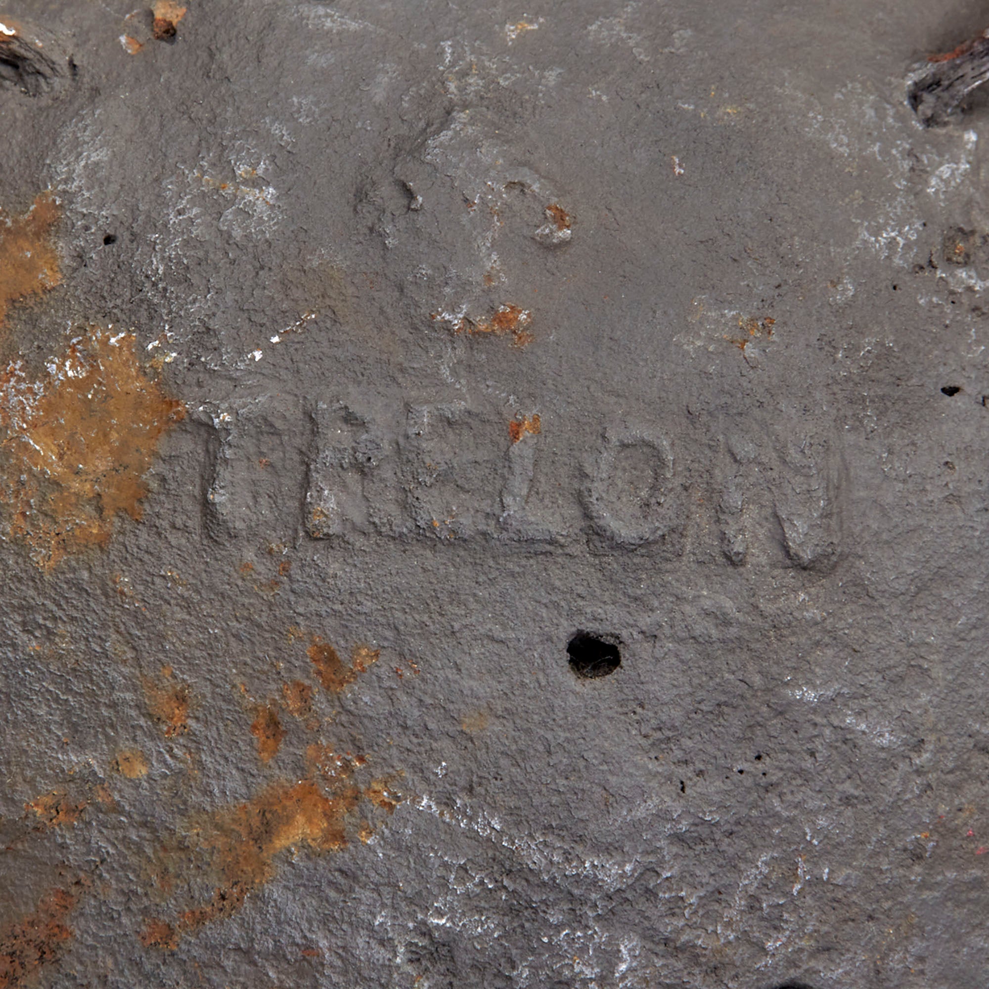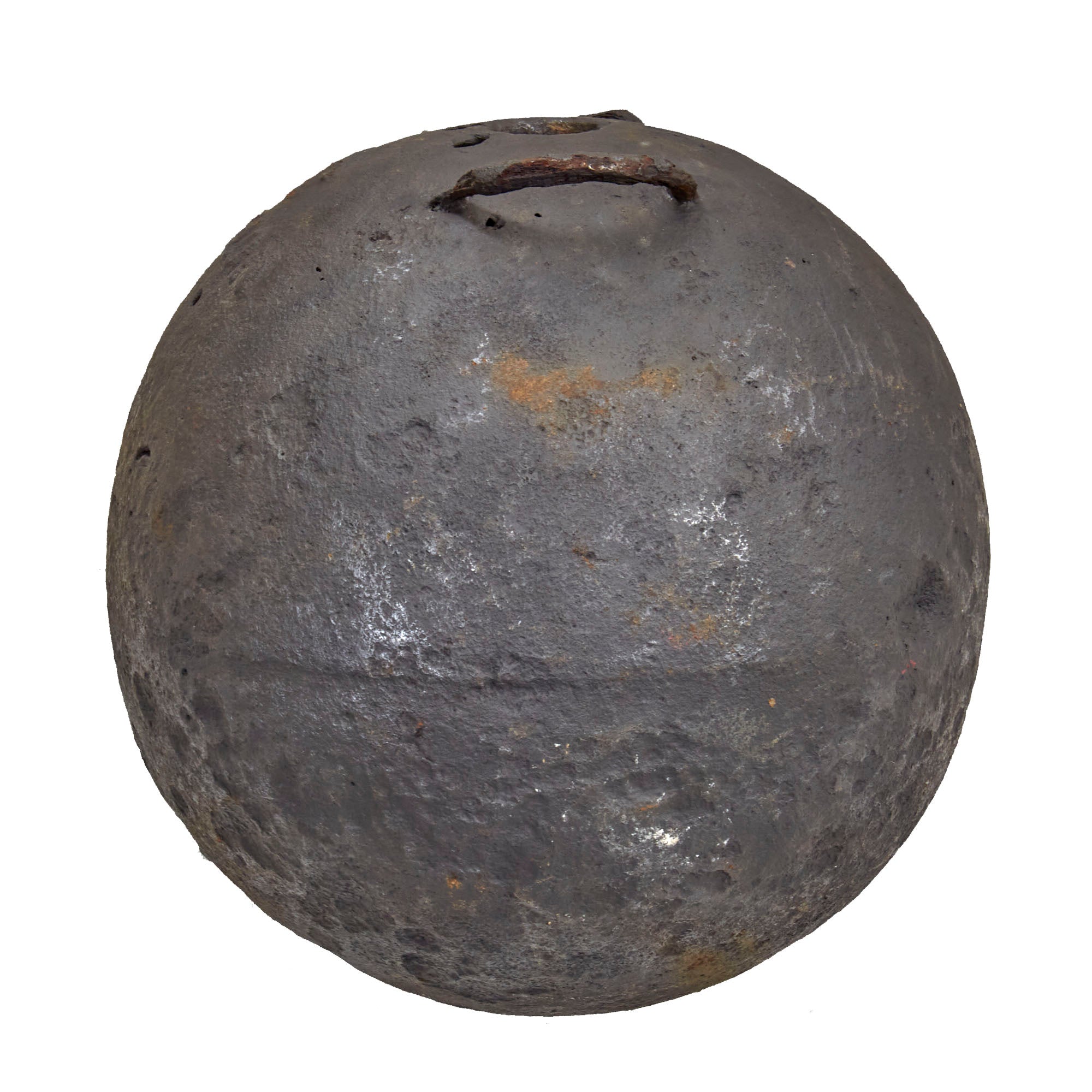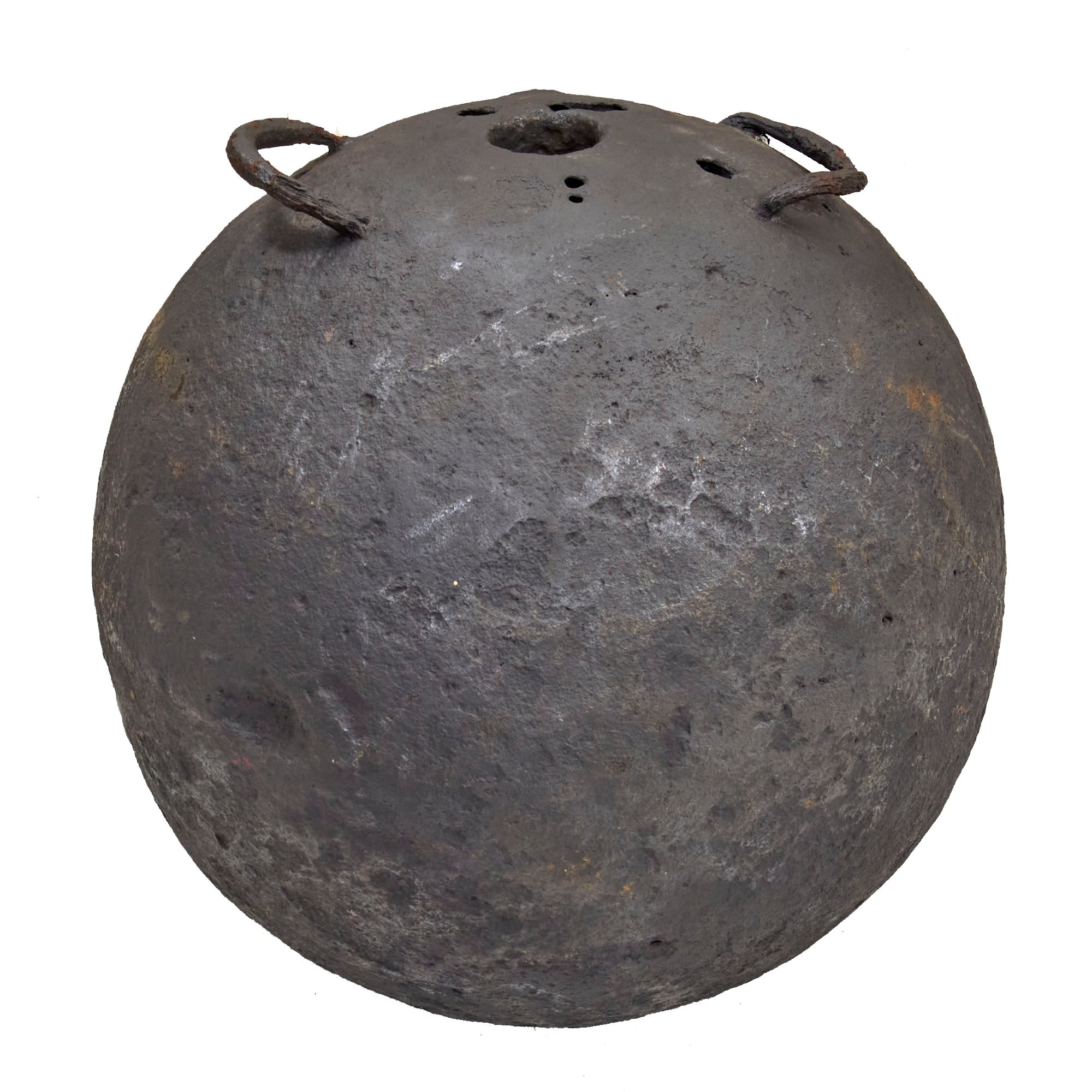 Original Item: Only One Available.This is a fantastic example of a genuine French 18th or early 19th century 12 inch diameter hollow mortar bomb with two lifting rings or lifting "ears" still intact. The mortar is iron and has a Fleur-de-Lis over the word TRELON embossed near the top, for the Trélon foundry or arsenal where it was manufactured. The ball measures approximately 12 inches in diameters with a 39 inch circumference and weight approximately 100 LBS. Overall condition is good with areas of heavy material loss as shown, and previous rust which has been eradicated. A very rare hard-to-find piece that dates from the American Revolution or Napoleonic Wars!
