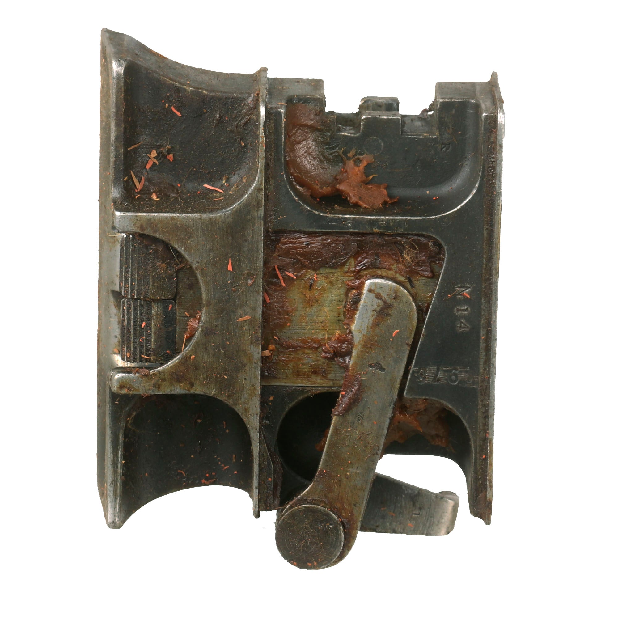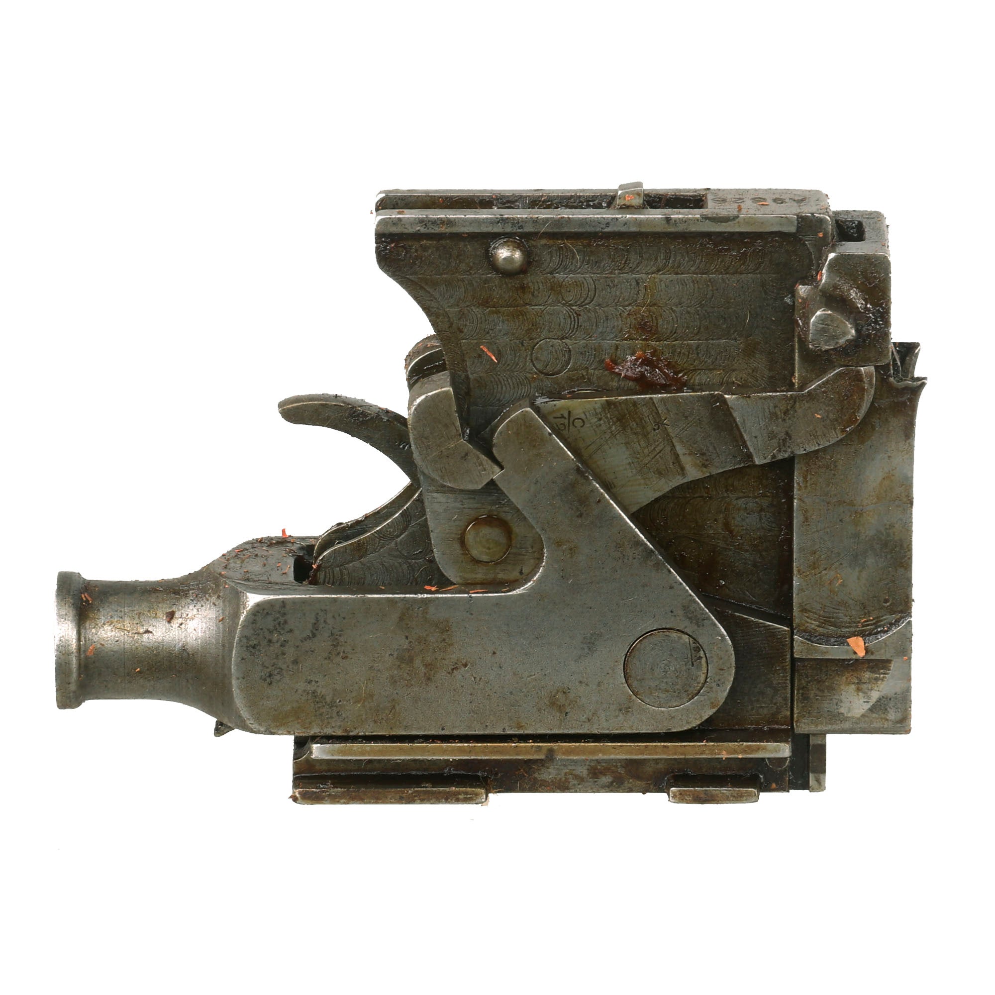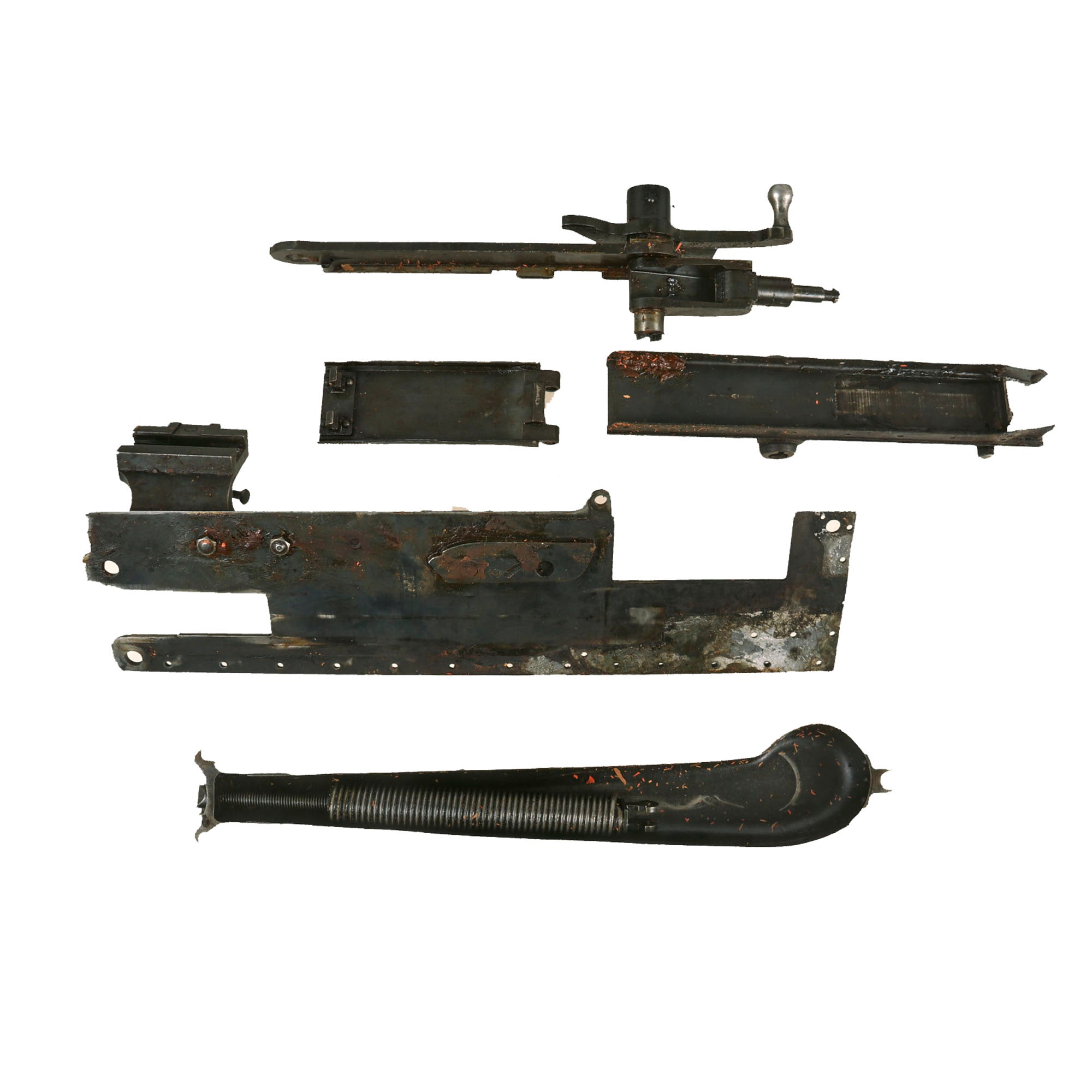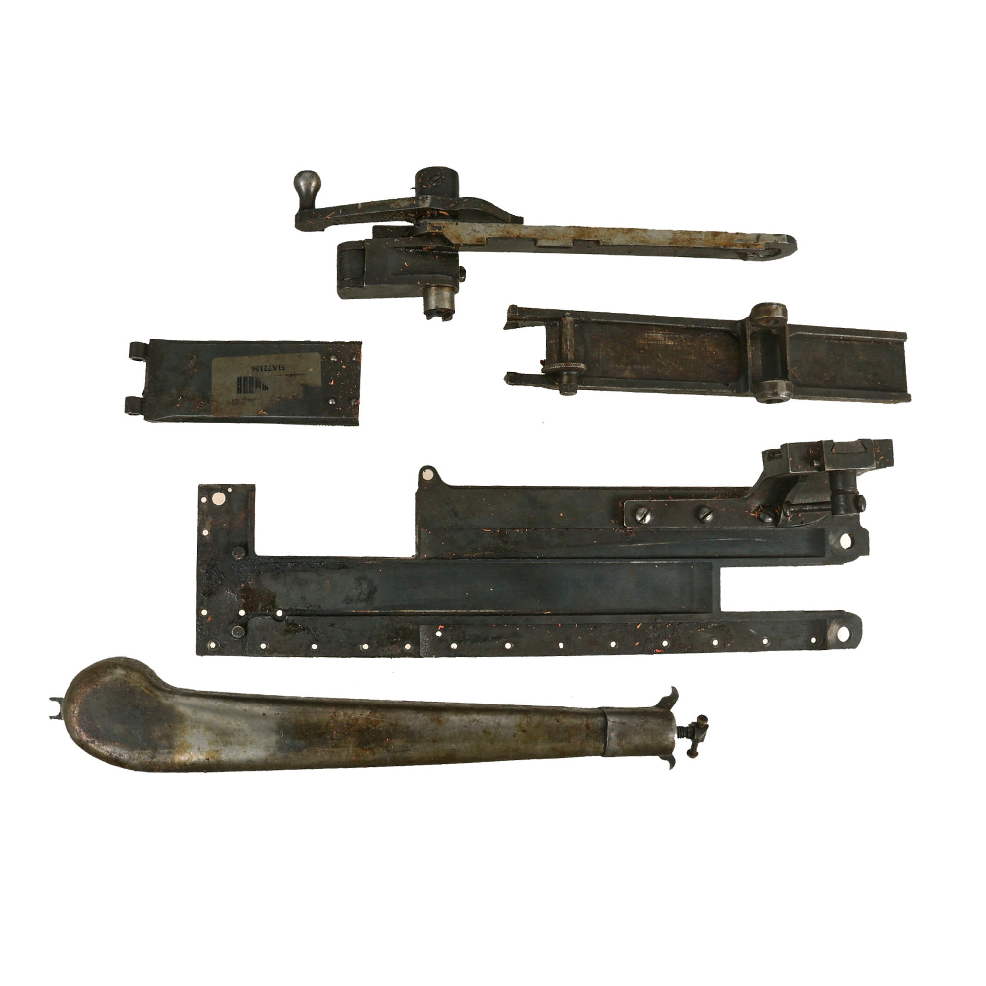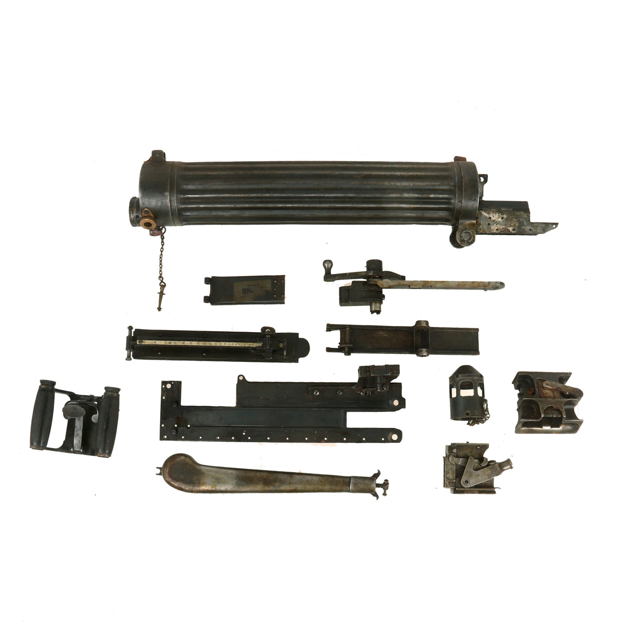 The Vickers Parts set offered here has Serial number N14 or 14 on most of the major components, with the exception of the lock and the barrel, which were probably replaced long ago as the main wearing parts. Marked parts include the water jacket, feed block, top covers, spade grip assembly, crank lever assembly, barrel extension plates, and more. There may also be crossed out markings next to the new serialization as well. Many components also bear early markings of V.S.M. (Vickers, Sons & Maxim), very desirable early markings.