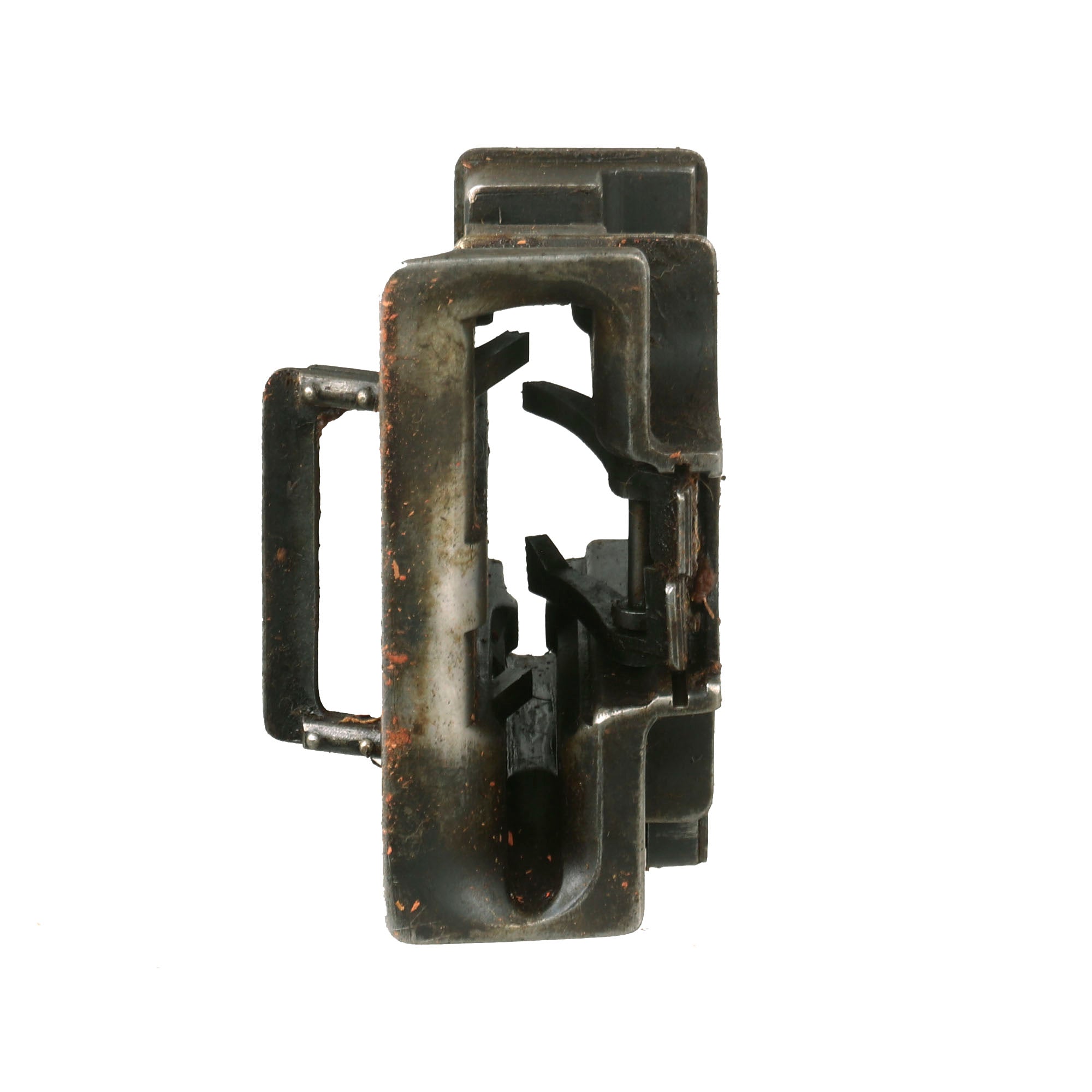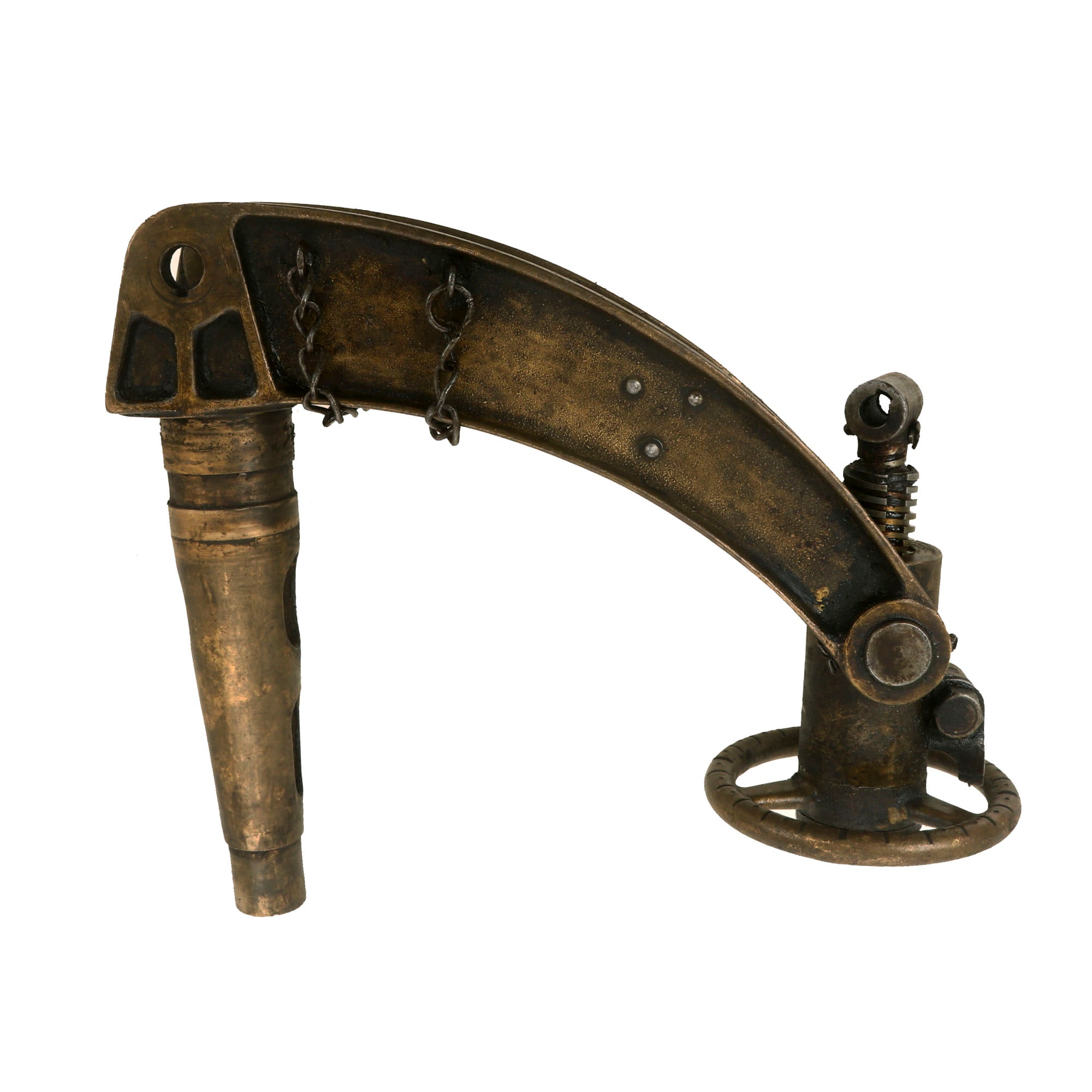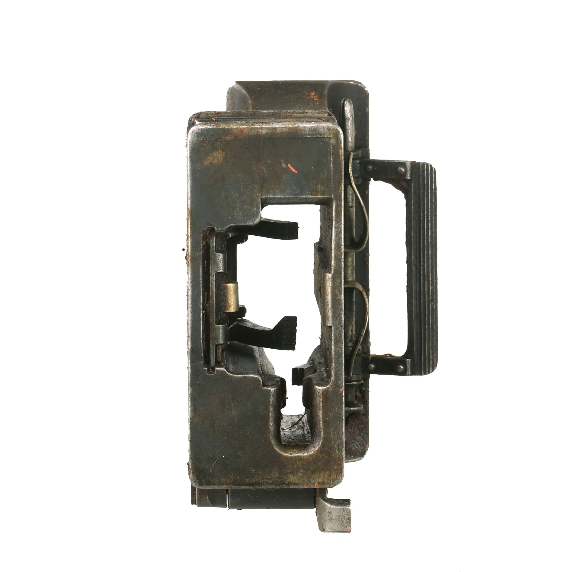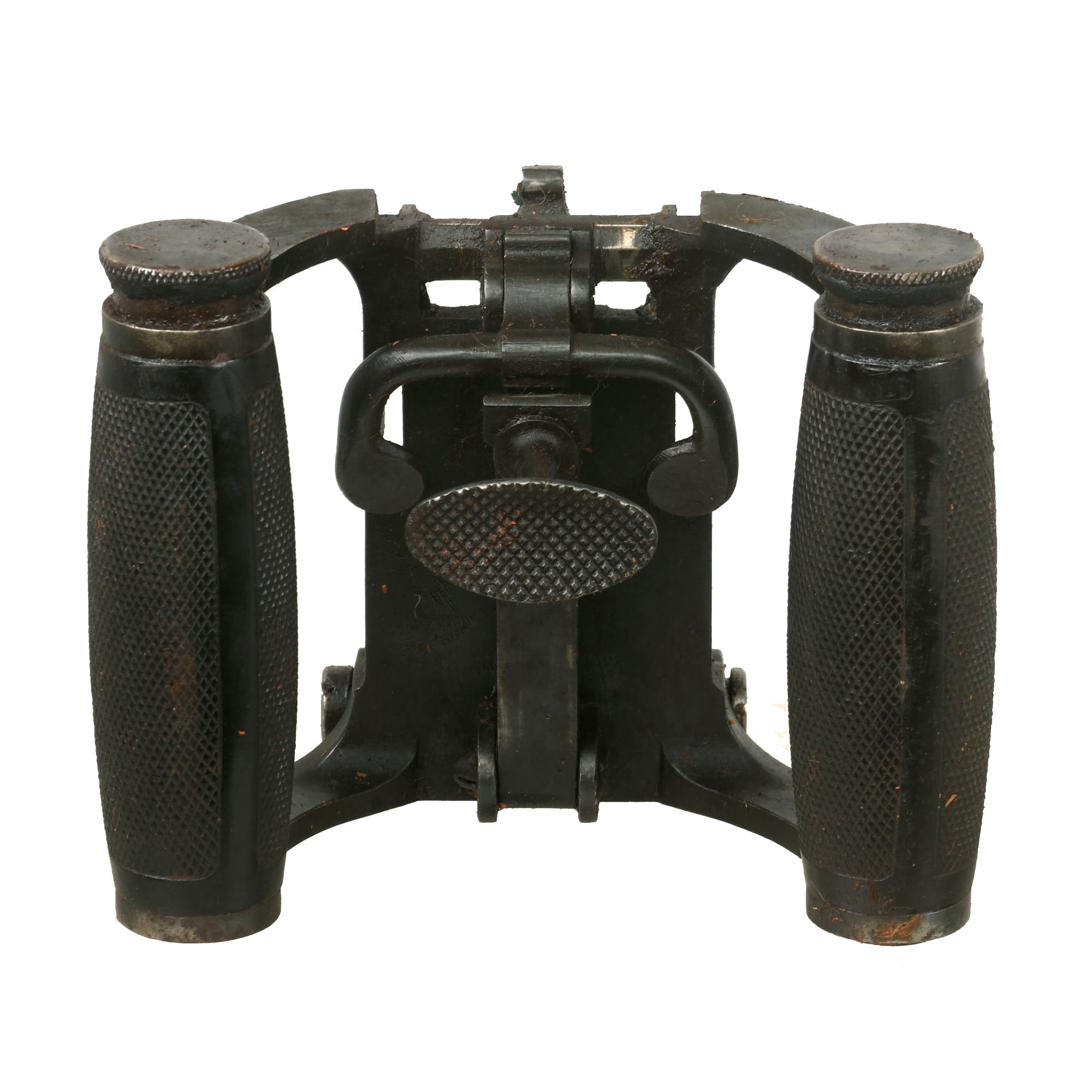 Extraordinarily each gun was fitted with an optical sight mount very similar in style and location to the MG 08 optical system (sight regrettably absent). Additionally each gun was accompanied by a matching numbered tripod (number location is on original tripod data plate). Each of these original tripods was made by COLT and are the U.S. Pattern but the data plates were customized. Still showing VICKERS MACH. GUN / TRIPOD / MARK IV on the upper half the Colt inscription below was removed and SOLEY - GRIMARD stamped in its place. This was done presumably in the hope of future reorders.