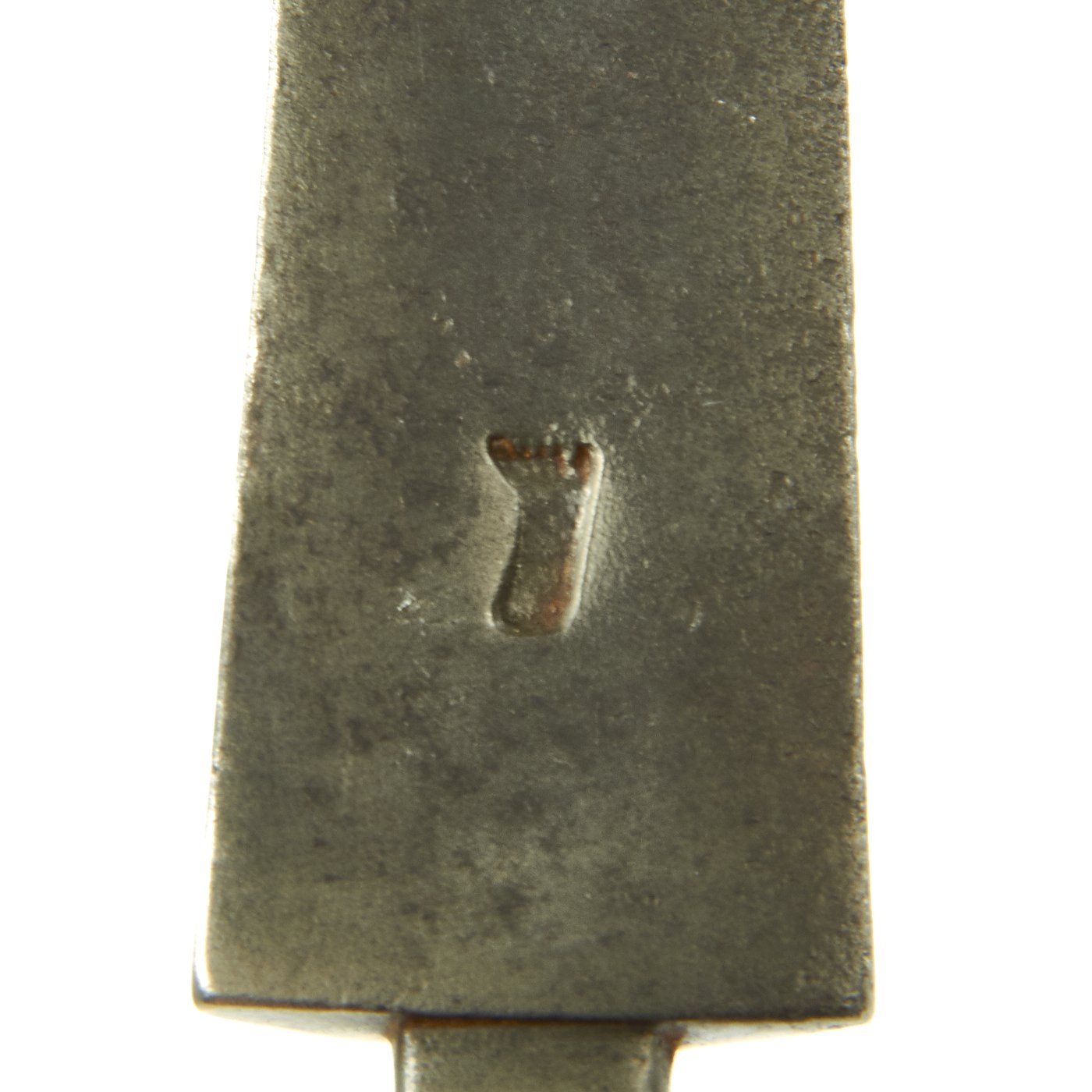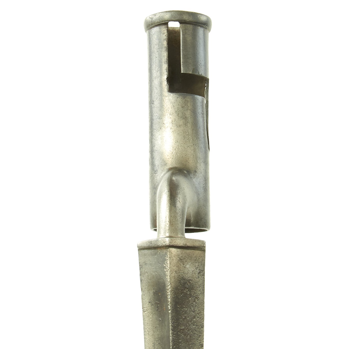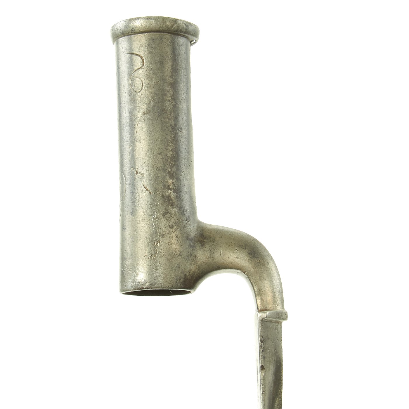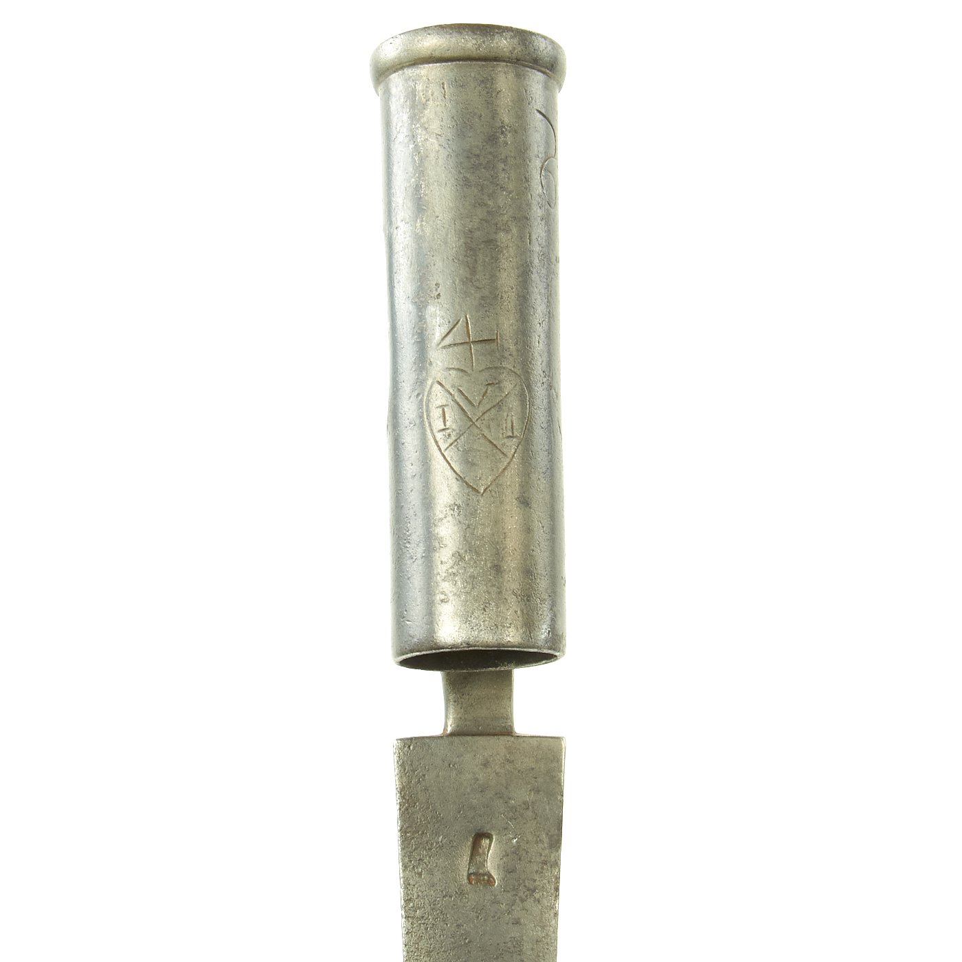 This magnificent example, easily the best we ever had, and we did get over 1800 units in all sorts of conditions, was itself removed from the Officer's Mess display. The barrel has the pair of bare foot prints proof mark for NAKKU, and the socket bayonet, itself bears a single foot print proof mark. The socket bayonet also bears faux E.I.C. markings to give the impression that this was imported but that is not the case.