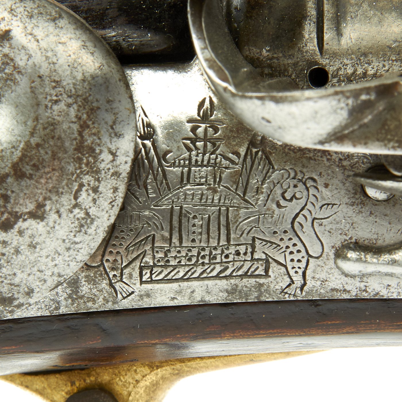Great quantities of British made E.I.C. locks were supplied to Nepal and these were mostly SANITIZED with the removal of the CROWN over G.R. British markings and replaced by a Buddist Temple that was located right next to the old Palace where most of the 55,000 guns we purchased were stored at Lagan Silekhana. Sadly the 2015 Kathmandu Earthquake leveled most of the palace, so now it can only be visited by pictures and videos, as documented in our "Treasure is Where You Find It" documentary.