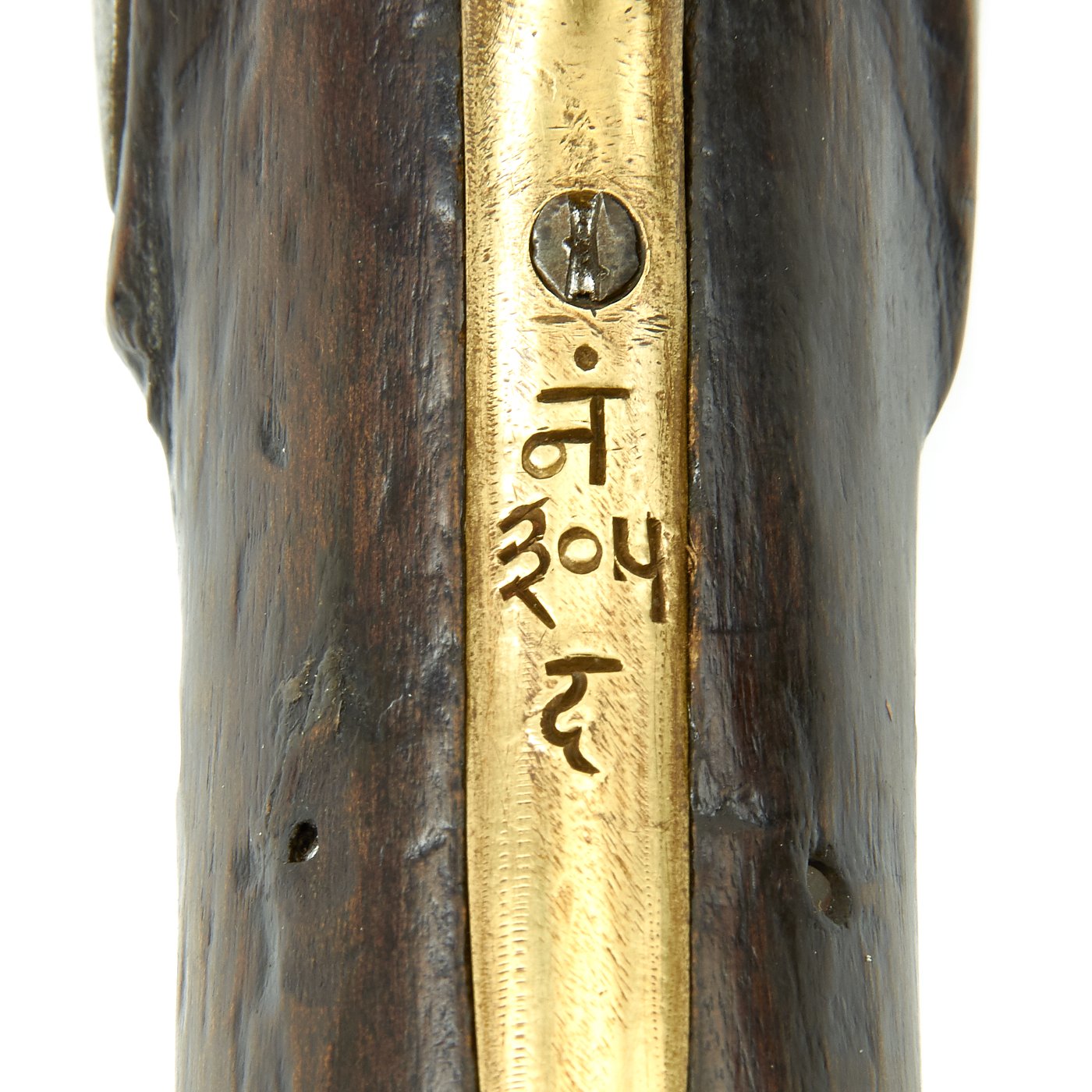 The wood stock is magnificent and the musket has Brass mounts. The trigger guard bears the Nepalese Battalion Marking which can be no doubt identified in GUNS OF THE GURKHAS by John Walter.