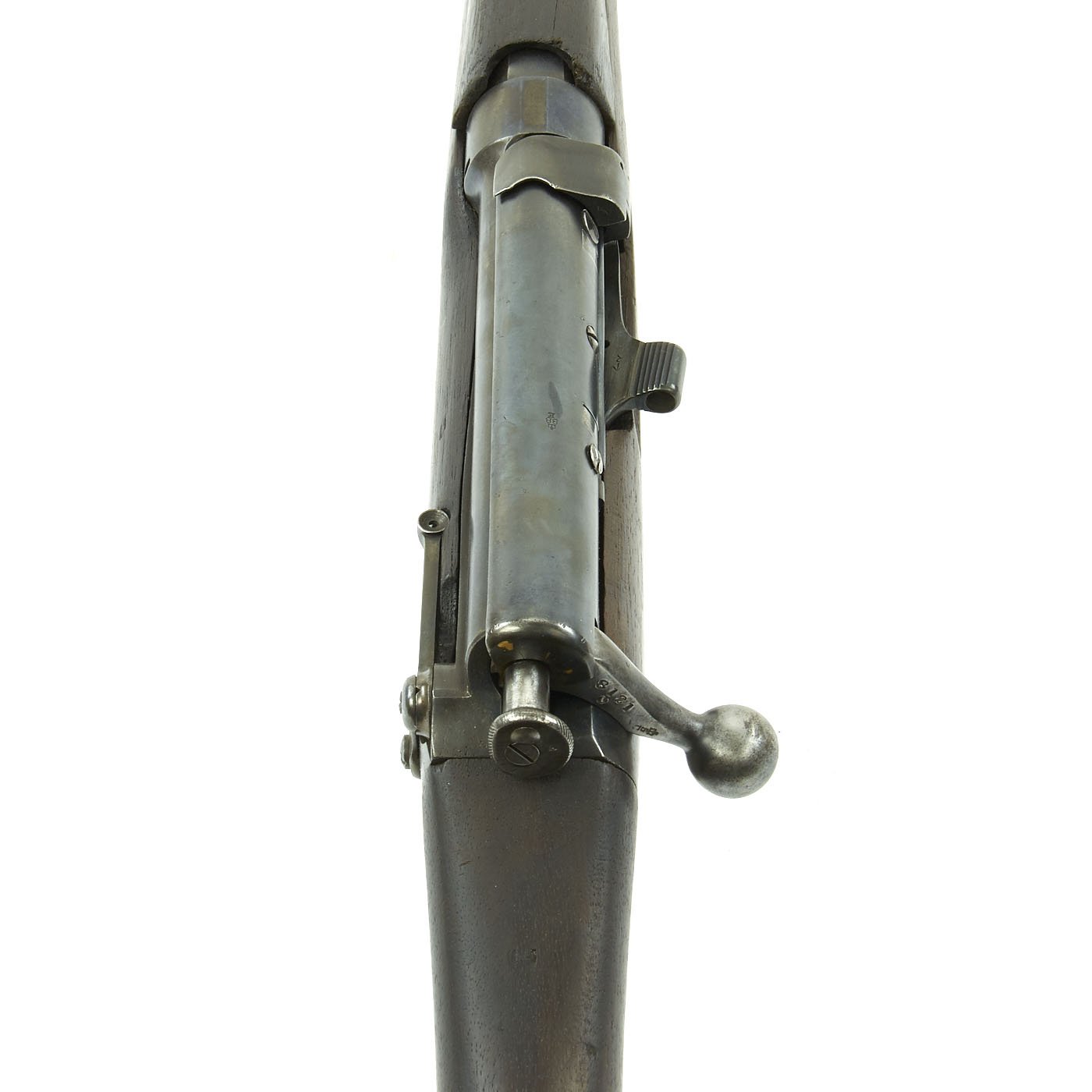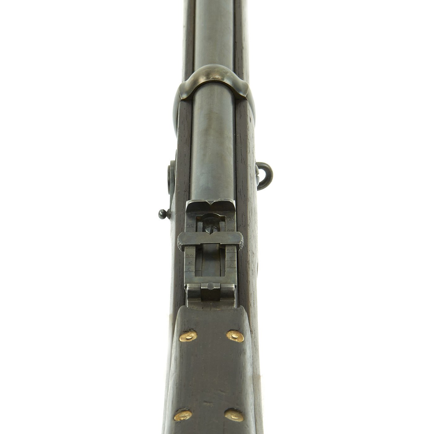Almost completed devoid of markings this rifle bears all matching serial number २ (Nepalese for 2) and a rear sight that is graduated in Negari numbers. The overall condition is excellent, wood has some small dents and wear, the bore is good with clear lands and grooves, and all parts are sound and functional.
