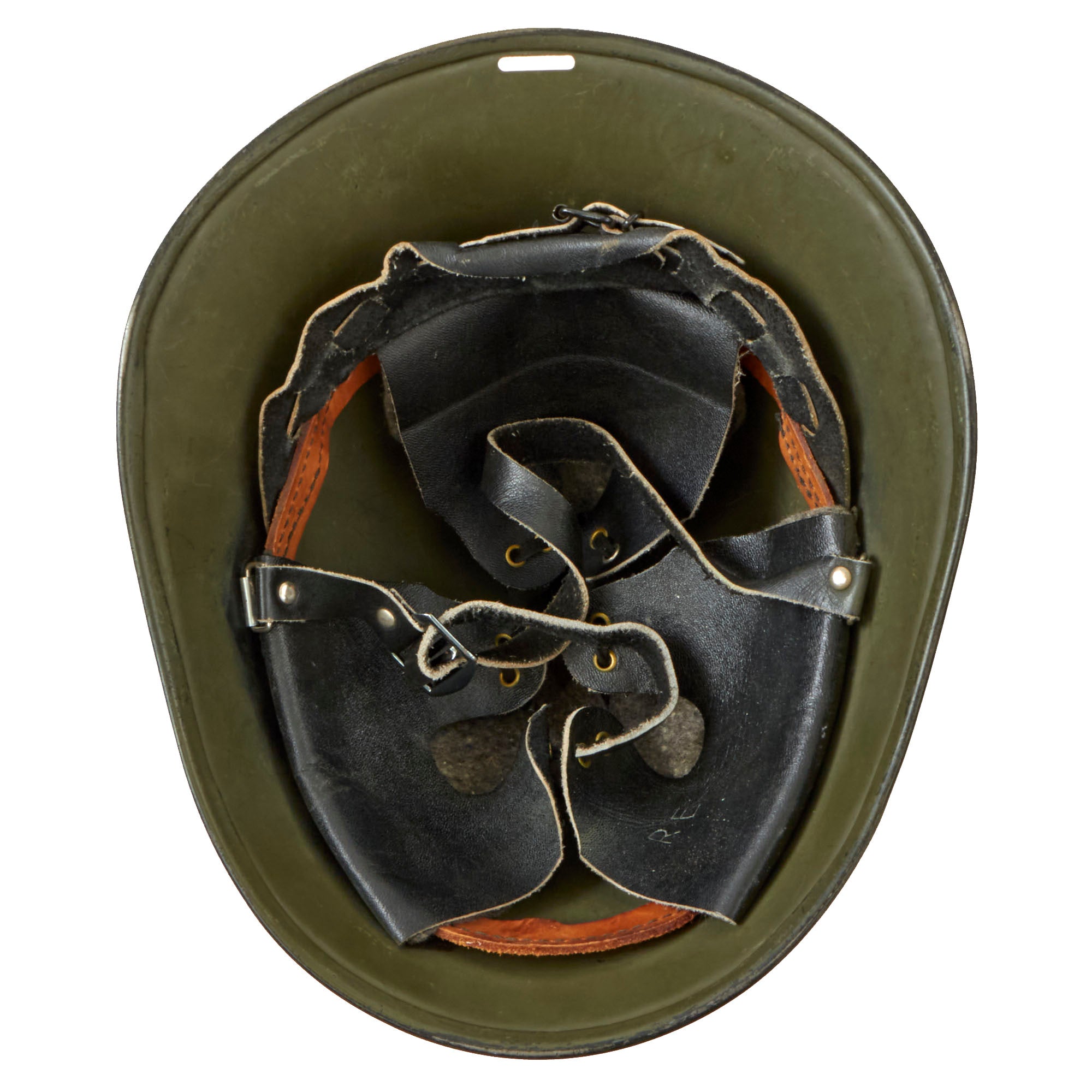 This is an excellent example of a nearly unissued condition Dutch M34 helmet. Comes more than ready for further research and display.