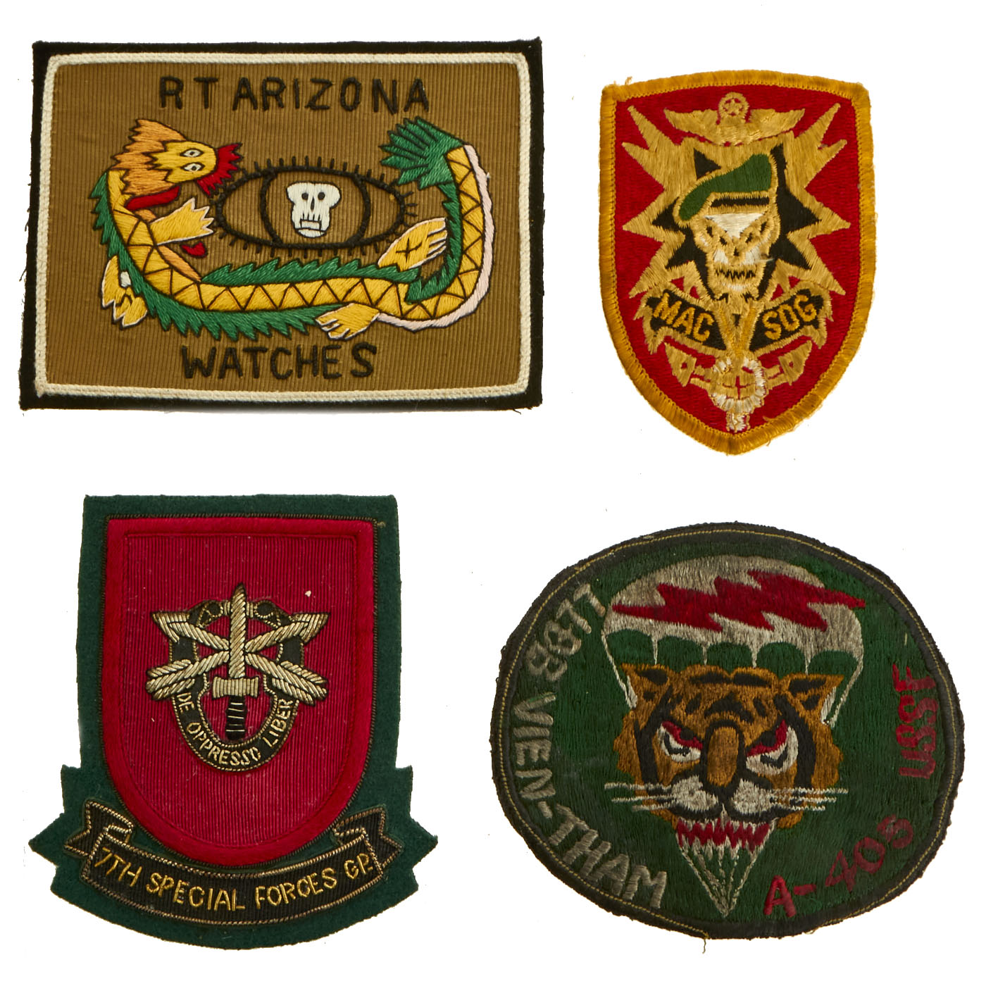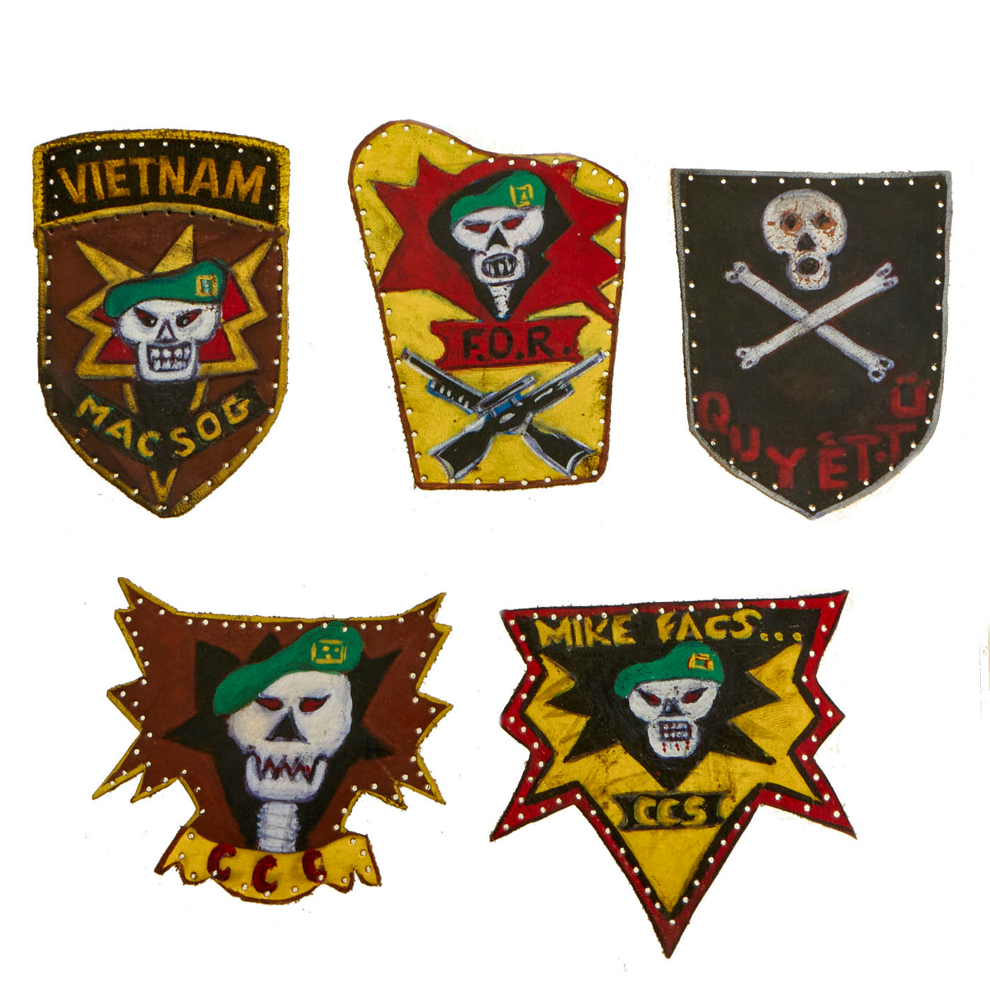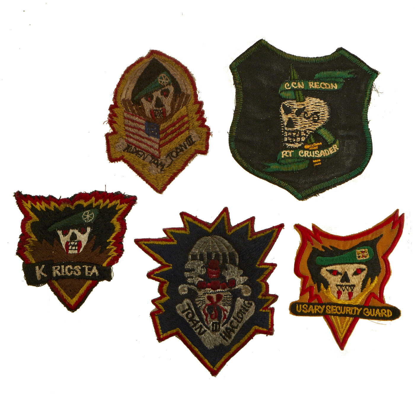 Original and New Items: Only One Lot of 18 Available. This is a lovely assortment of Special FOrces related shoulder sleeve insignias. The 5 Painted Leather patches are more modern replications of original insignia, but it is our belief that the other 13 patches are original manufacture.