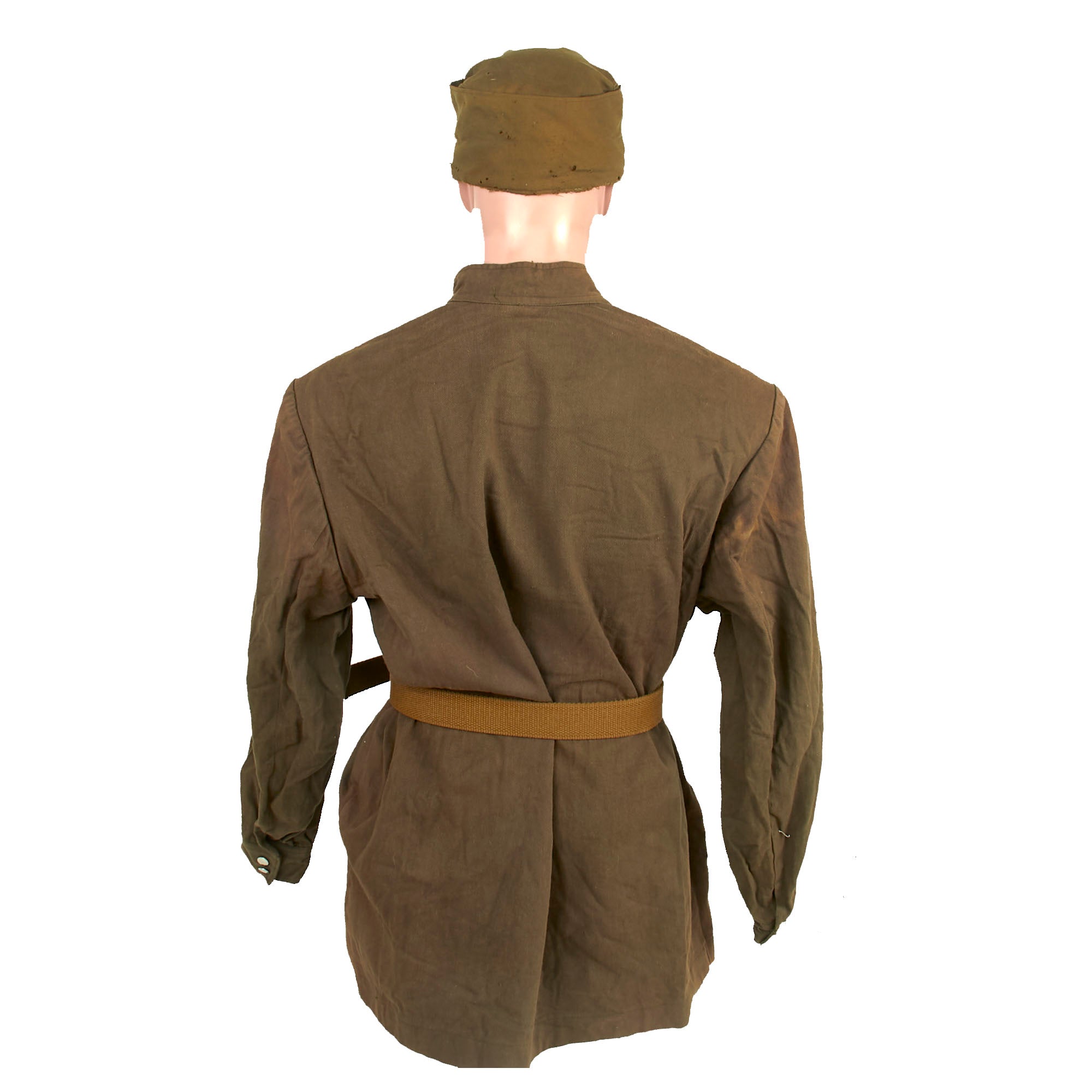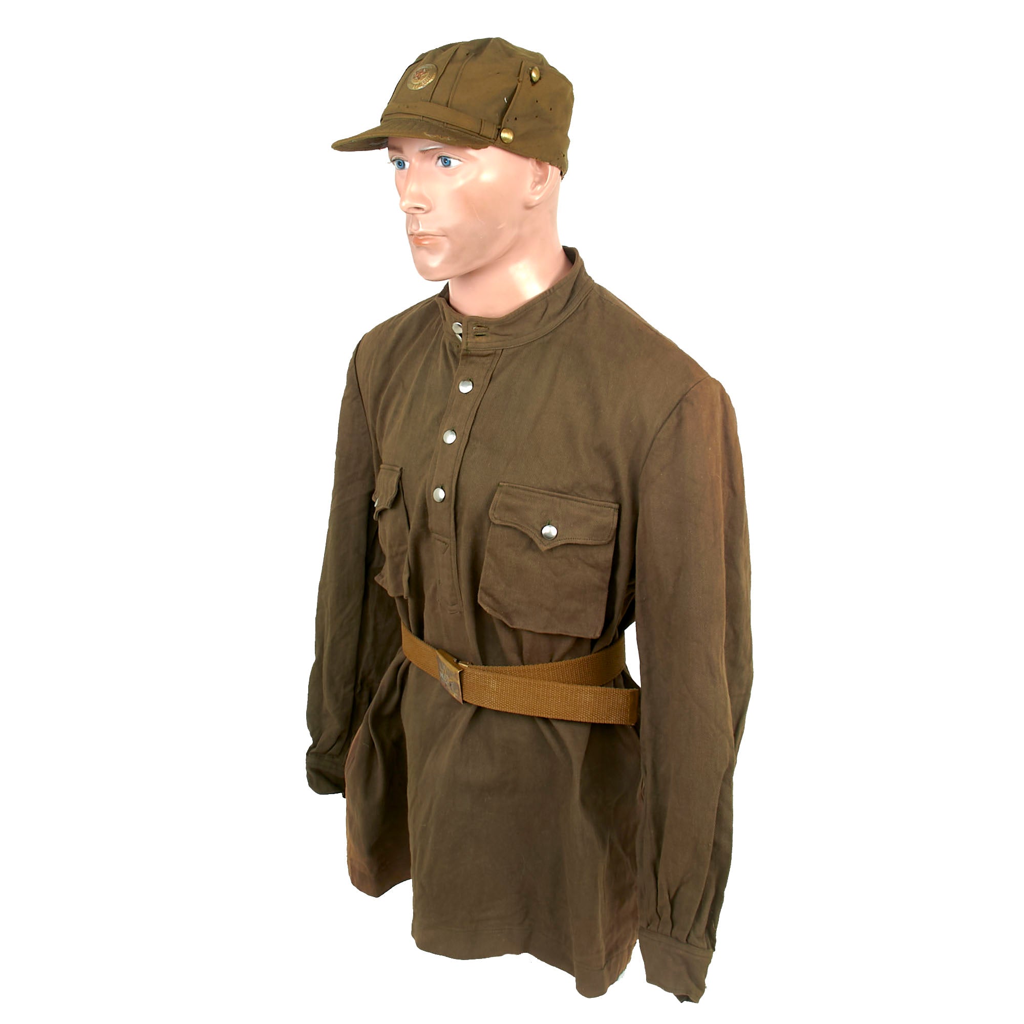 Original Items. Only One Set Available. This is a phenomenal & scarce uniform set for a North Korean officer, consisting of a scarce Korean-made Soviet-Style Gymnastroika pullover, an officer’s field cap, and belt.