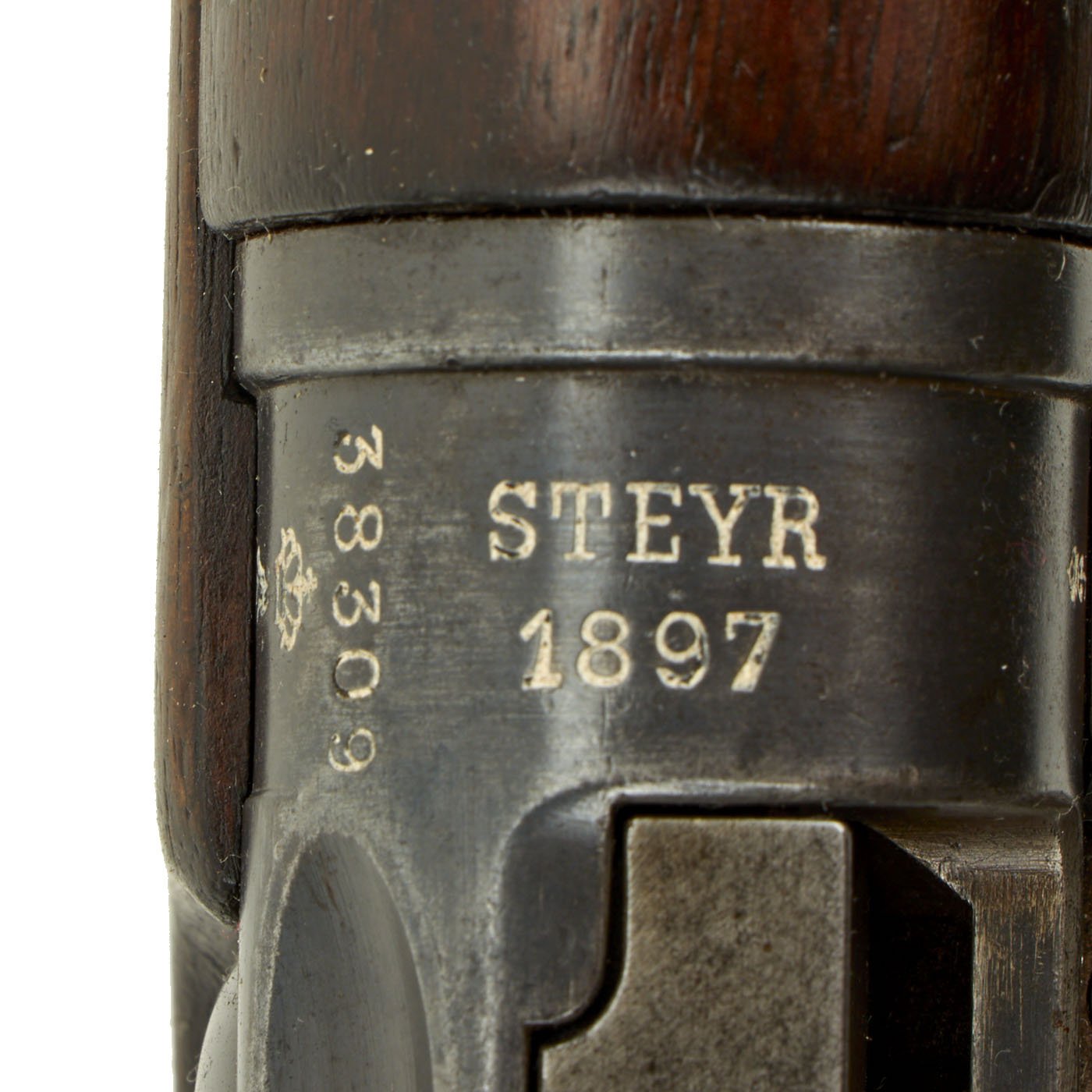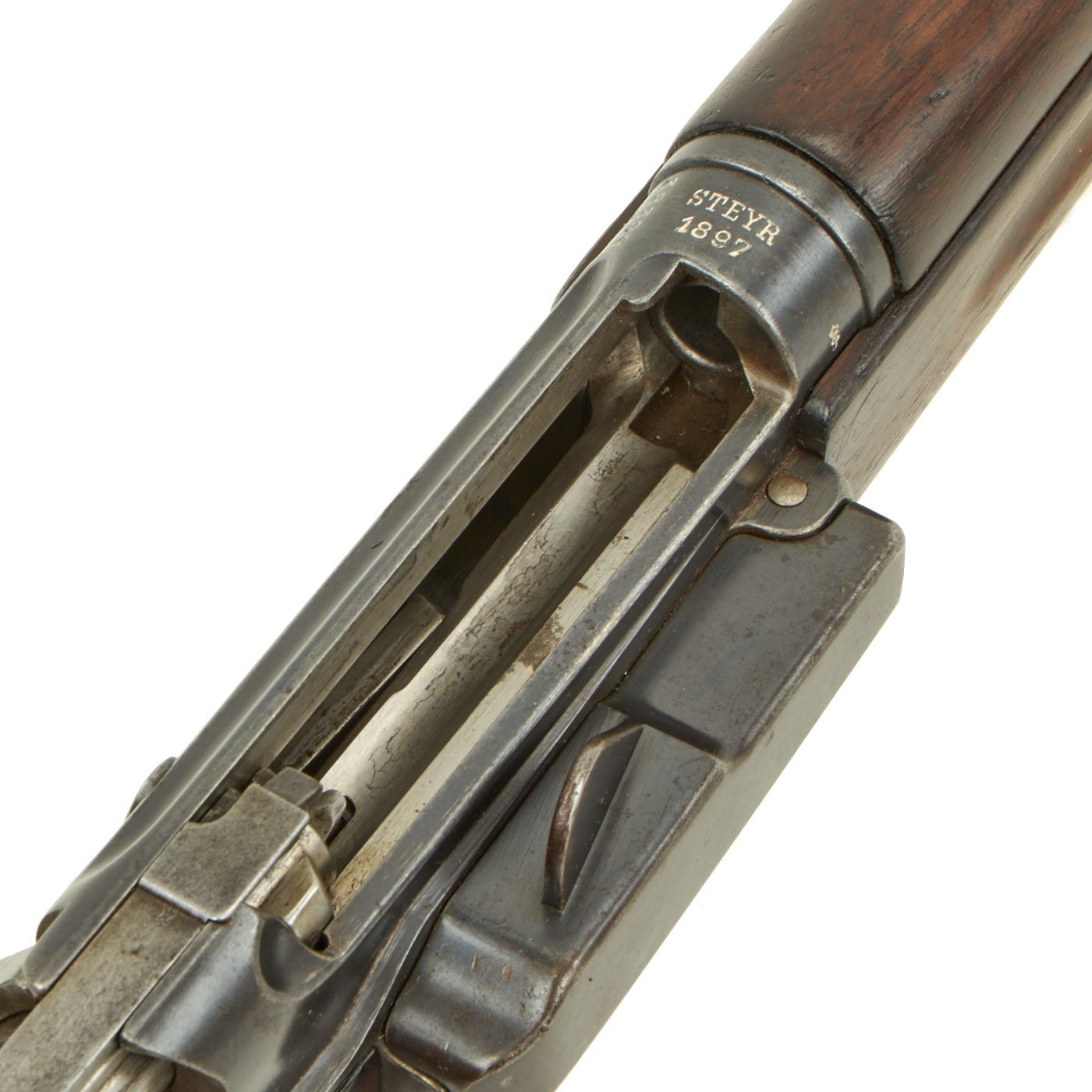This is a very nice example of the Norwegian M/1894 Krag–Jørgensen Infantry Rifle, the most common variant produced. This is one of the 33,500 additional examples made in Austria by Steyr, as indicated by the marking over the chamber: