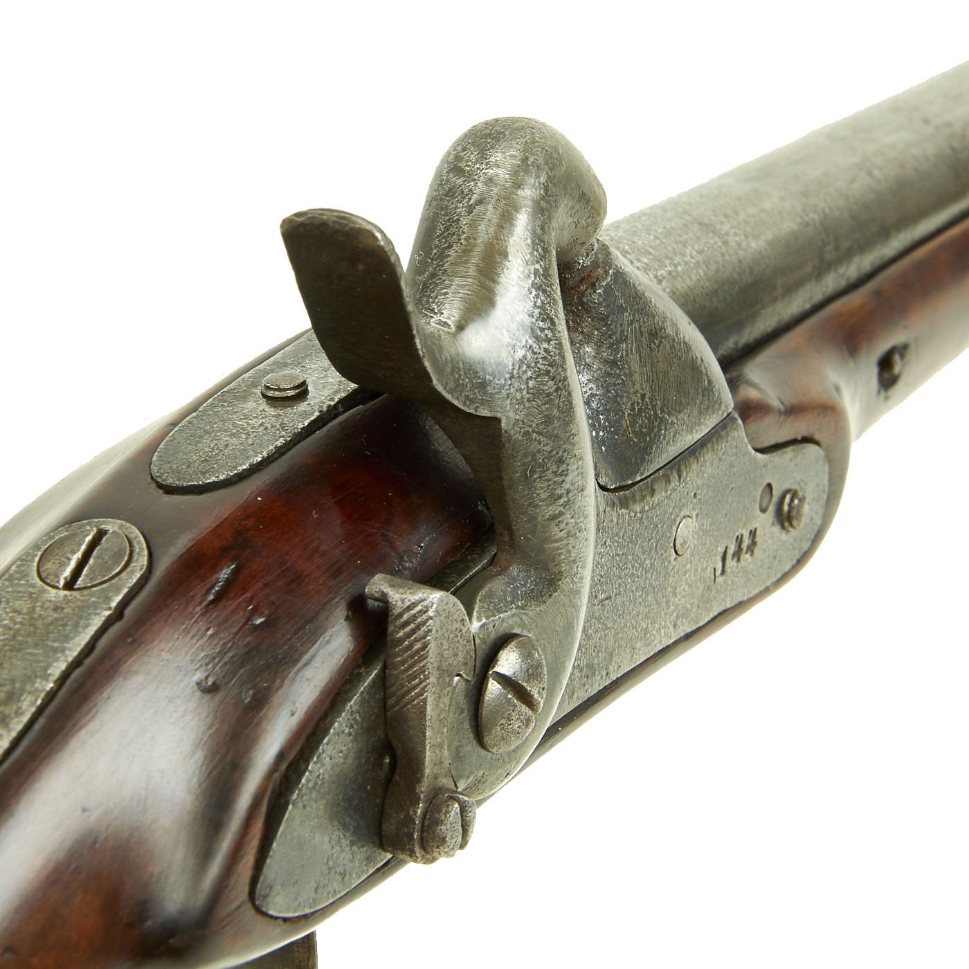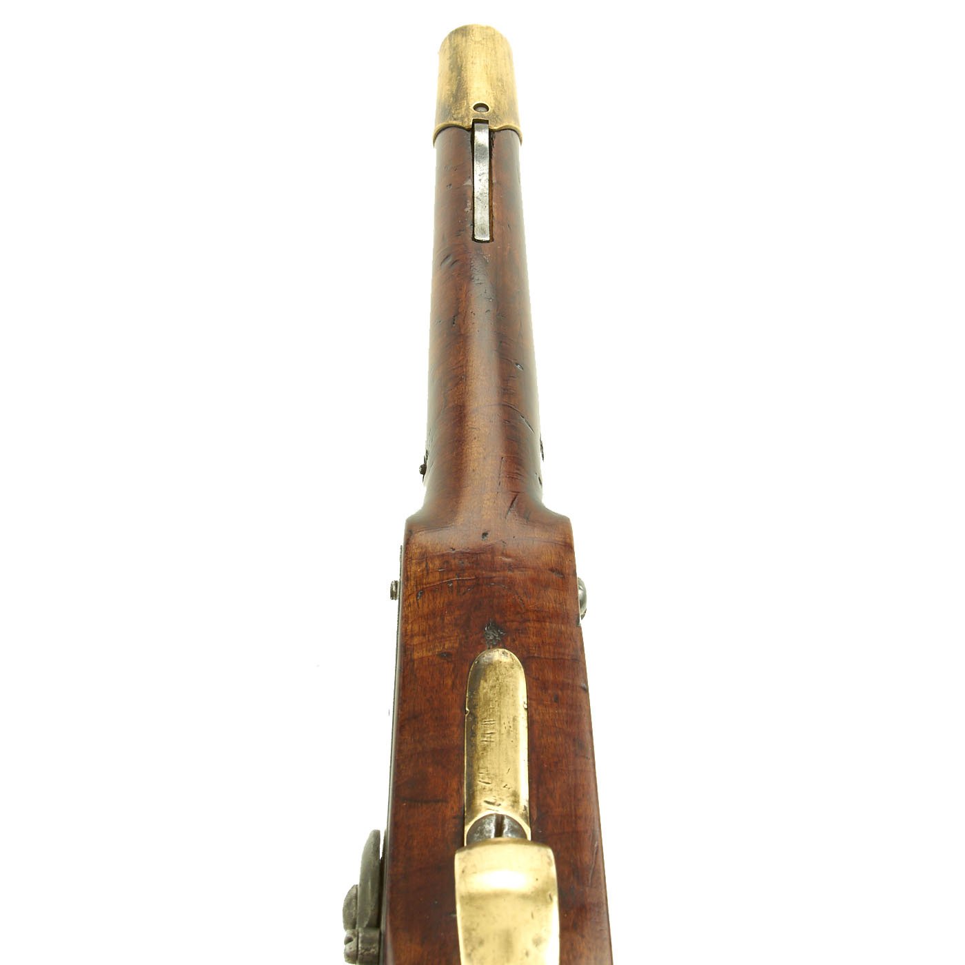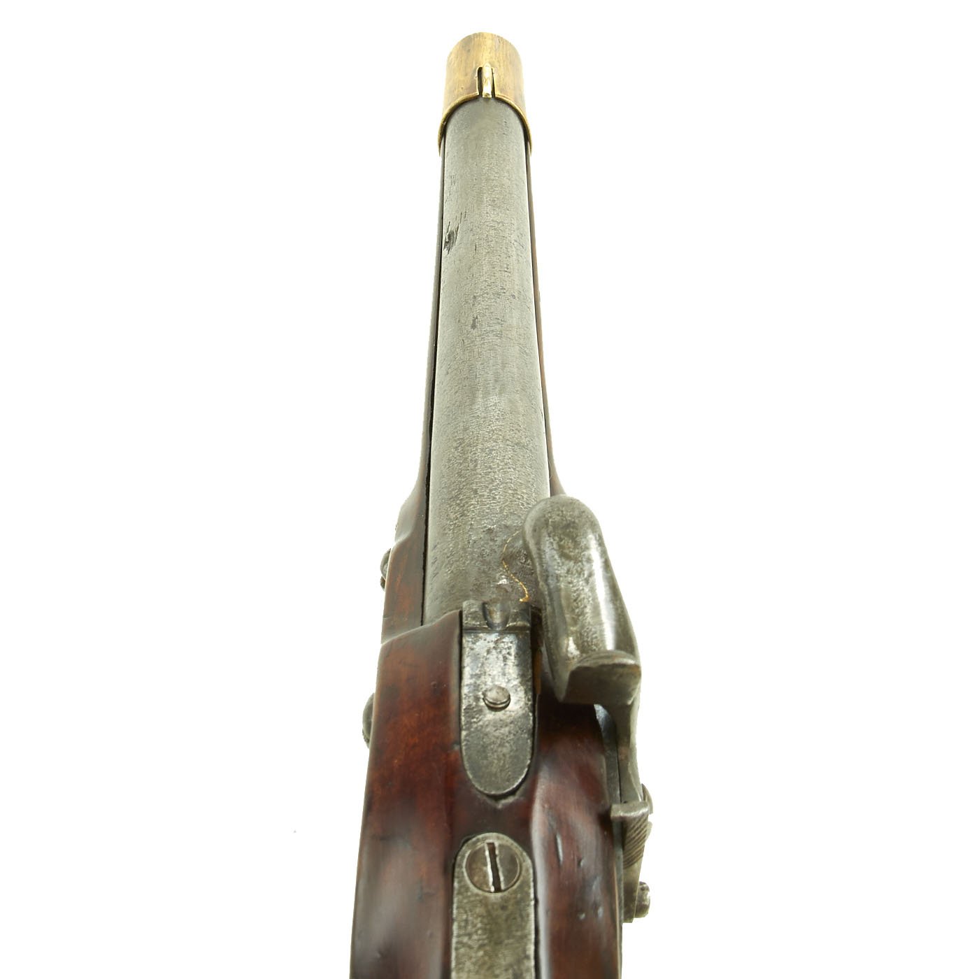 Original Item: Only One Available. These are very uncommon pistols on the market, and we have only ever seen a few. This is a very nice Norwegian Model of 1831/1846 Percussion Converted Cavalry Pistol fitted with a 9 3/4" 0.67" smoothbore barrel with an overall measurement of 16 1/2". Only 1280 pairs of these pistols were made, each set consisting of one rifled “studser" pistol and one smoothbore “flankors” pistol, plus a detachable shoulder stock.