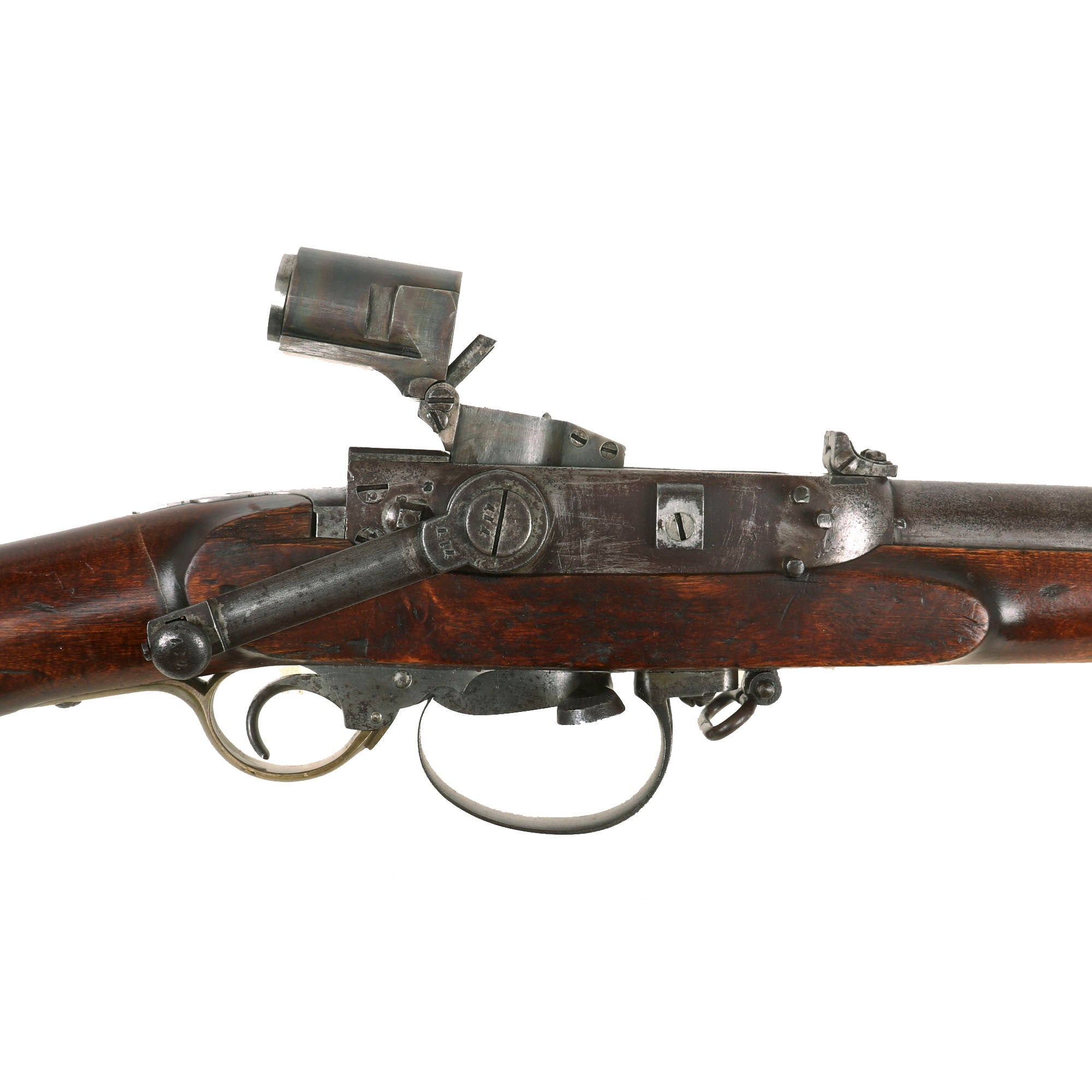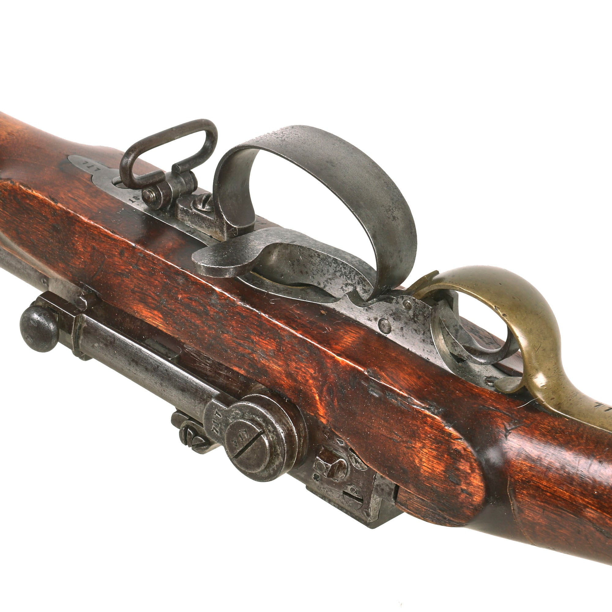 A lovely example of a very hard to find short rifle, the first that we have ever had in this configuration. While definitely a bit "clunky", for a system developed in 1842 it was well ahead of its time, and then was kept in service through modification. Ready to research and display!