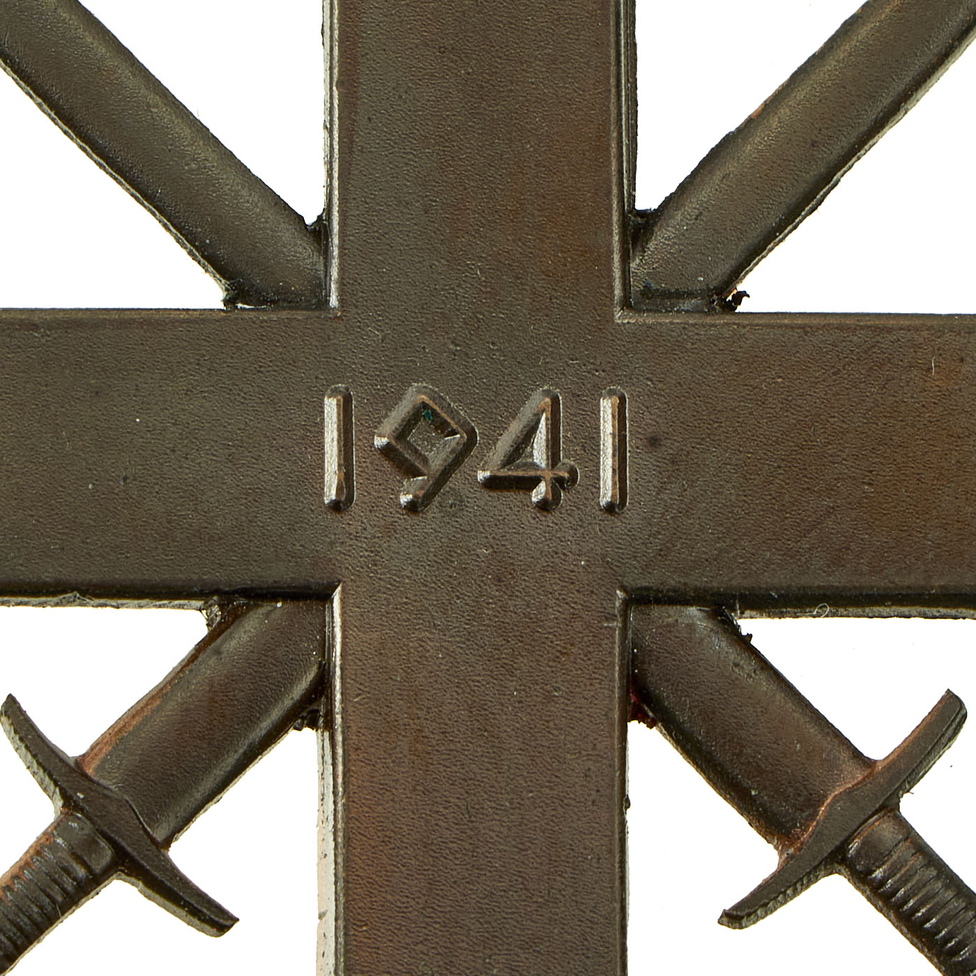 In 1944, a very few examples had the ‘Sun Eagle’ symbol affixed to the face, covering the date ‘1941’ in ‘Nordic’ script and were awarded to members of the Nasjonal Samling, such awards being referred to as ‘politisk utgave’ (political awards). After Allied victory in May 1945, recipients of the award naturally did everything possible to conceal the fact. As a consequence, it is extremely rare.