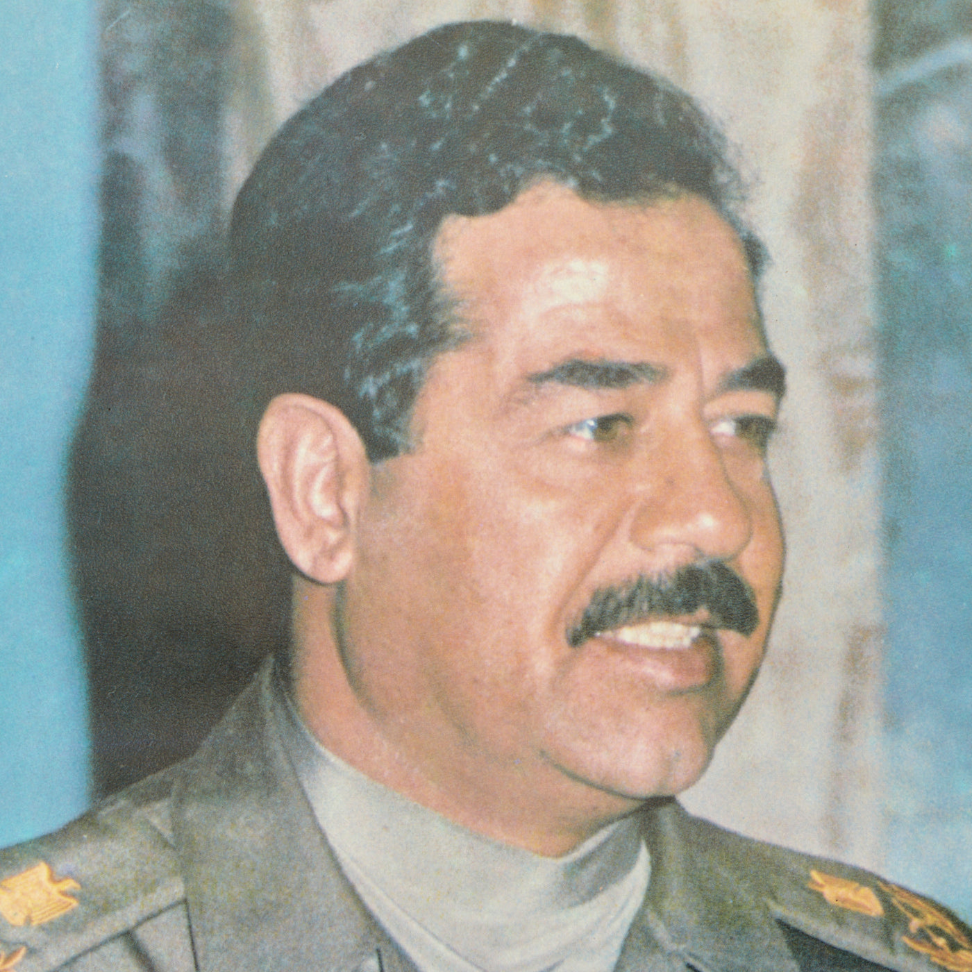 Original Item: Only one available. Iraqi Propaganda Poster featuring younger Saddam Hussein posed in a khaki military uniform. Certainly captured during Operation Desert Storm. Condition is excellent. Measures approximately 27” x 19.5”