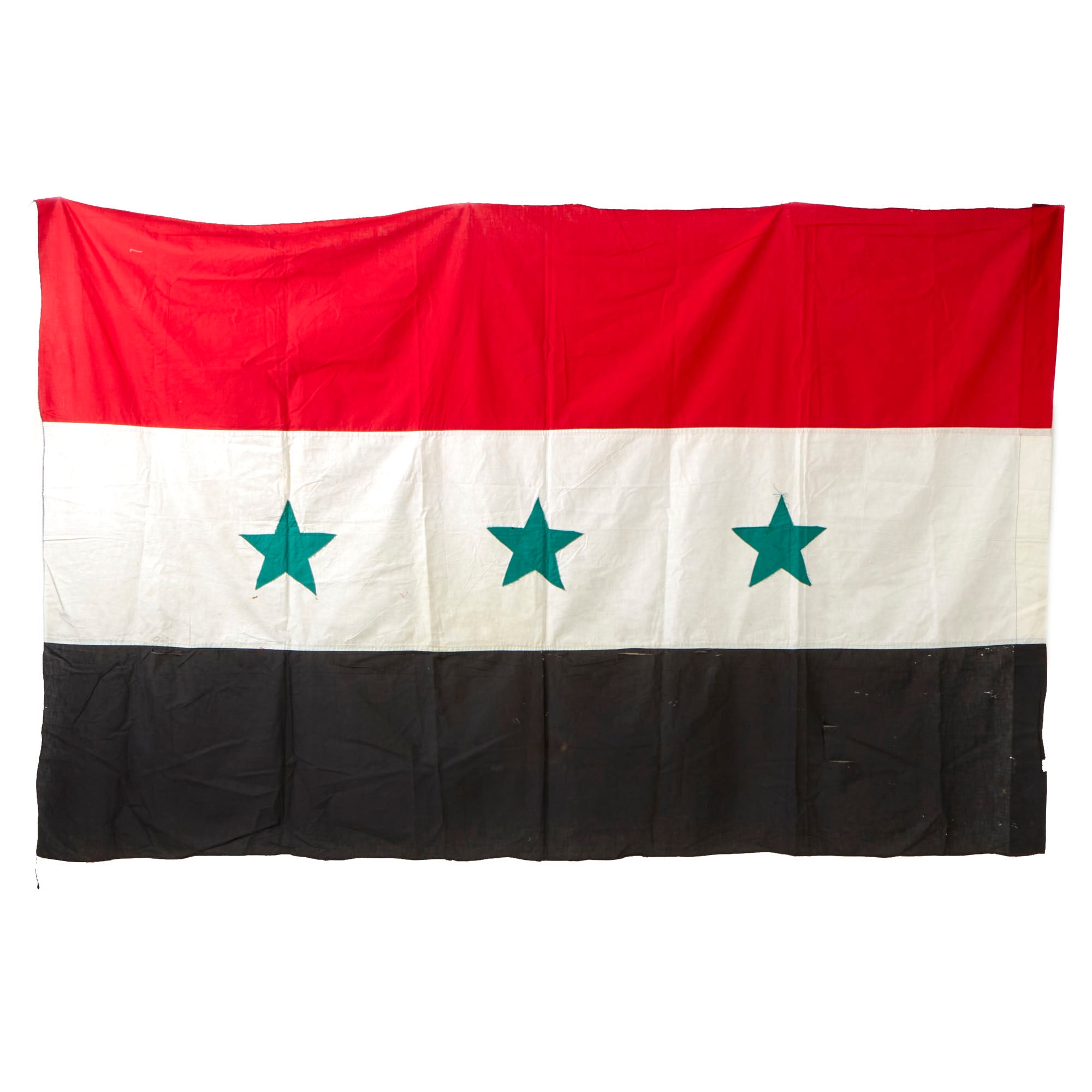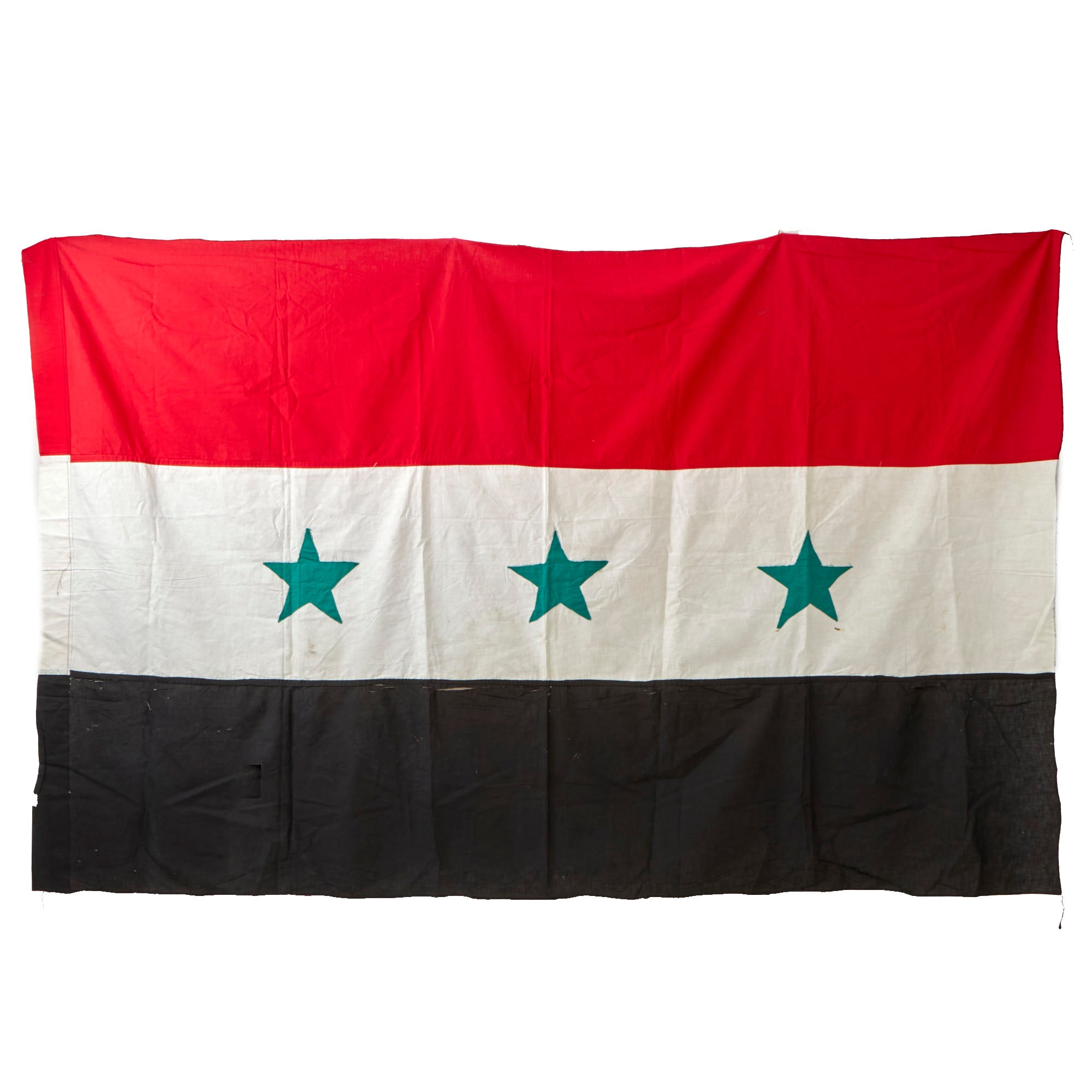Original Item: Only One Available. This is a wonderful example of the Flag of Iraq, dating to the late 1980s into early Gulf War era before the flag changed in 1991. After Qassim was overthrown by the Ba'ath Party in 1963, the new Ba'athist government adopted a modified version of the Arab Liberation flag as the new flag of Iraq on 31 July 1963 (Law 28 of 1963).