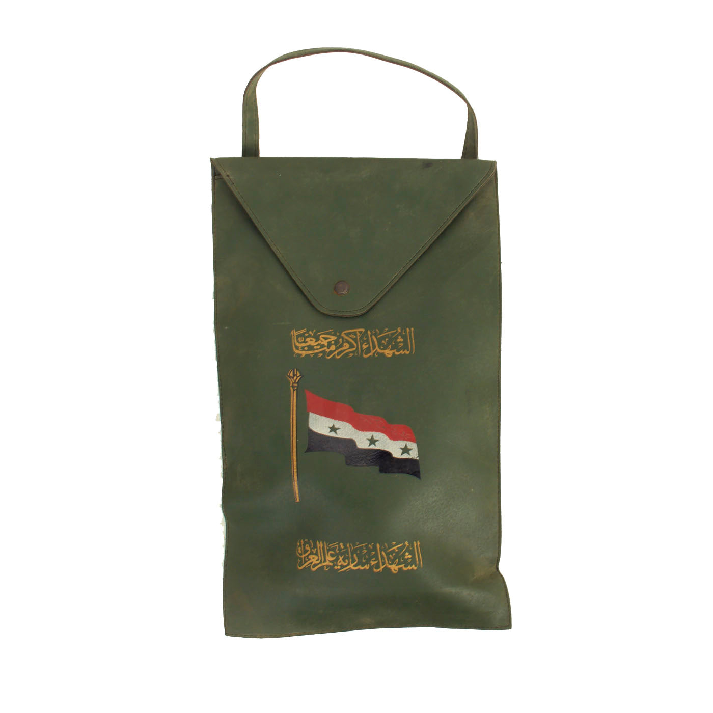The flag and case are both in great condition with minor wear and staining. The flag appears to have been a pre 1991 example and had the takbīr added after the flag was changed. The case is in great condition with only storage wear present with sand and dirt staining the front.