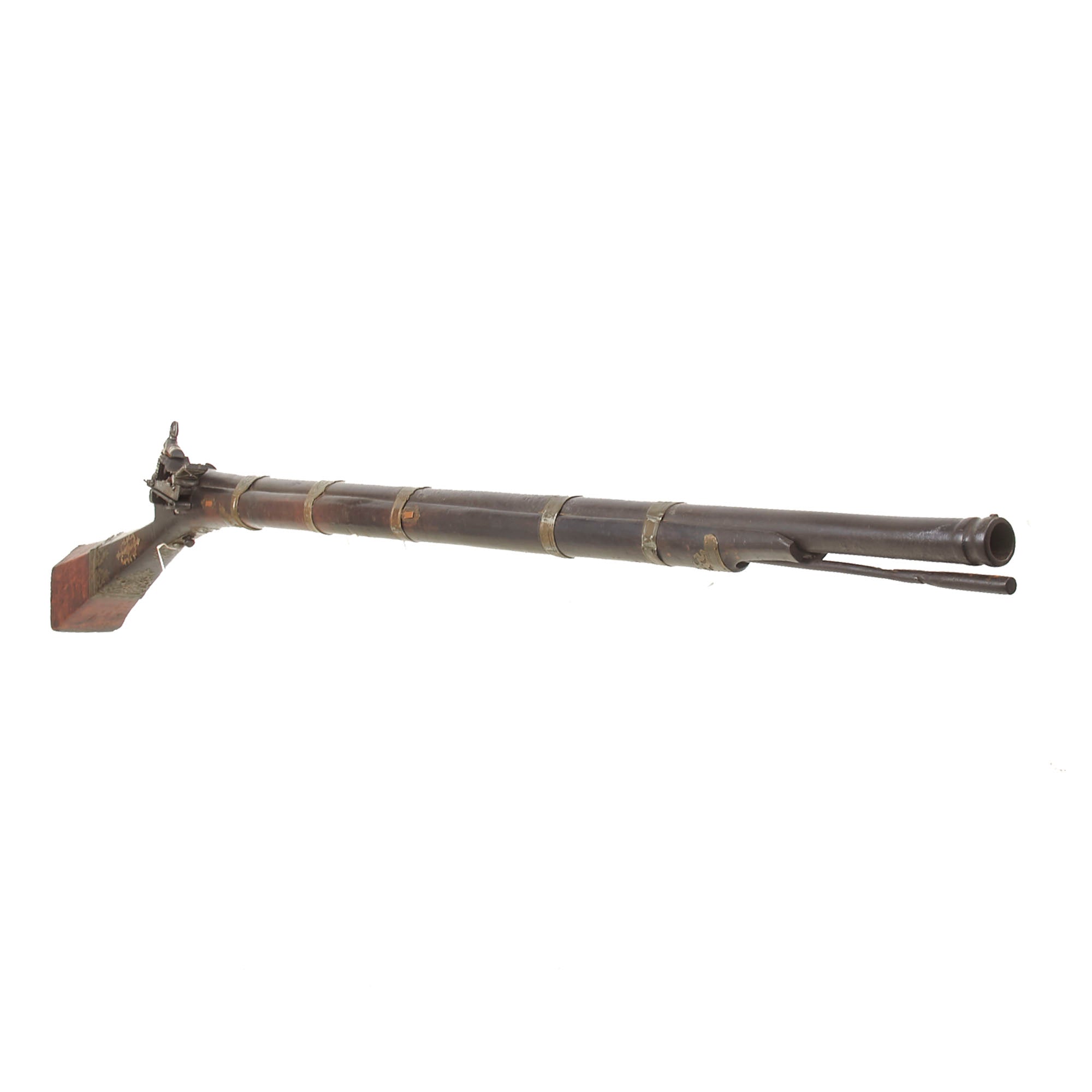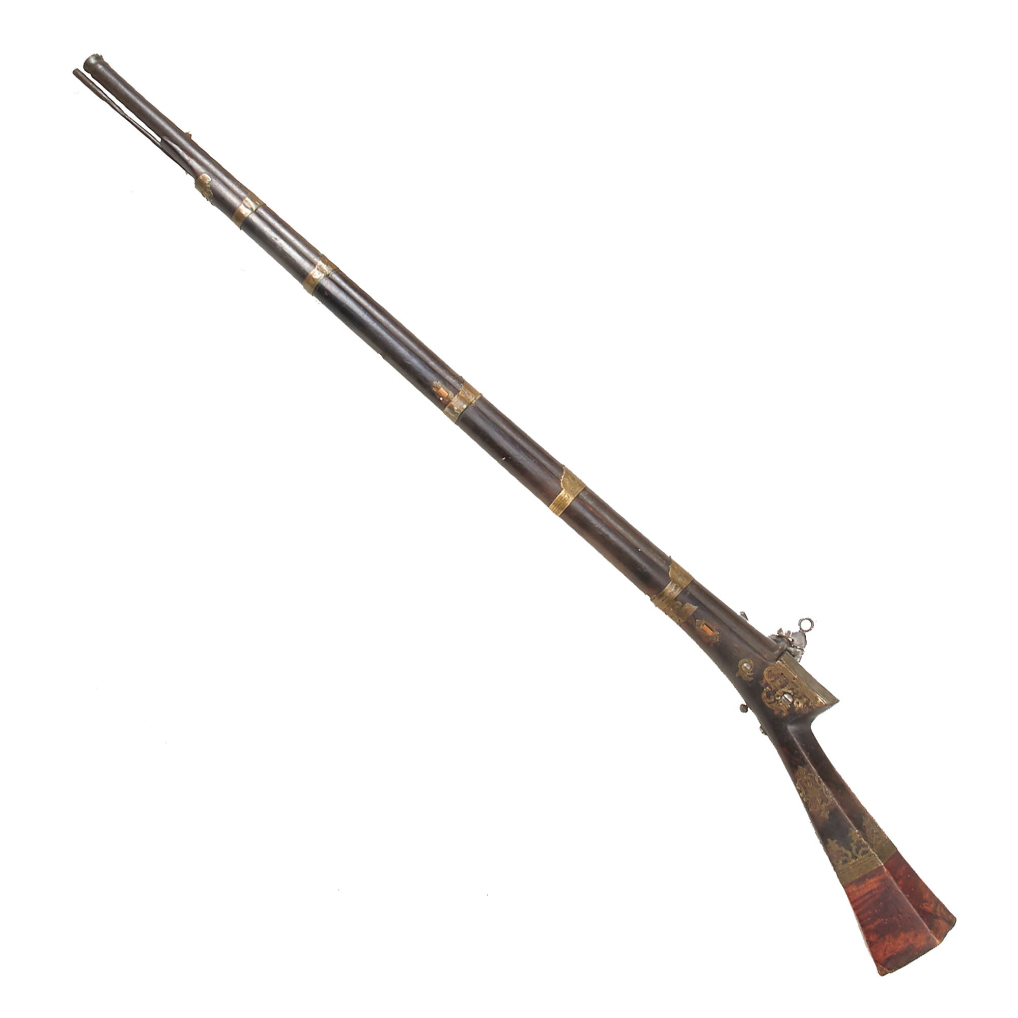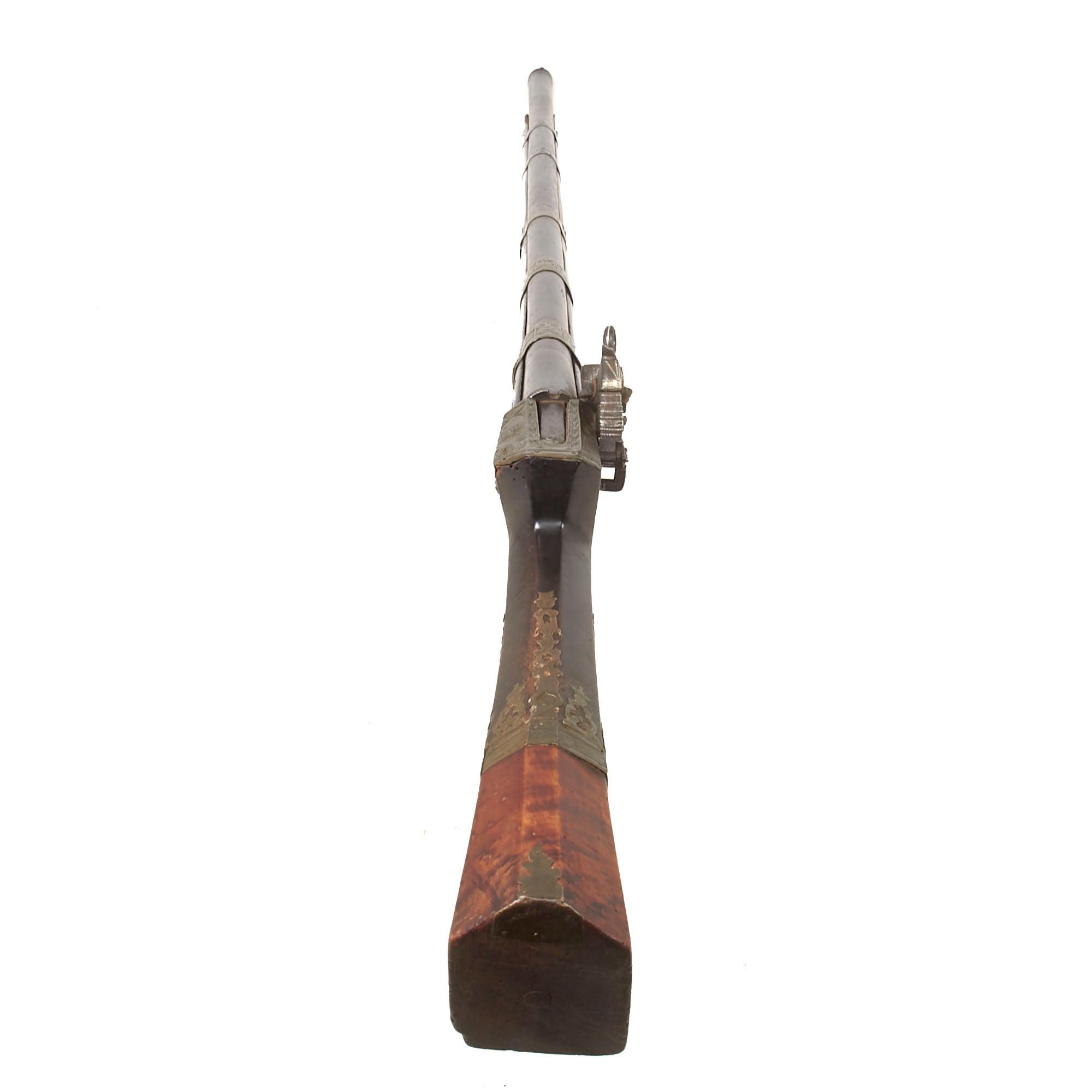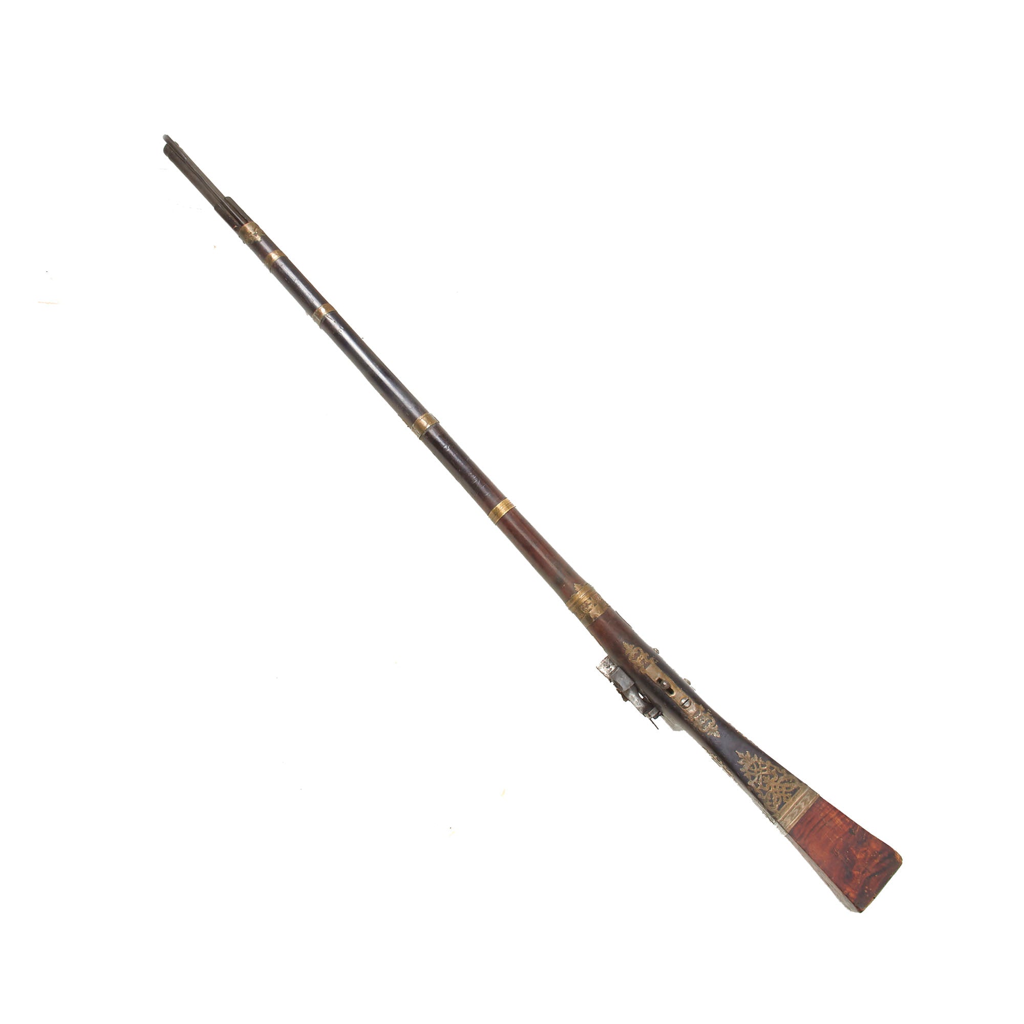 This is a nice Ottoman "SHISHANA" gun dating from the 17th and early 18th Centuries, with a beautiful burl wood butt stock.. Overall length of 54 5/8" and ready to display!