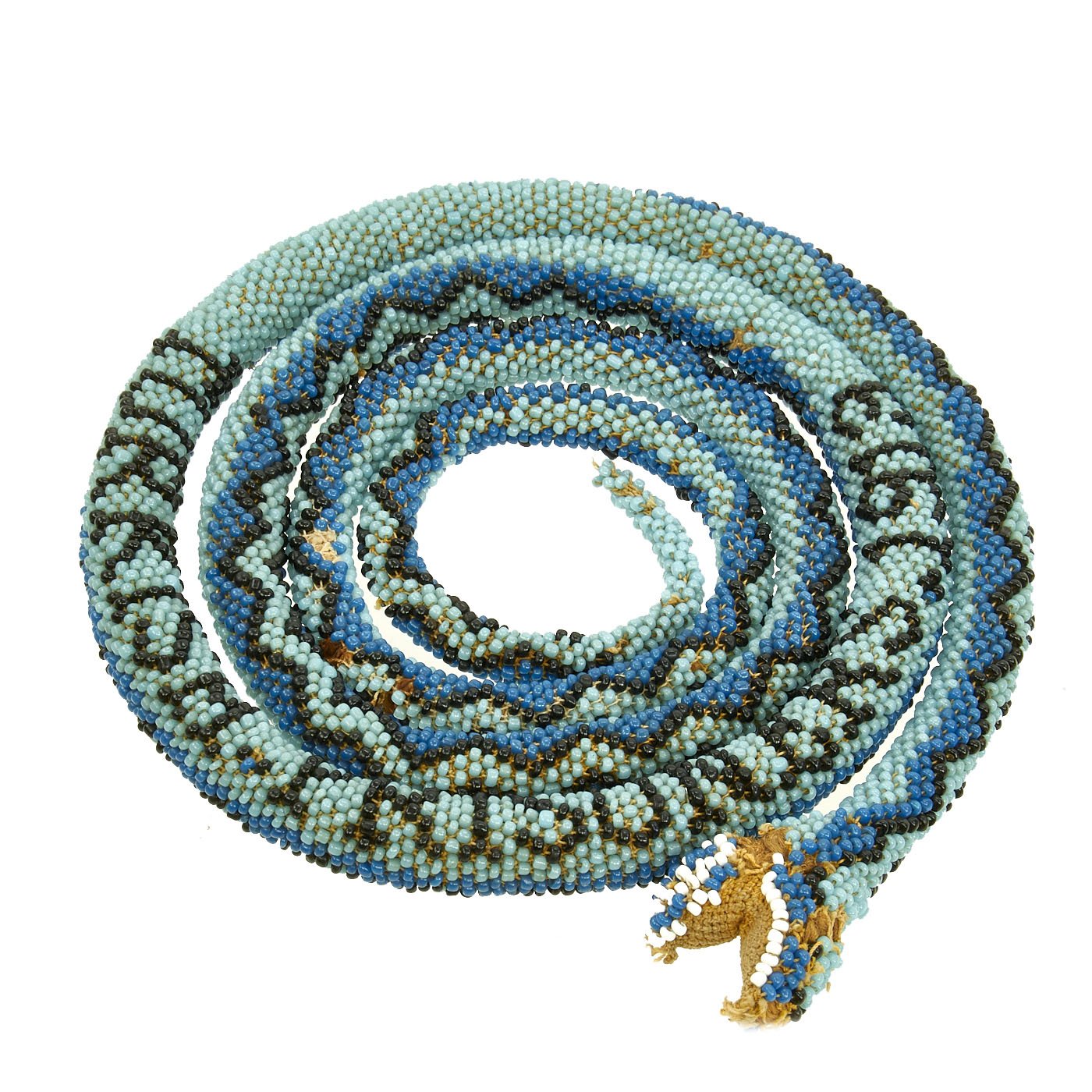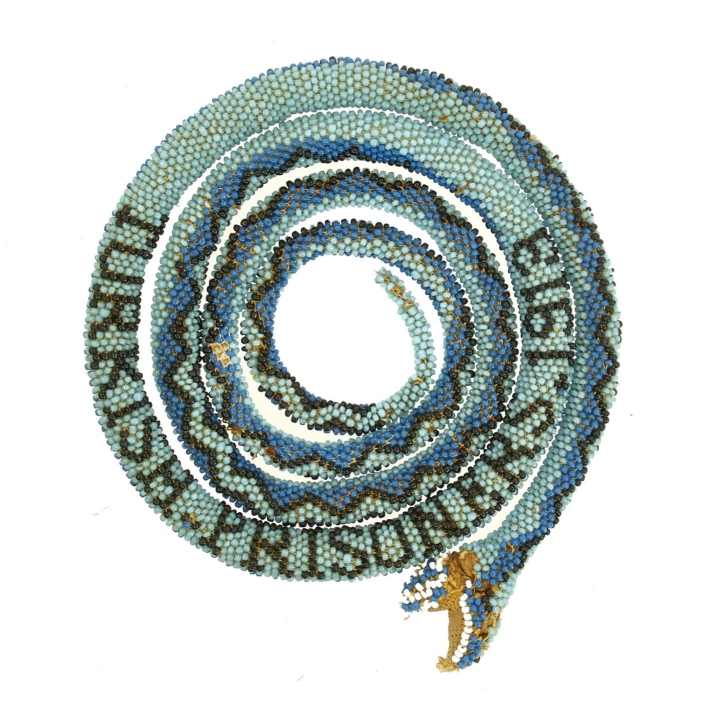 Original Item: Only One Available. This souvenir beaded “snake,” brought back after the First World War by a USGI and originates from the Ottoman Empire. Drawing on the rich tradition of textile crafts in the Ottoman Empire, Turkish soldiers incarcerated in British prison camps in the Middle East during and immediately after World War I made a variety of bead work items to relieve the boredom of their prolonged imprisonment and to barter or sell for food and other amenities.