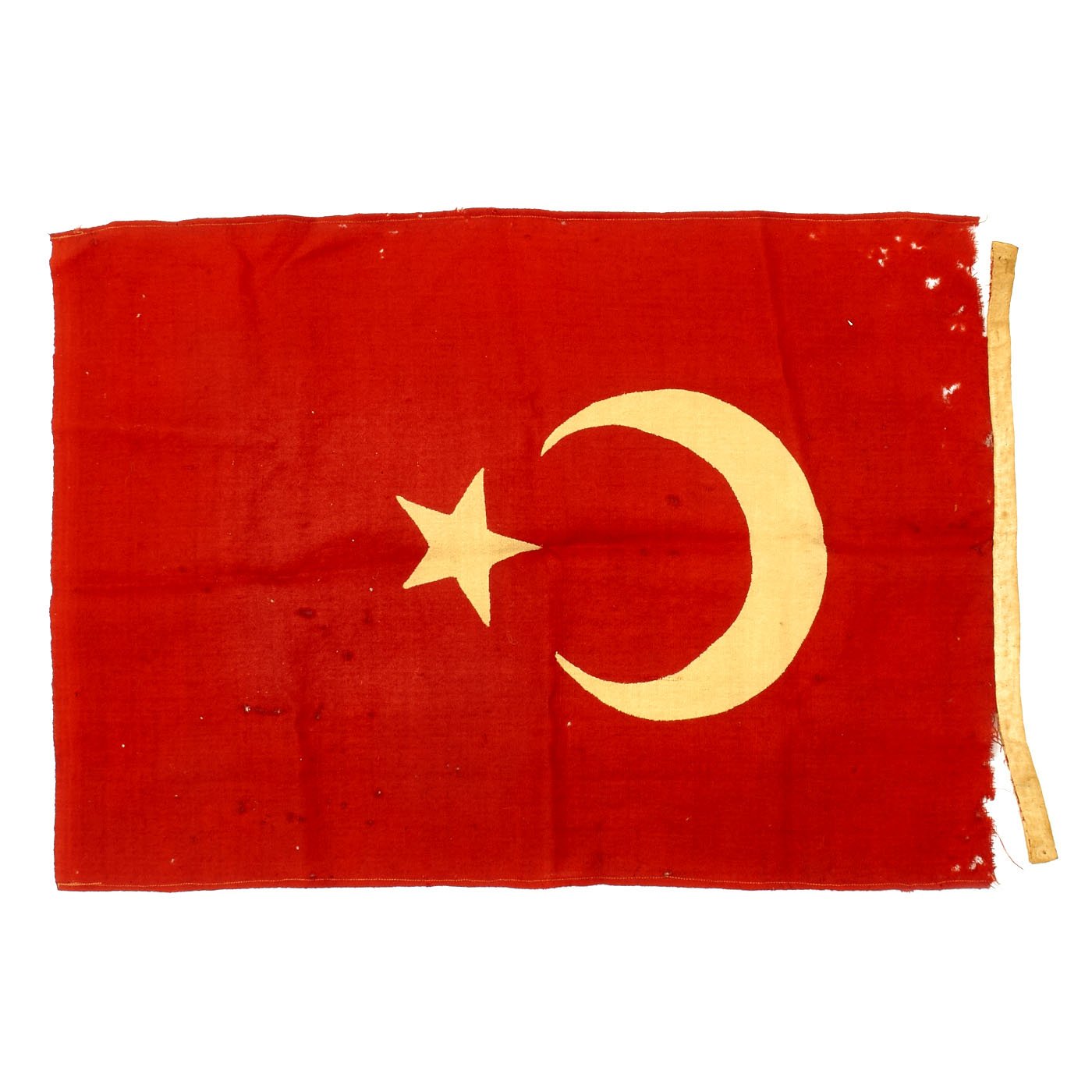 Original Item: Only One Available. This is a very nice original WWI Ottoman Empire / Turkish flag. The design of the flag is identical to the modern Turkish flag, however the wool construction and style definitely indicate that it is from the WWI Period. It is a very nice displayable size of 19" x 29".
