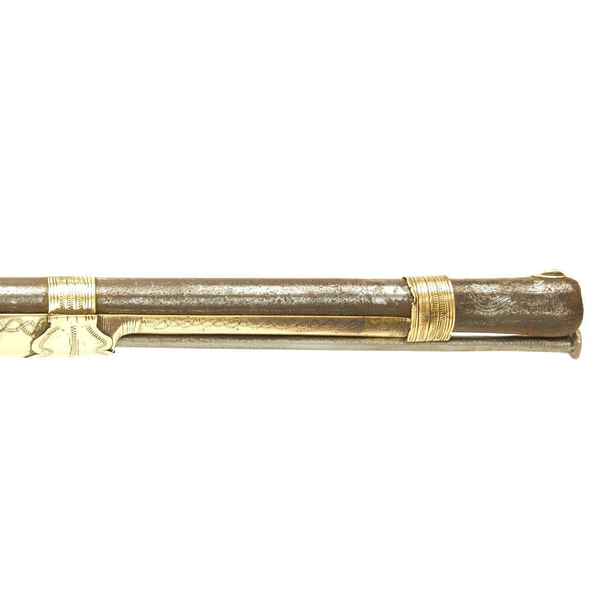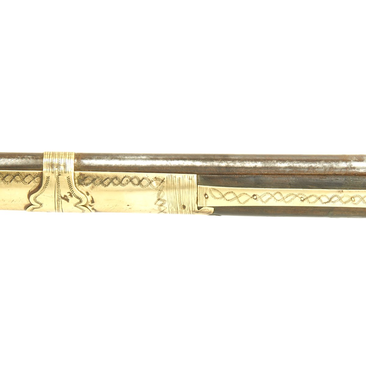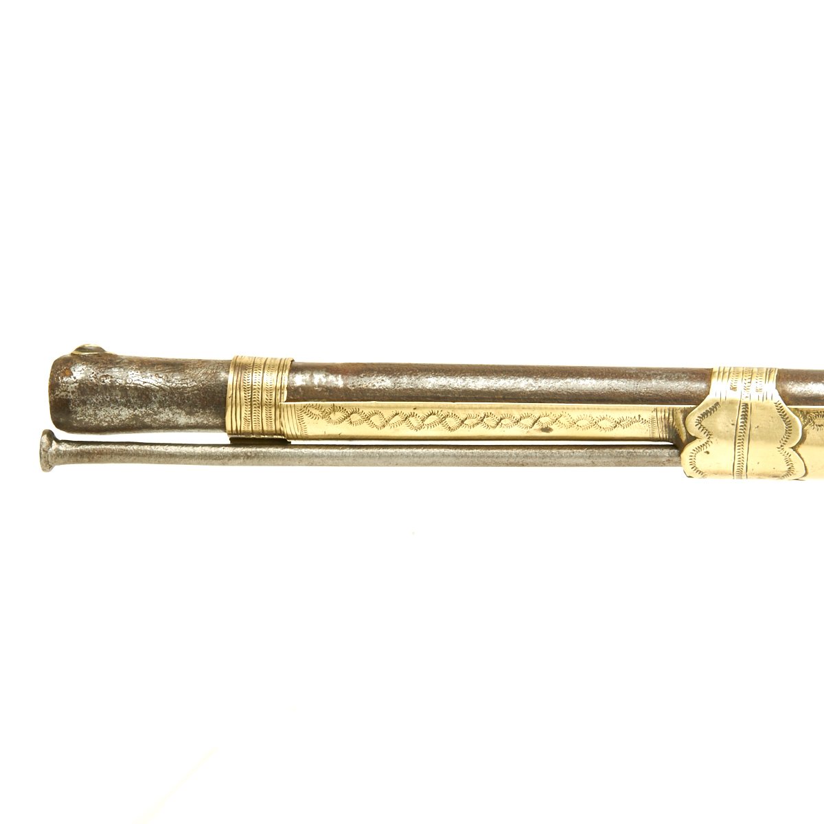 Original Item: One-of-a-kind. The jezail (sometimes Jezzail from the Arabic) is a simple, cost-efficient and typically handmade muzzle-loading long arm commonly used in the Middle East region in the past. This is most interesting in the the Flintlock Mechanism is British Made for a Portuguese contract around 1805, probably for a horse pistol delivered during the Peninsula Campaign under WELLINGTON during the Napoleonic Wars which ended in 1815.
