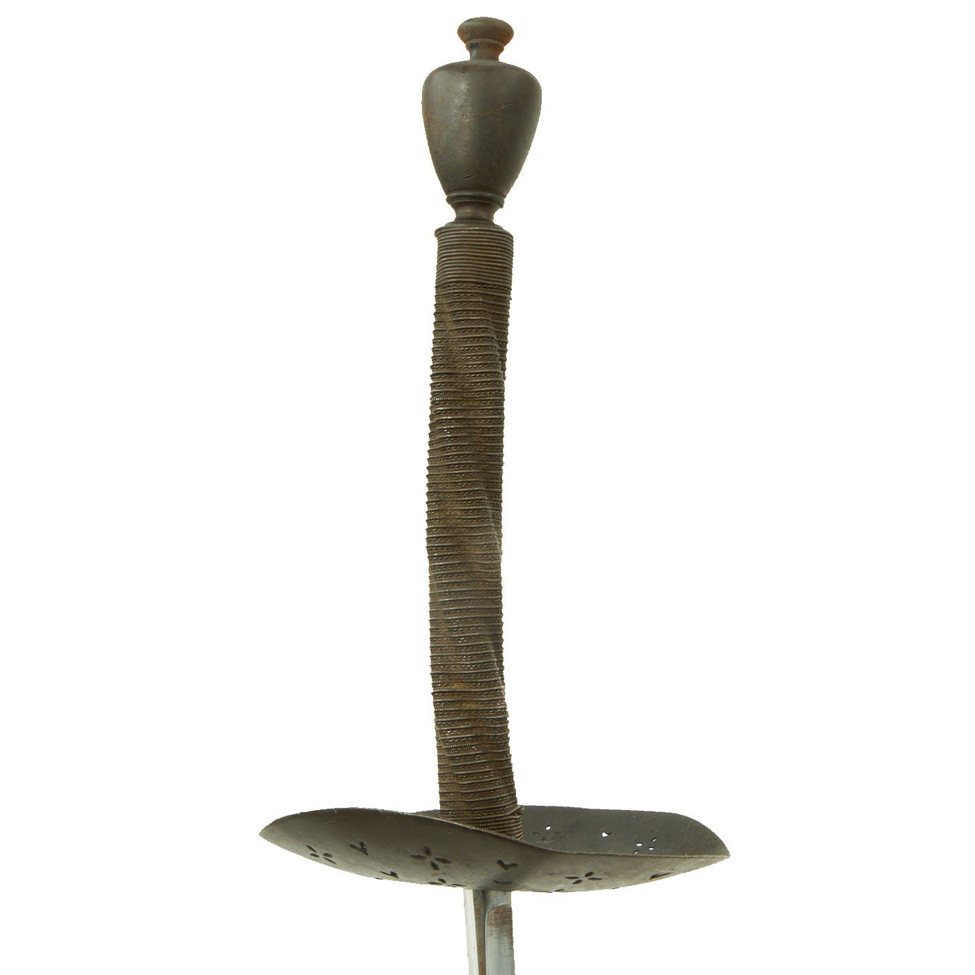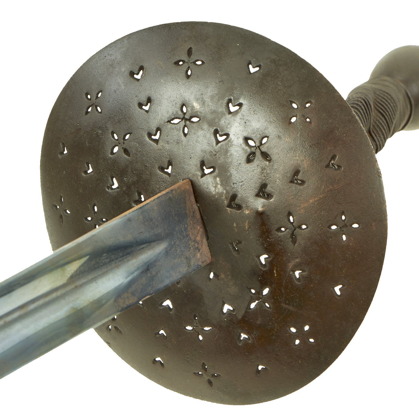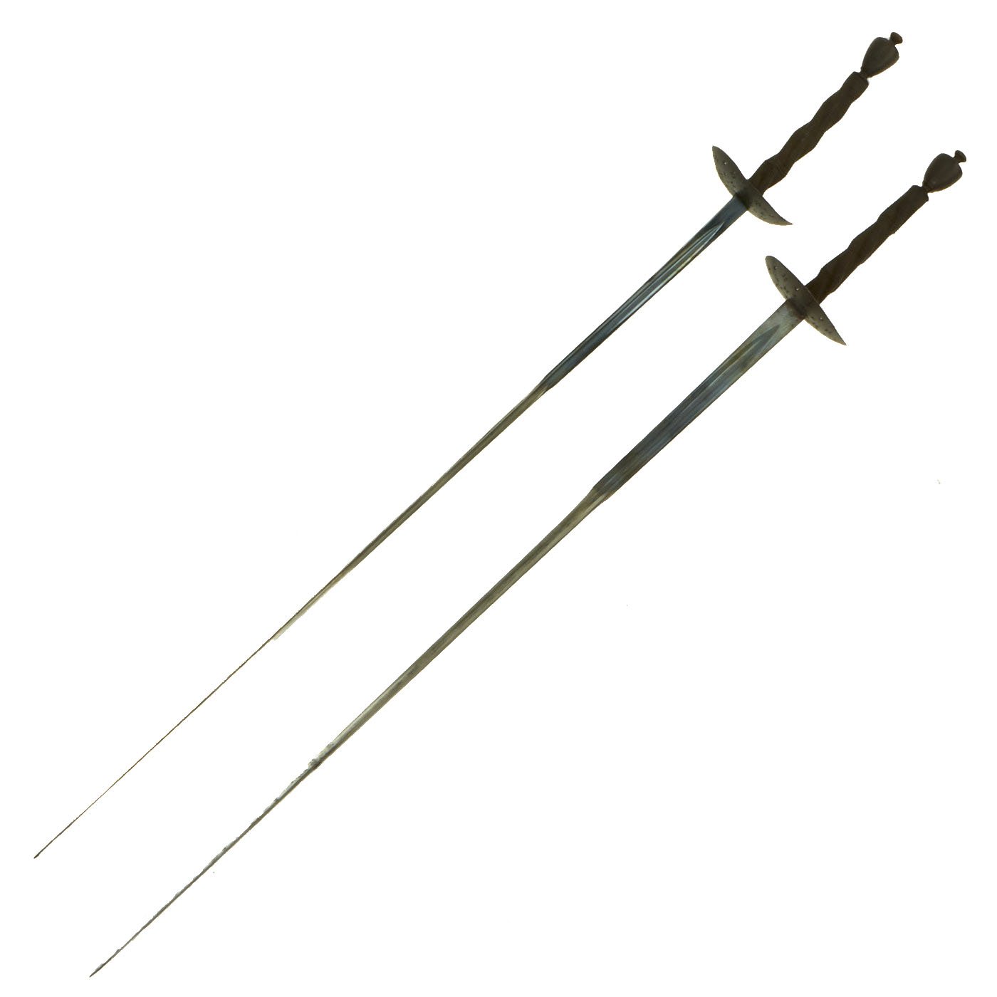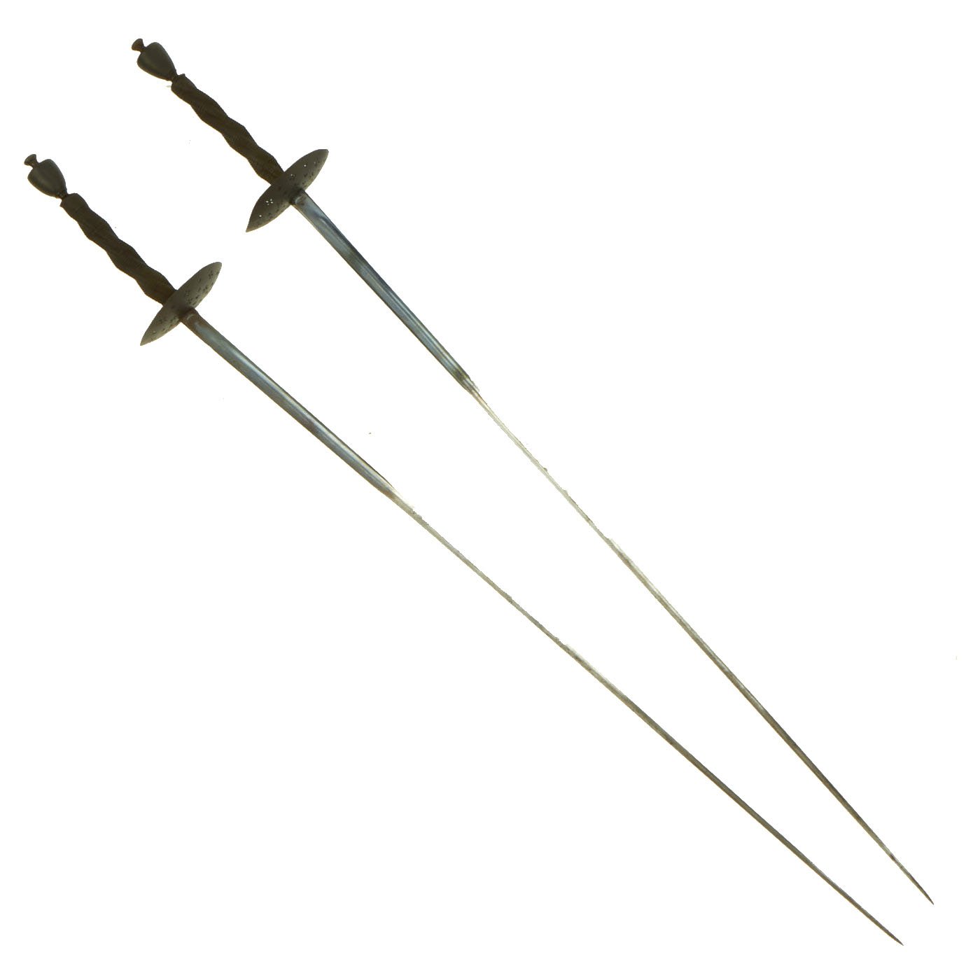 Original Items: One of a Kind Pair. The épée is the largest and heaviest of the three weapons used in the sport of fencing. The modern épée derives from the 19th-century épée de combat, a weapon which itself derives from the French small sword. As a thrusting weapon, it features a stiff blade, triangular in cross-section with a V-shaped Fuller. Fencing has been popular in France for centuries, and quality blades are hard to come by, and can be re-fit any number of times, based on the fashion of the time.