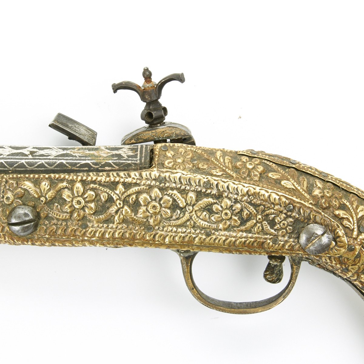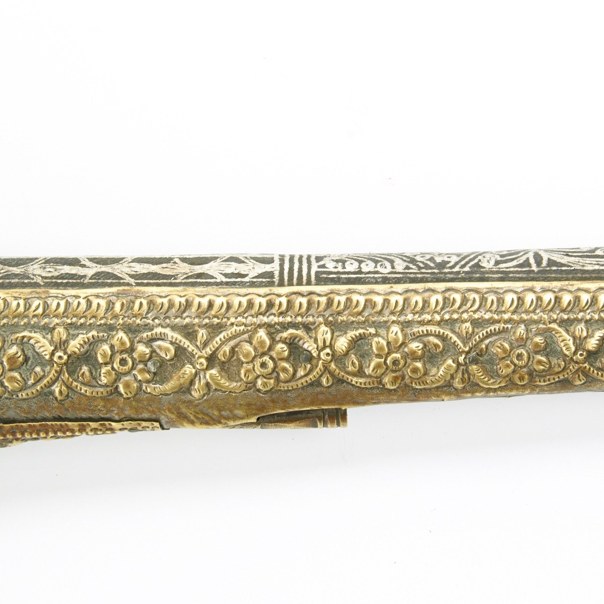 The best feature of this brace is the heavily decorated North African Miguelet lock on the unaltered pistol which even has a "dog catch" safety that is most unusual and would never be included on Bazaar grade souvenir.