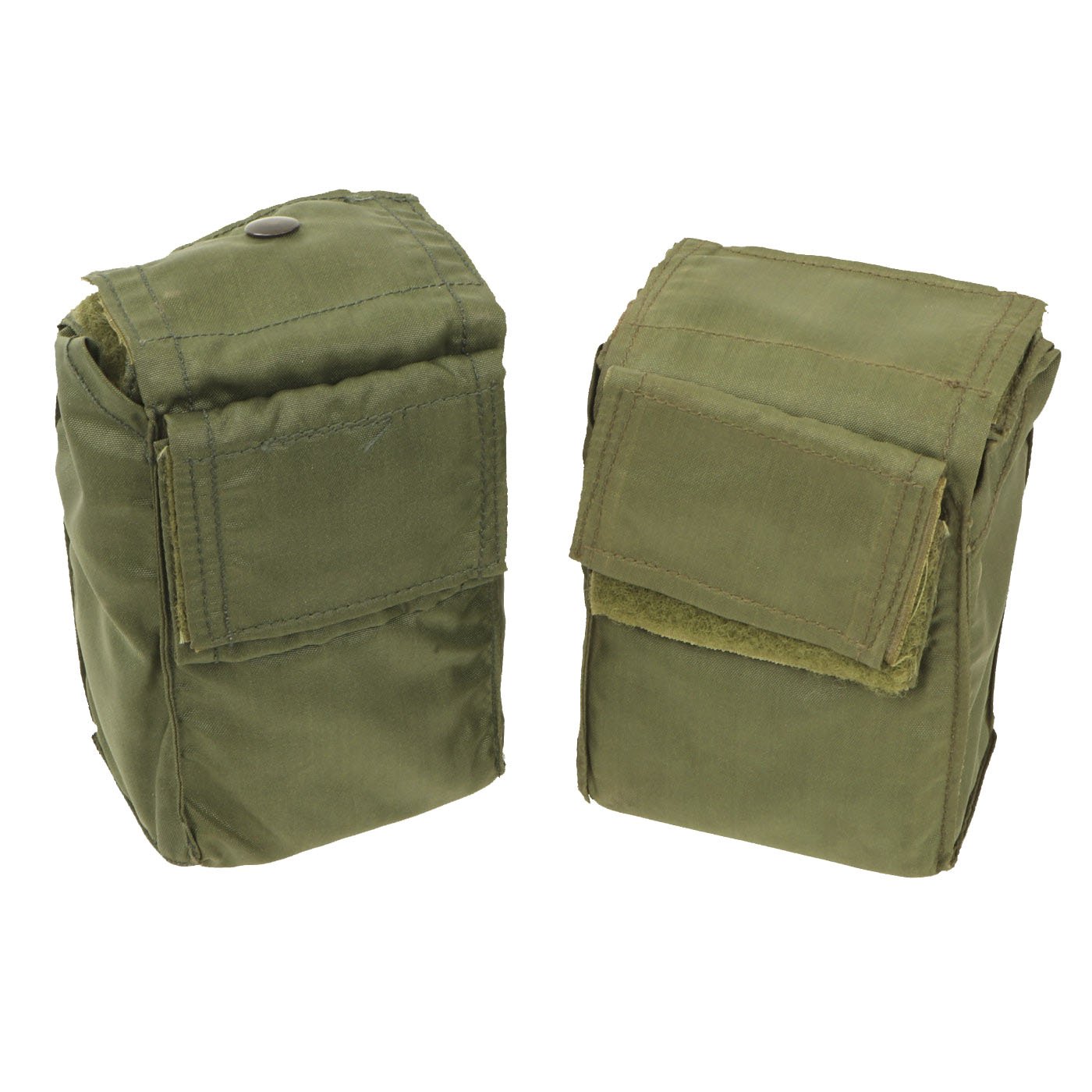One of the kits has a plastic container that gives directions for all of the contents, while the other kit is earlier issue and has the instructions inside on the contents. Both are contained in nylon pouches with strong velcro belt loops and top flaps.