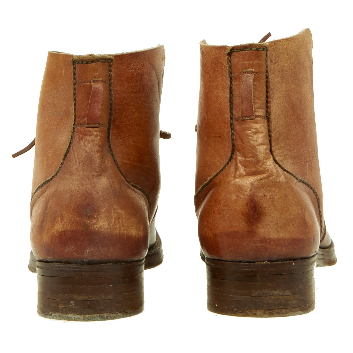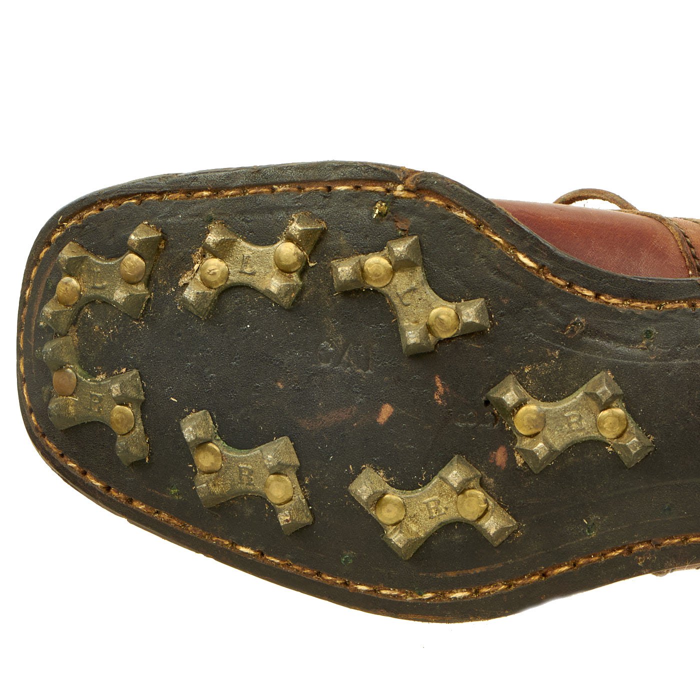 Overall condition is excellent, with only wear from storage and age. This has caused some of the leather to darken, and the laces are now somewhat stiff due to drying out. Otherwise, they are as close to mint as we have ever seen.
