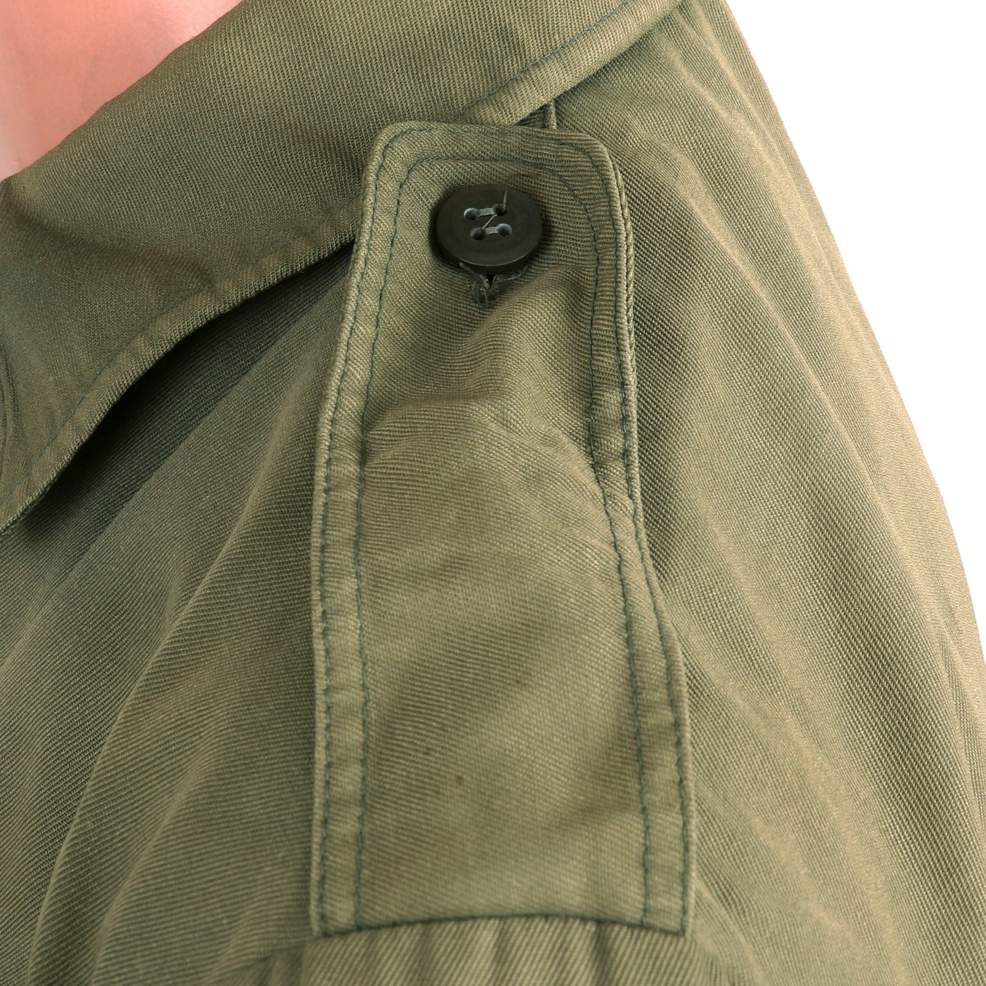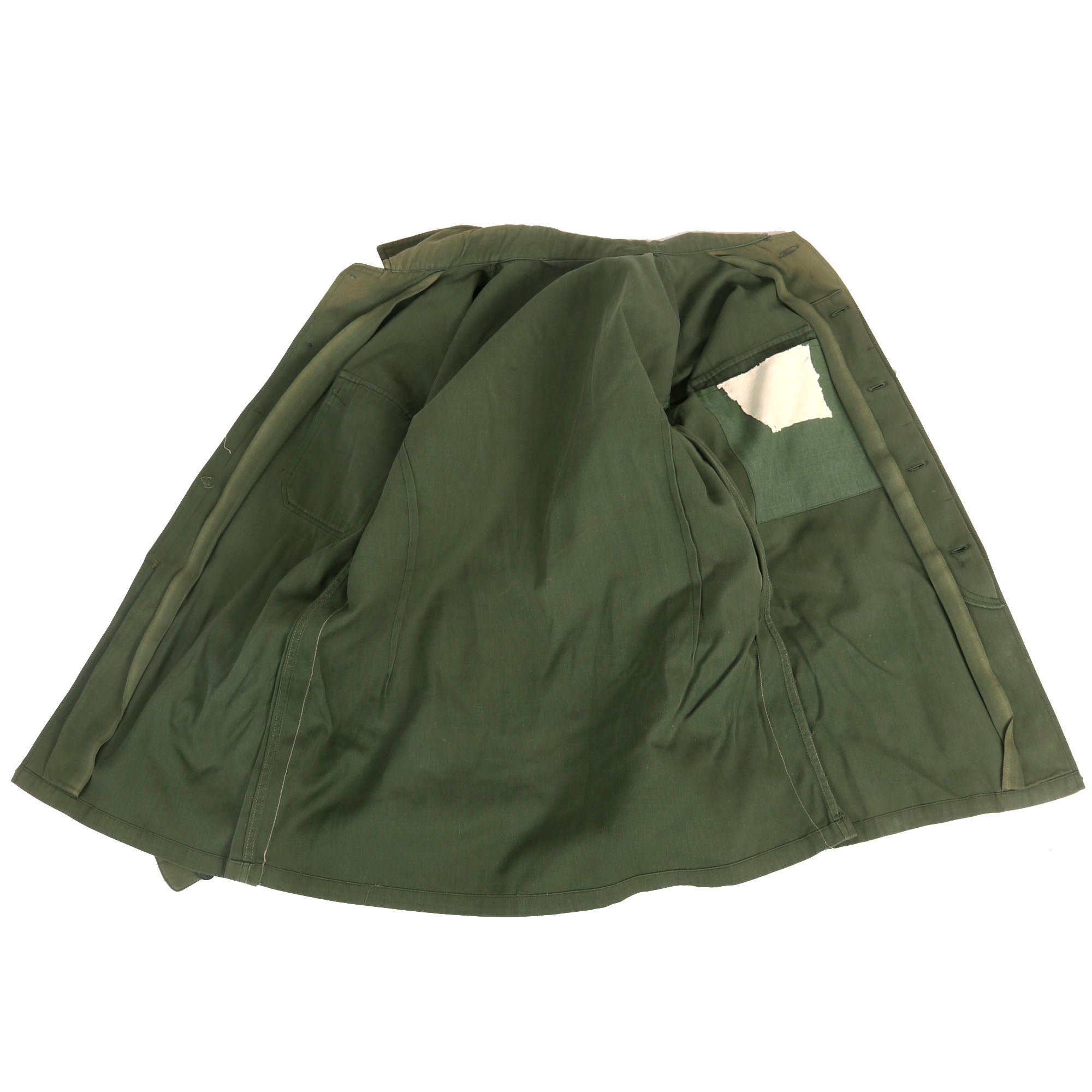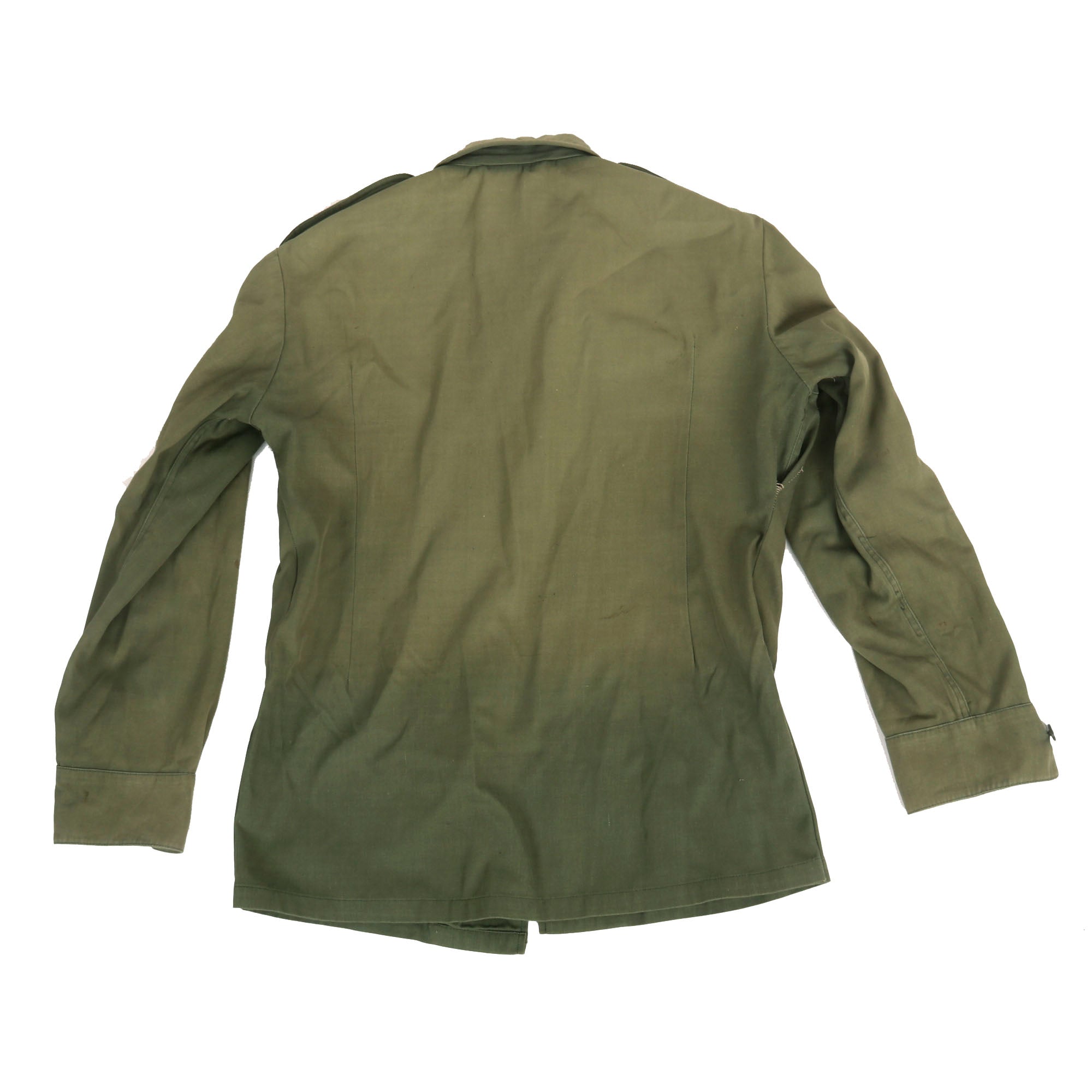 The uniform consists of a top and pair of trousers, both are green for the Ministry of Defense and do have the Republican Guard patch located on both shoulders. There are no shoulder boards or rank insignia of any kind. The top and bottom are in good but faded condition with the beret being borderline relic with heavy fading and moth nips.