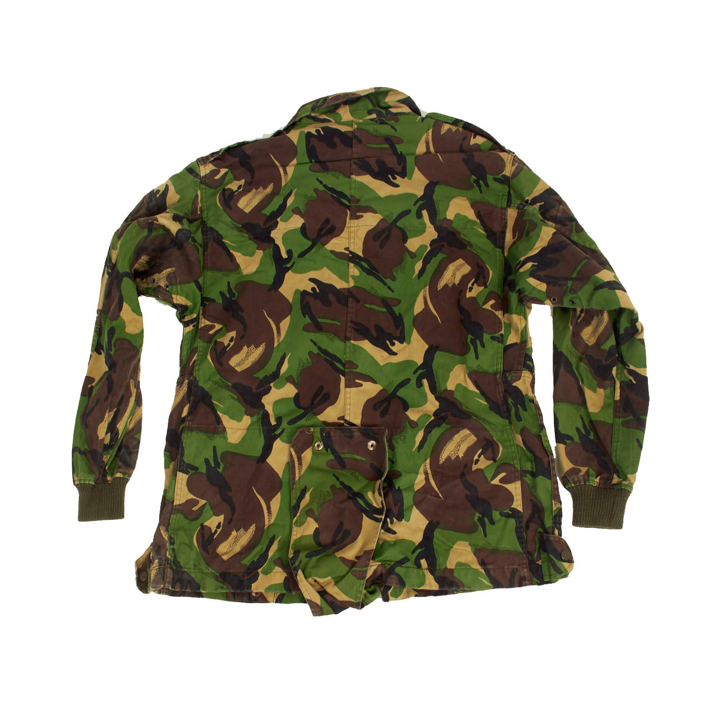 The pattern of this smock has not changed since the British military introduced the Dennison jump smock to the Iraqi Kingdom after WWII. Only airborne qualified soldiers were issued these expensive and highly specialized jump smocks. Camouflage smocks like this were issued only to the Special Forces, Airborne qualified Republican Guard and Iraqi Thunder Troops.