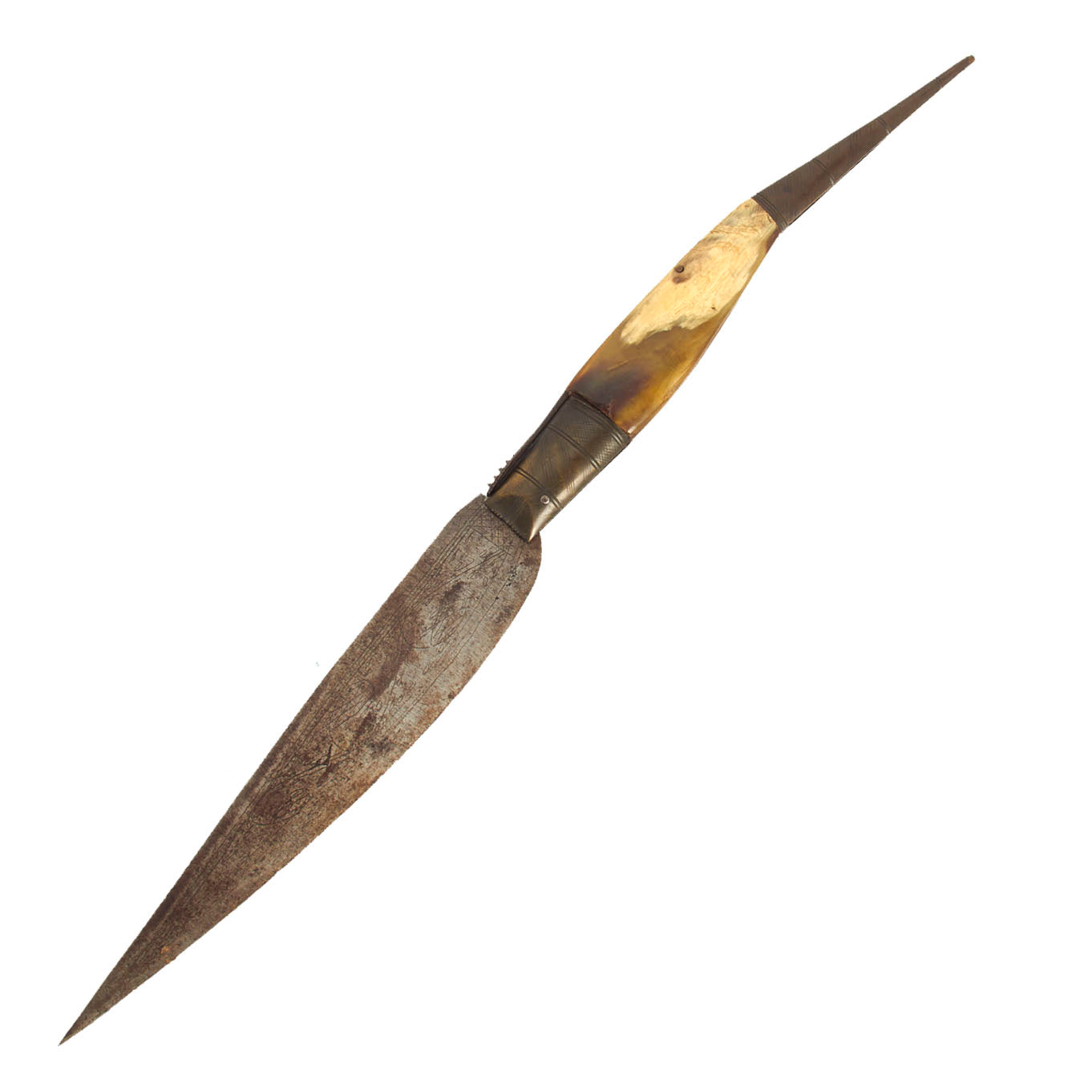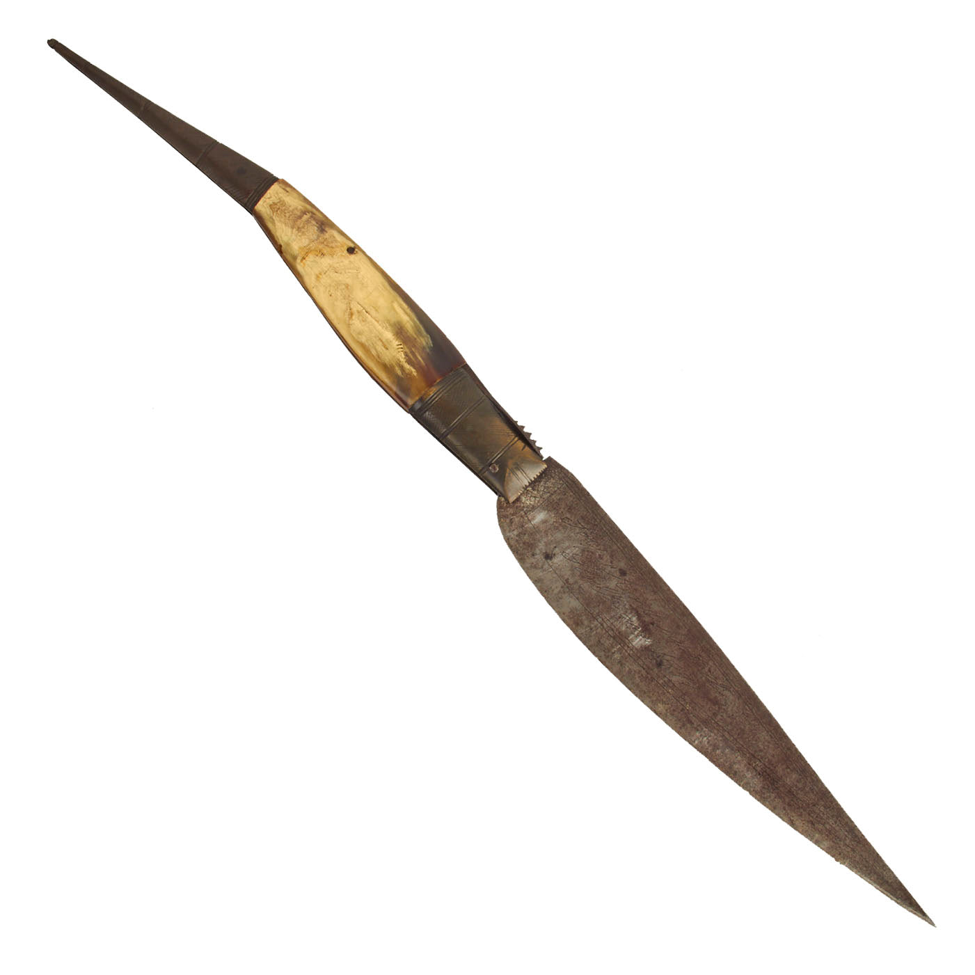 Although this knife is of Spanish origin, it was more than likely captured in the Philippines during the Philippine-American war. The style of fighting with the Navaja carried over into Spanish speaking countries such as Argentina, Puerto Rico and the Philippines as part of el legado andalusí (the Andalusian legacy, or tradition).