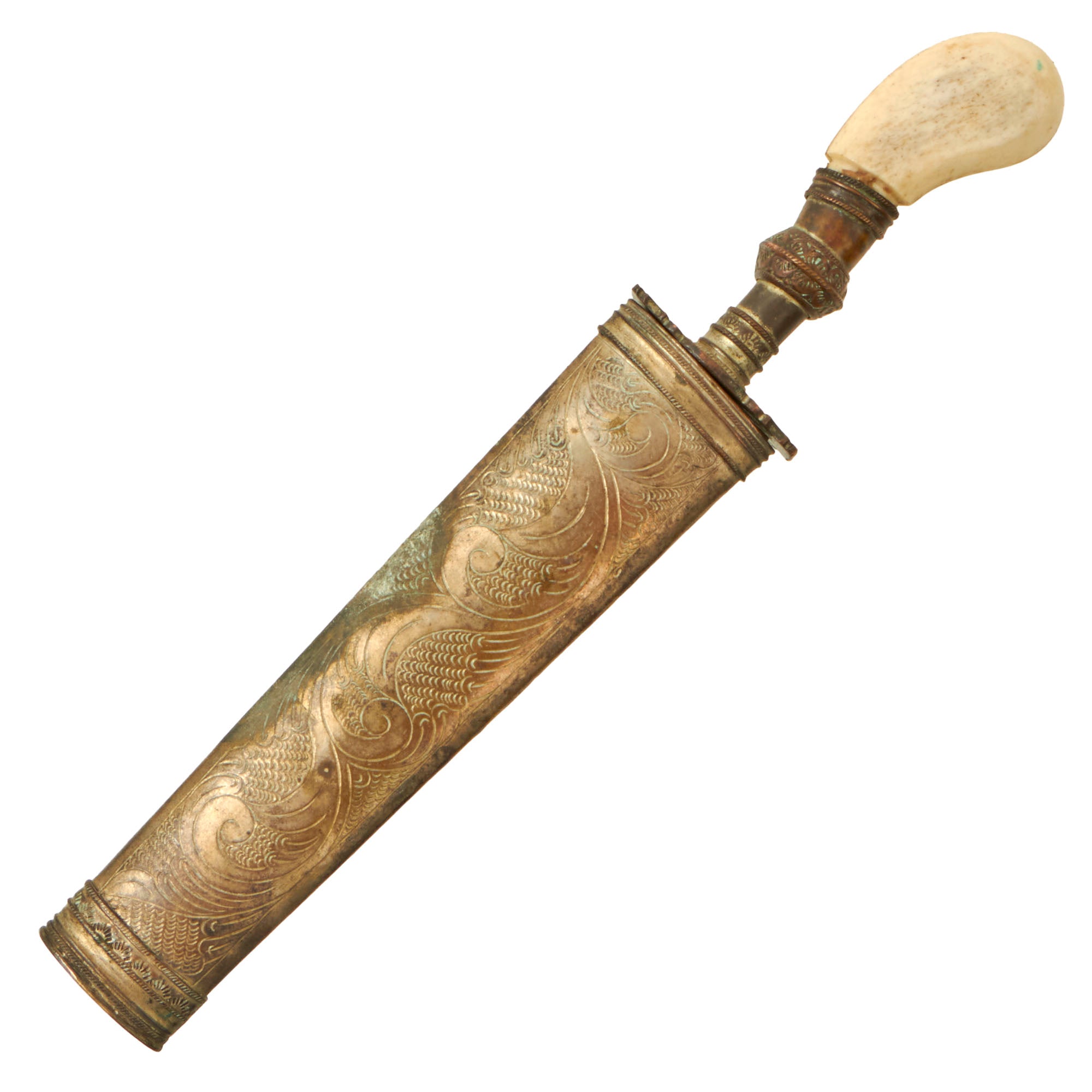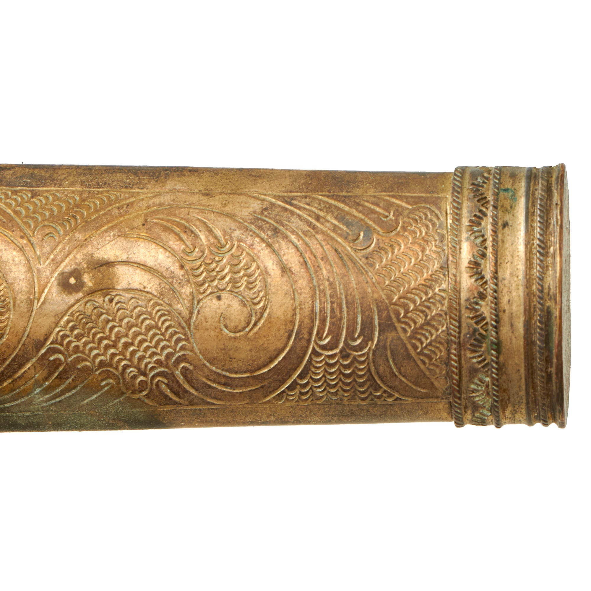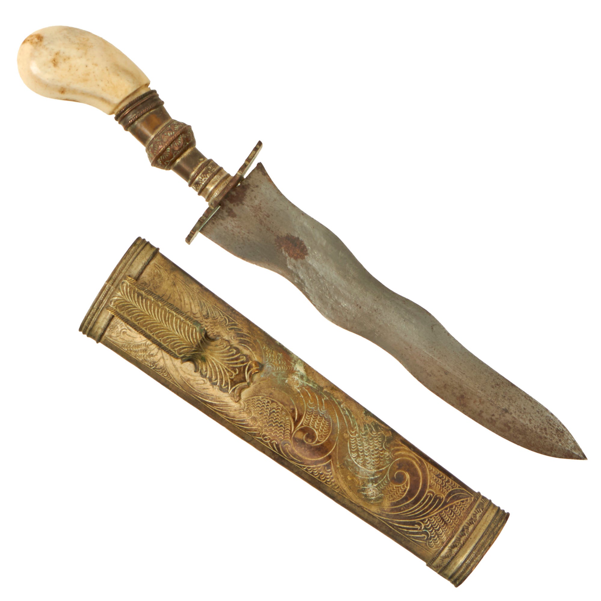 Original Item. One-of-a-Kind. This is a very interesting Philippine dagger with an ornate scabbard and wavy blade. The dagger is engraved: