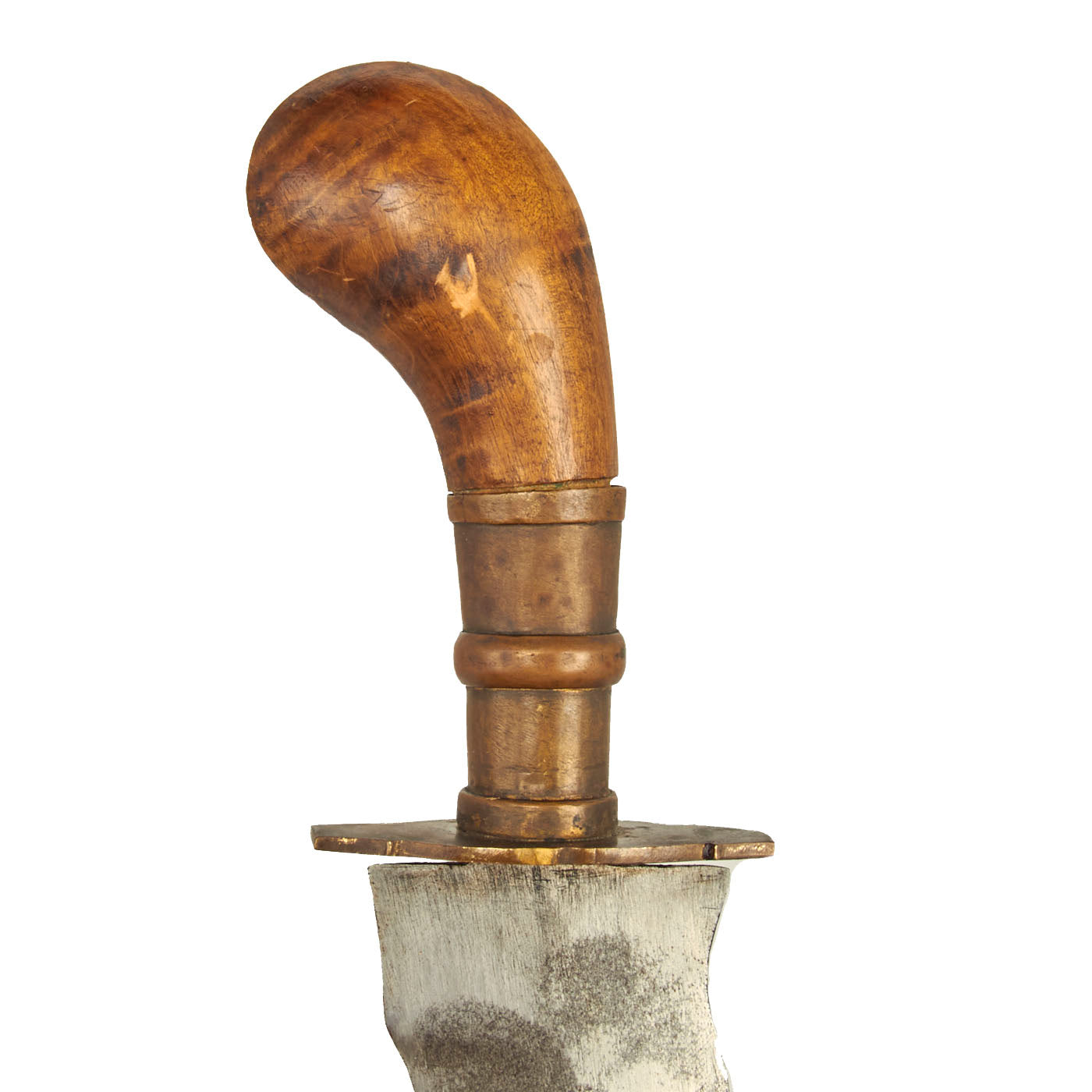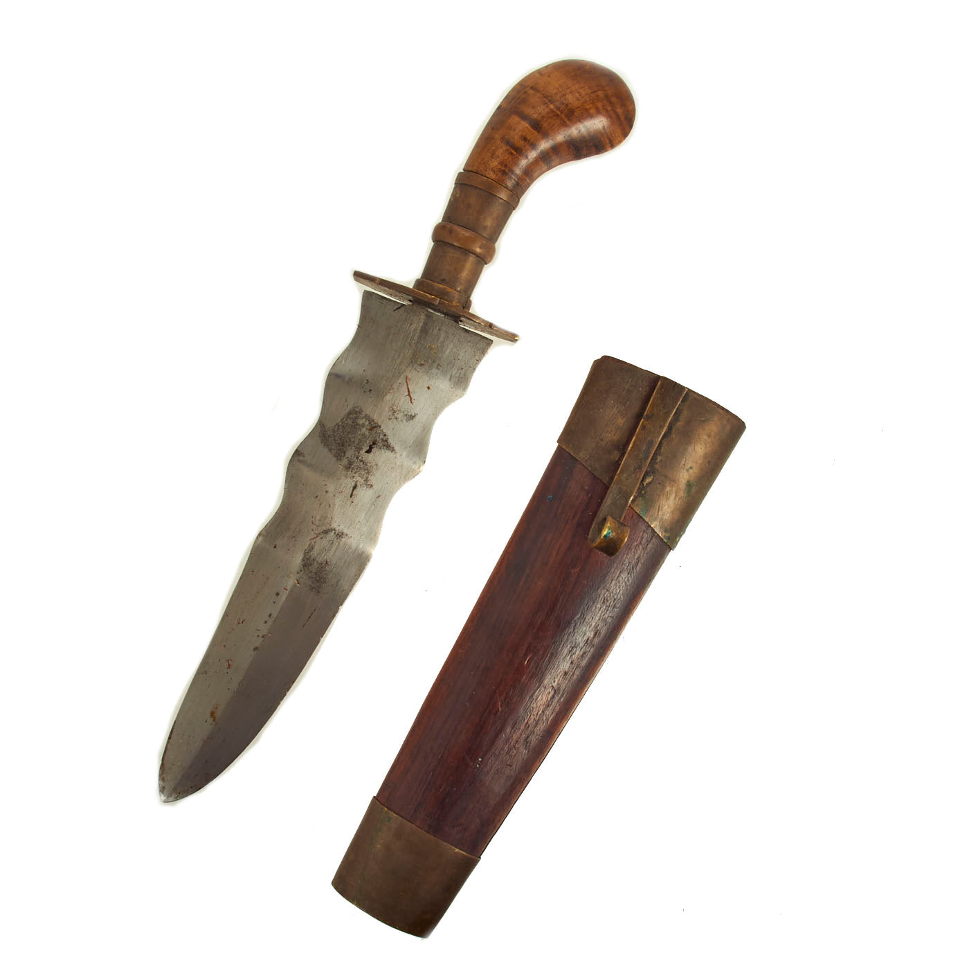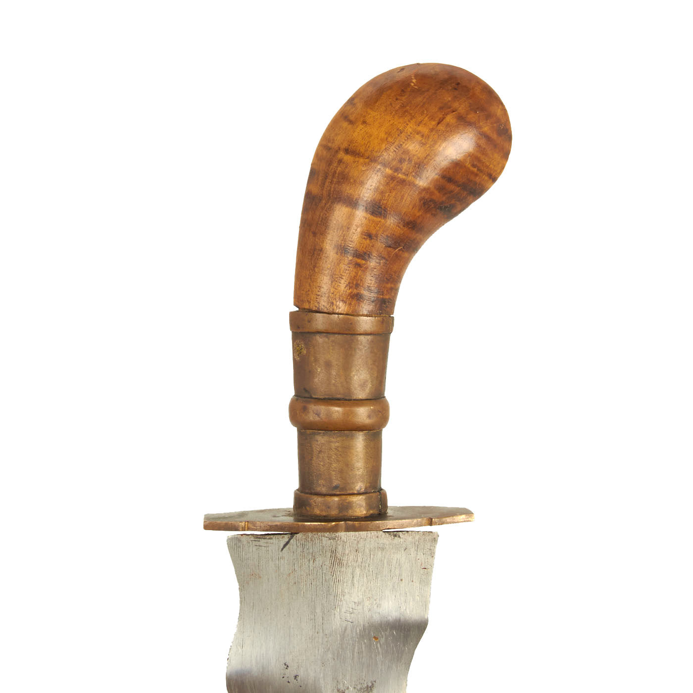 Original Item: Only One Available. The gunong is a knife from Mindanao and the Visayas islands of the Philippines. In the ancient past, it was called bunong by the Tagalog people. It is essentially a diminutive form of the larger kalis or kris. The gunong serves both as a utility knife and as a thrusting weapon used for close quarter fighting—usually as a last defense. It is most often associated with the Maranao, among whom the gunong was traditionally carried by both sexes, although it exists in other cultures throughout Mindanao and the Visayas. The weapon is generally tucked into the back of a waist sash.