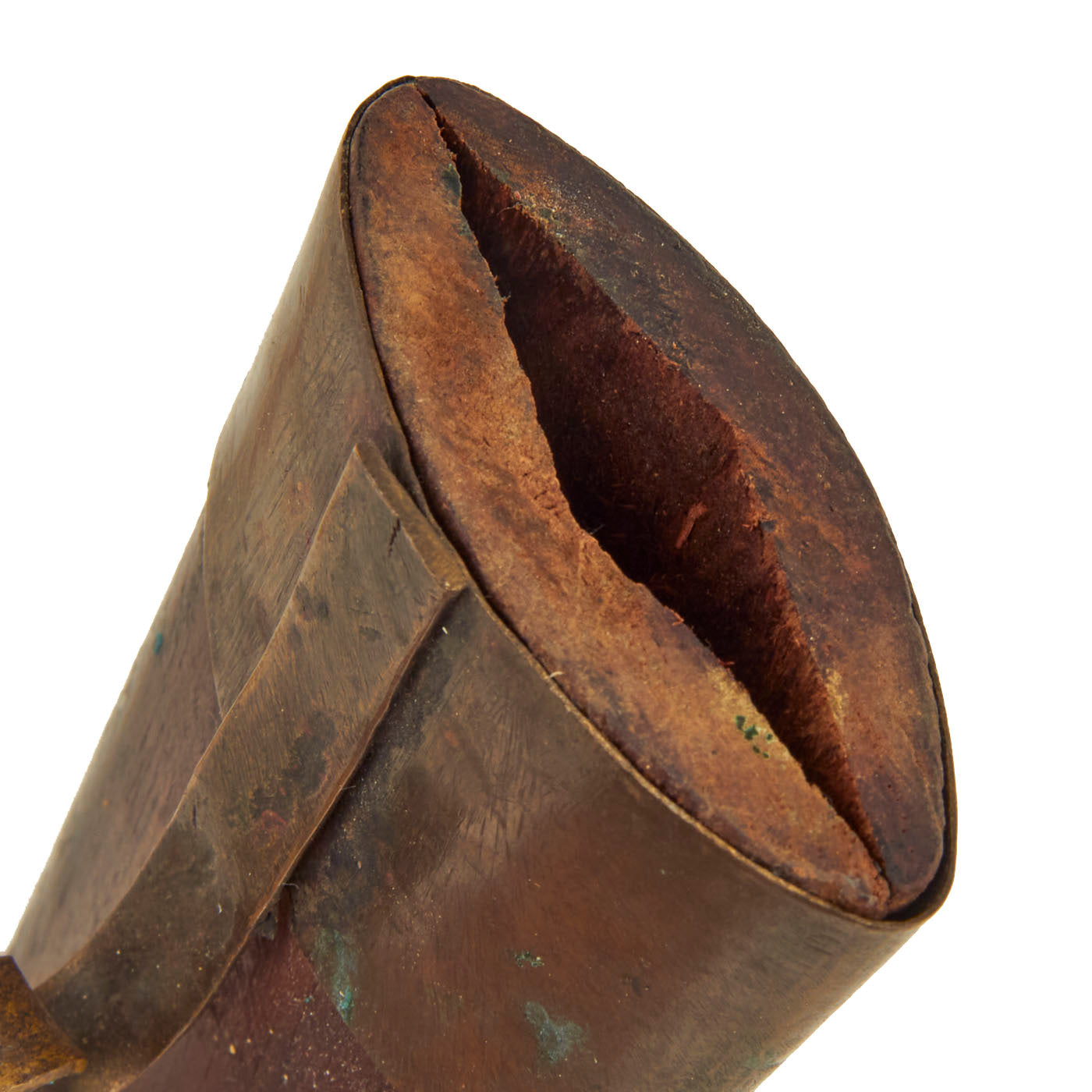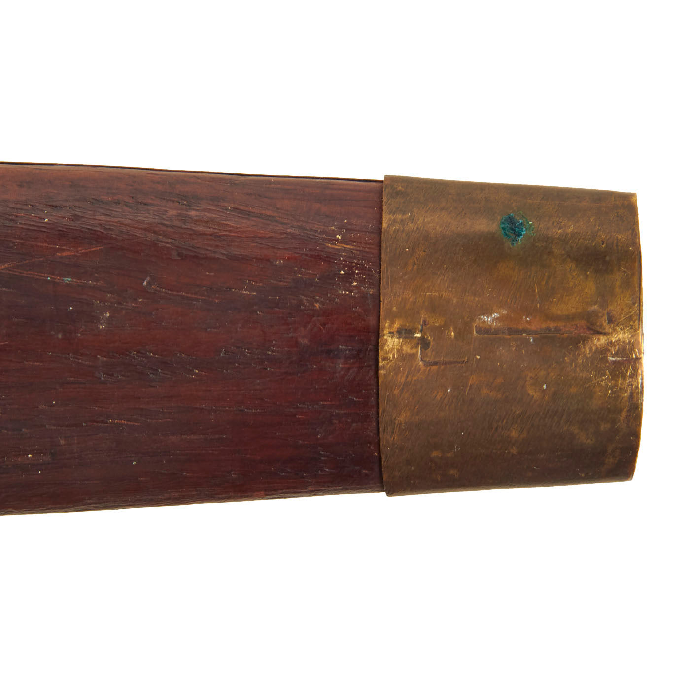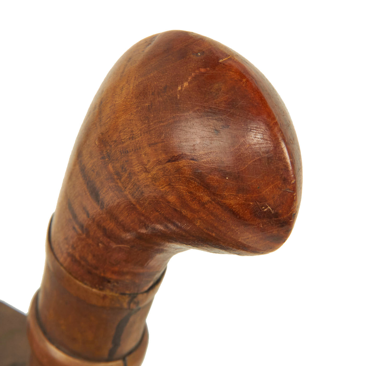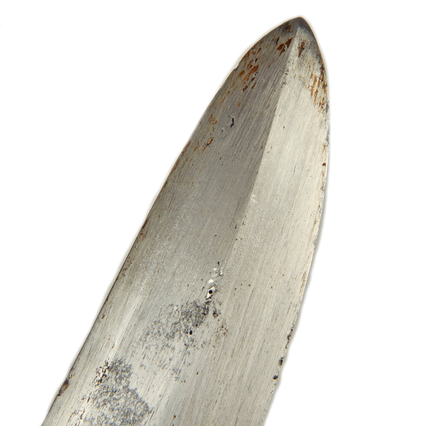 This is a wonderful example and shows very little signs of use, but overzealous cleaning has given the blade a bright appearance. There are a few nicks in the blade but it is in overall excellent condition.