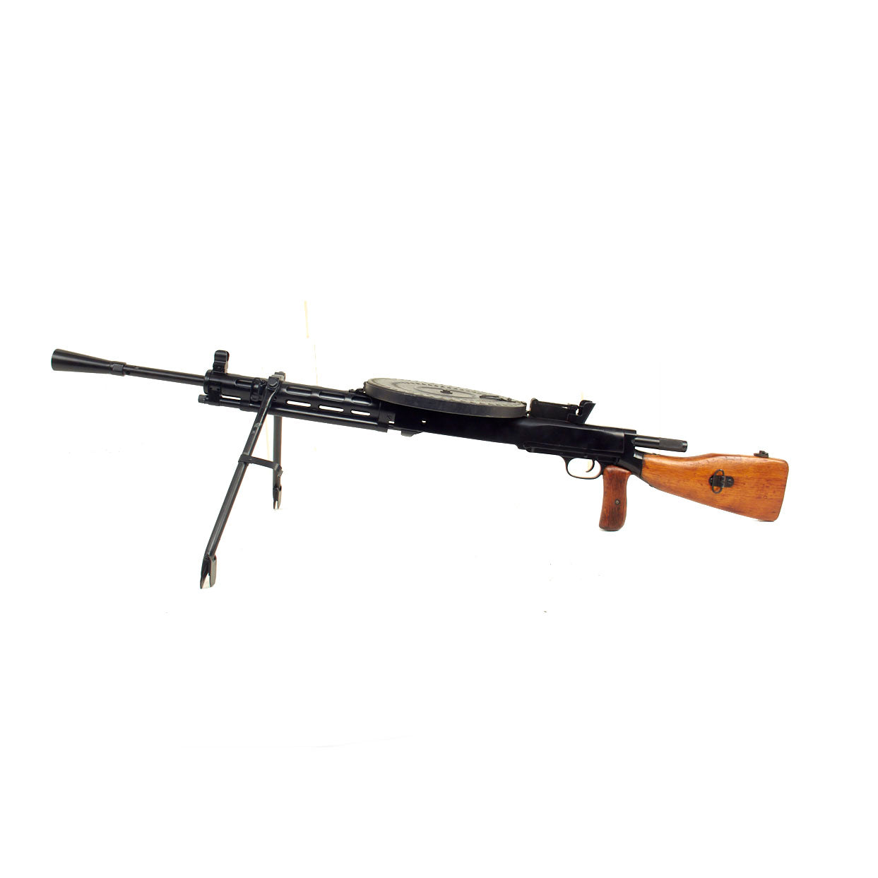 Original Item: Only One Available. Just purchased from a private collection, this is a fantastic original Polish 7.62 x 54R DPM Display Light Machine Gun, built from all original parts on an original BATF compliant non-firing display receiver, making this a 100% legal display Sub-Machine gun. This receiver was created by using portions of the original torch cut receiver, including the barrel bushing, combined with some new made steel portions. It has properly had a 25% section of the total length completely replaced entirely with solid steel bar stock. Meaning a 1/4 length section of the display receiver is solid steel, making this totally legal to own without a license of any kind. Every part on this display gun is original WWII manufacture other than 25% of the receiver replaced by solid steel (as required by BATF).