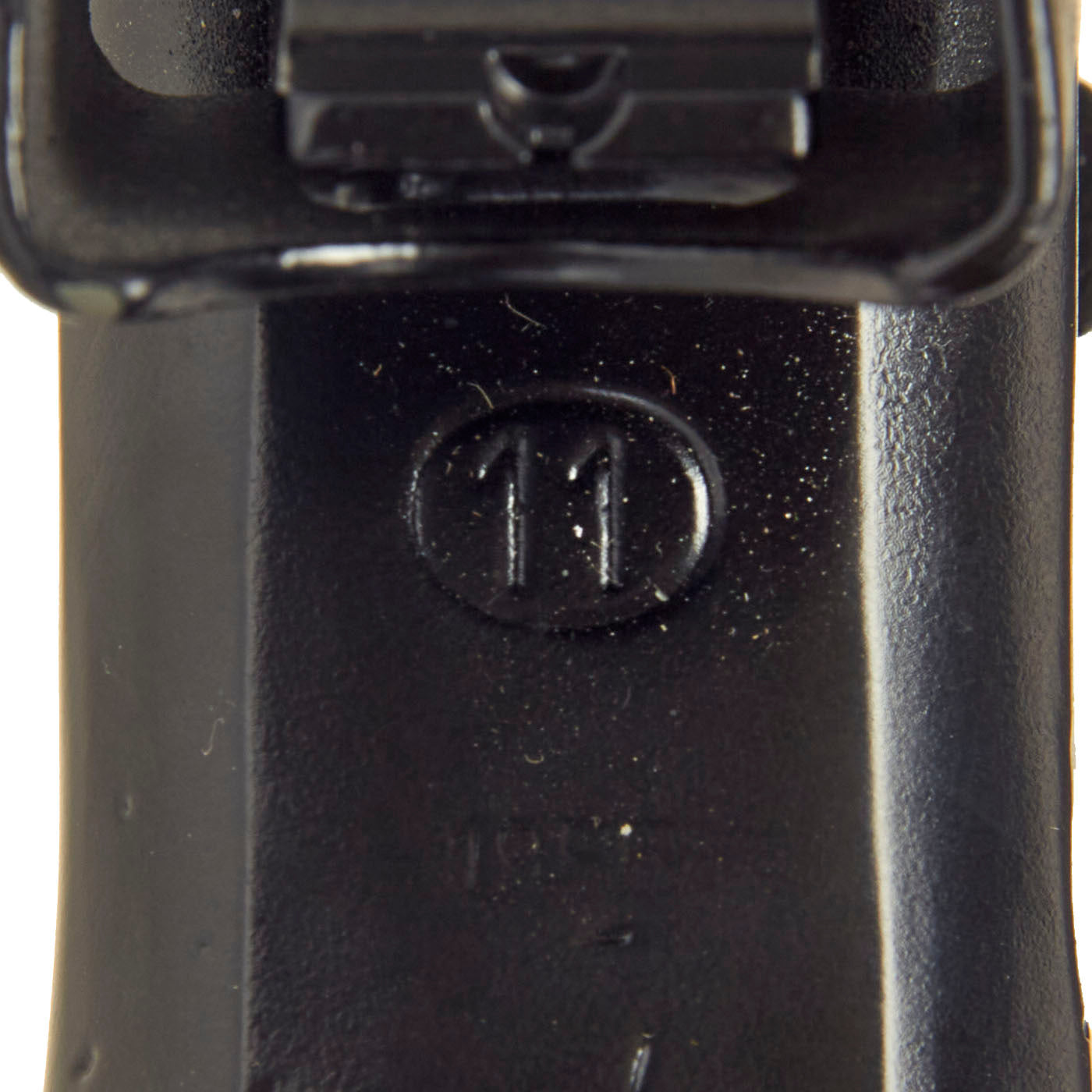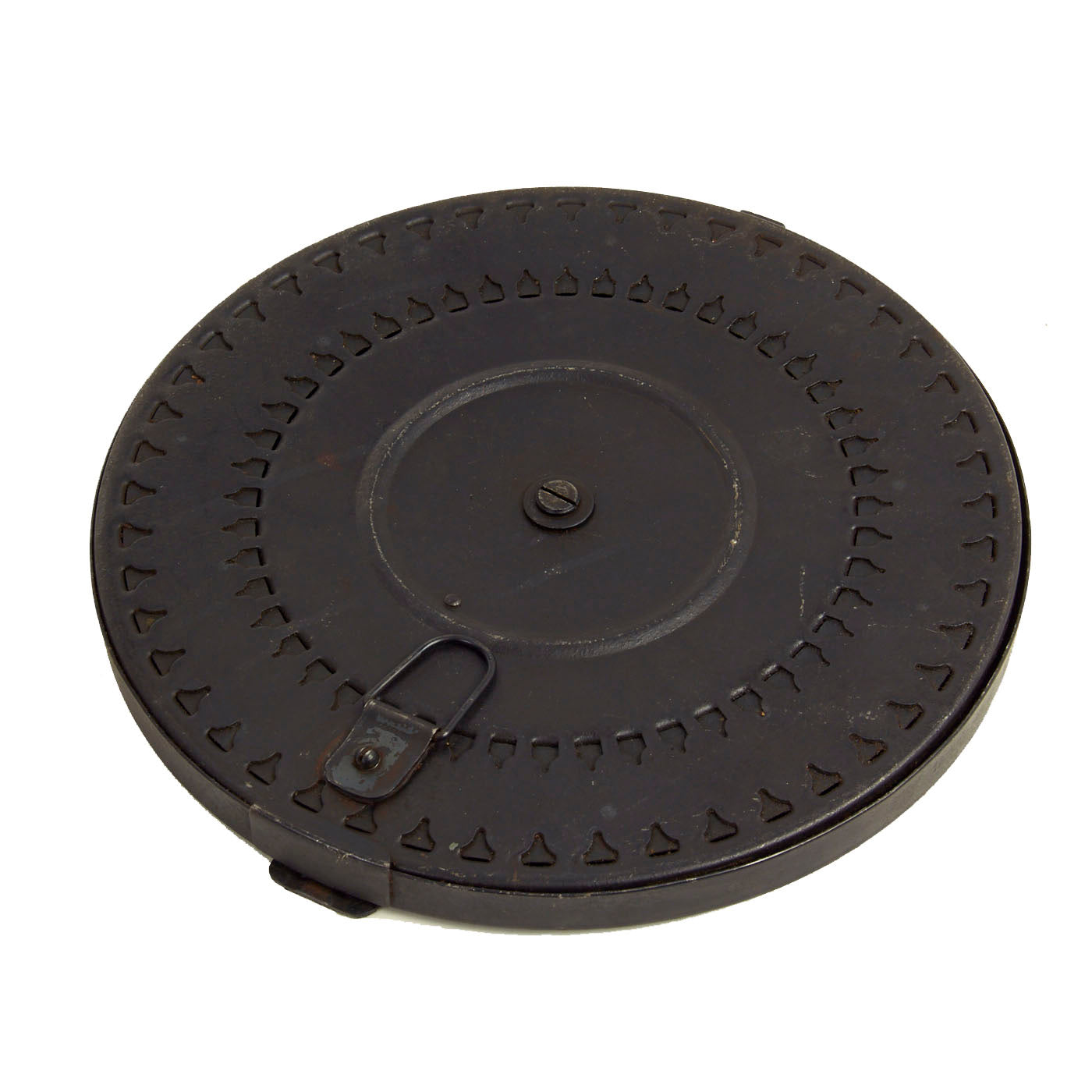 This display gun is constructed of all original parts on a totally re-welded display receiver, complete with an original bipod and pan magazine. It is marked with 11 in a Circle behind the rear sight, which is the Polish arsenal marking for Zakłady Metalowe im. gen. "Waltera" (General Walter Metal Works). Located in Radom, Poland, this is a factory with a lot of history, having produced and designed numerous arms. It received the factory code number of 11; to prevent confusion with an earlier Factory #11, the number received a single circle around it to differentiate it. Under the factory number is a faint 1955 date, and on the rear of the trigger group is serial number DN1057.