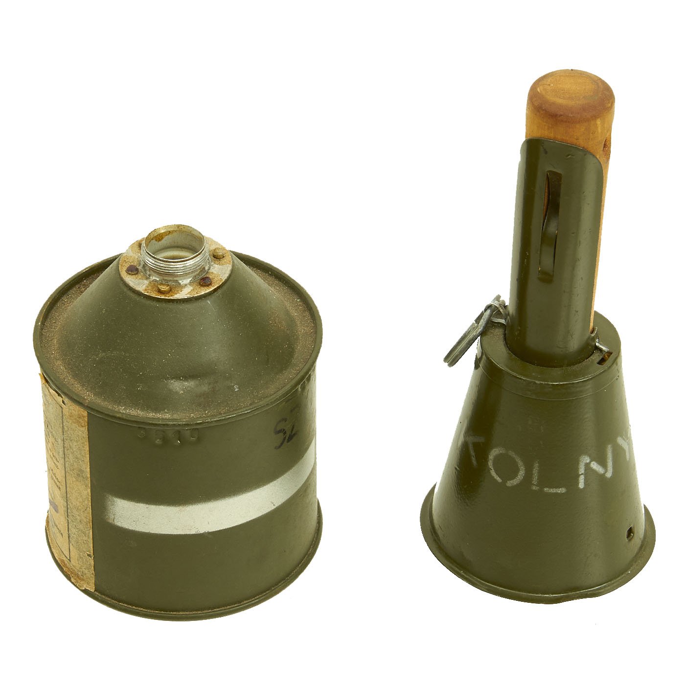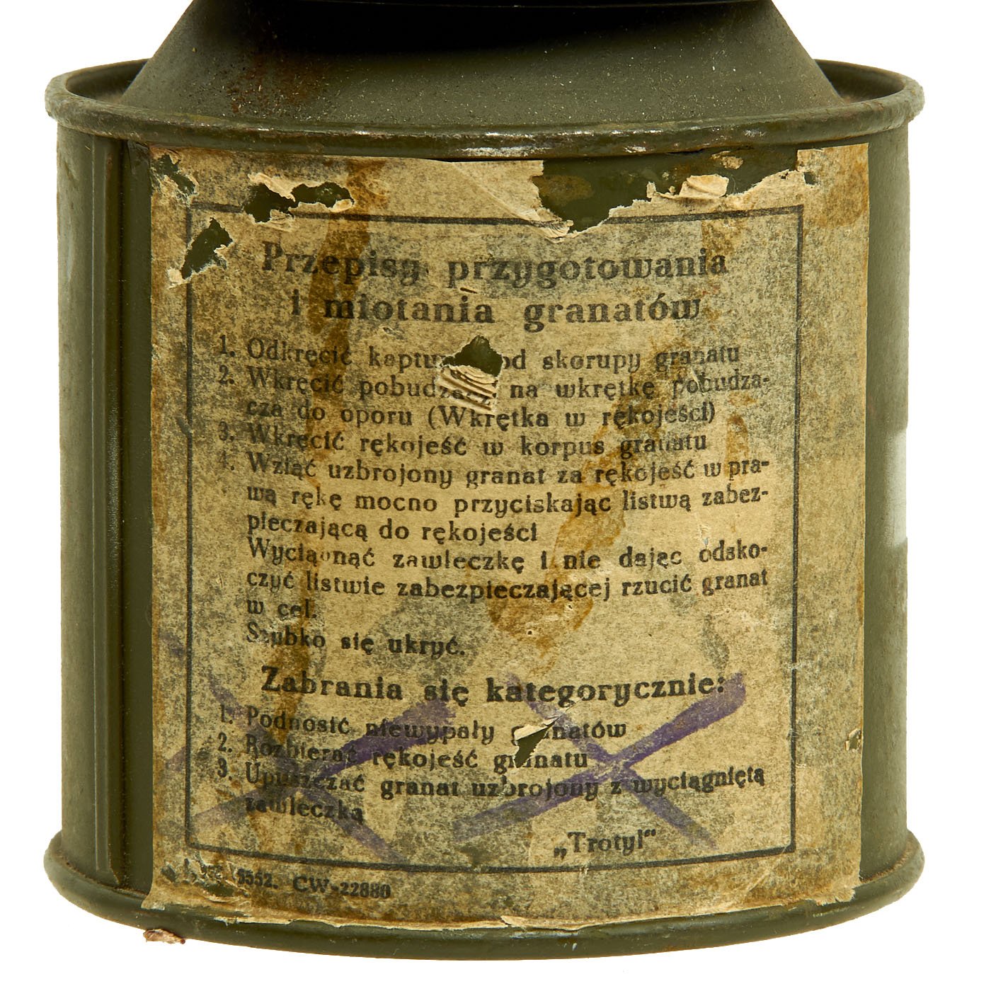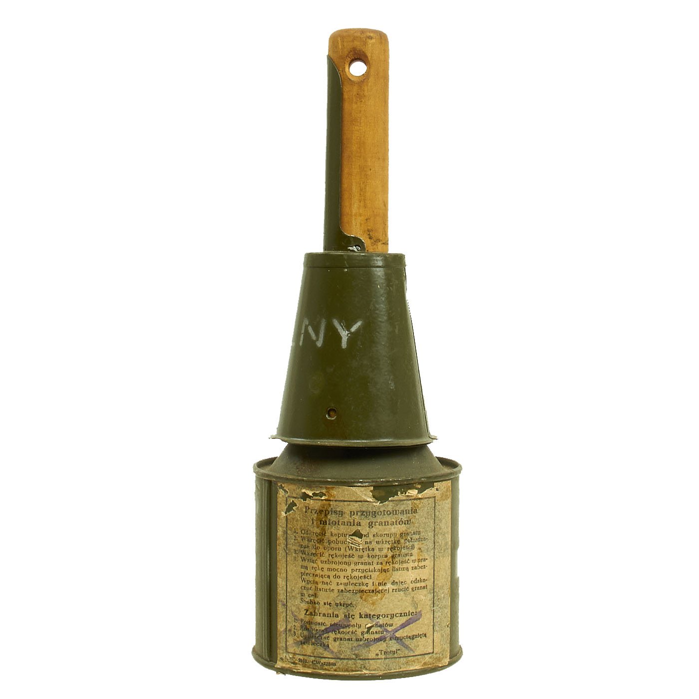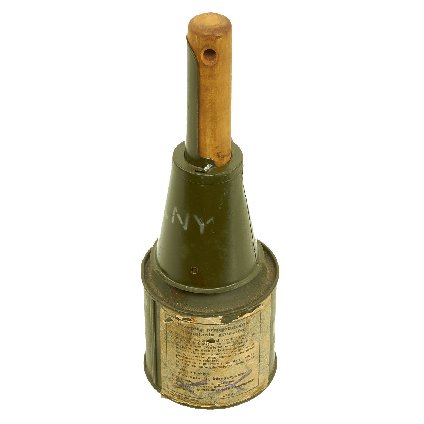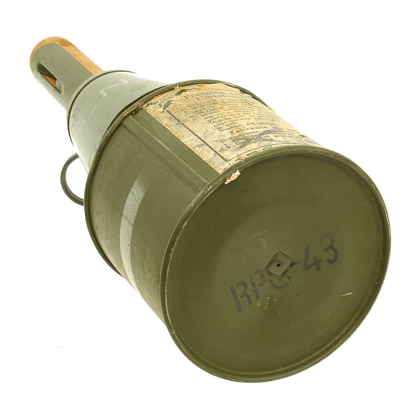 Original Item: Only one Available. This is a genuine very good condition inert example of a Soviet Manufactured RPG-43 (Short for ruchnaya protivotankovaya granata obraztca 1943, goda meaning "hand-held anti-tank grenade"). This example has a label in Polish, indicating that it was issued there during the cold war period. It is marked SZKOLNY in several places, which translates to "school" or training.