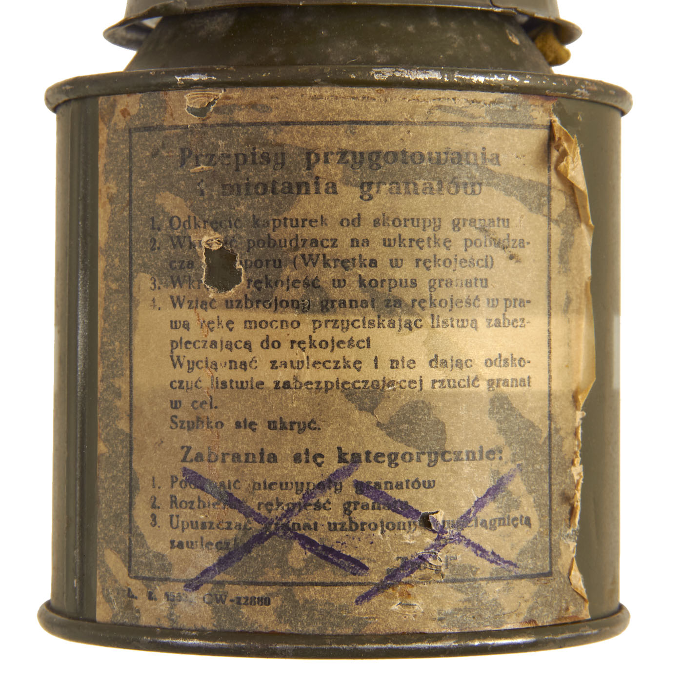 Original Item: Only one Available. This is a genuine very good condition inert example of a Soviet Manufactured RPG-43 (Short for ruchnaya protivotankovaya granata obraztca 1943, goda meaning "hand-held anti-tank grenade"). This example has a label in Polish, indicating that it was issued there during the cold war period. It is marked SZKOLNY in several places, which translates to "school" or training.