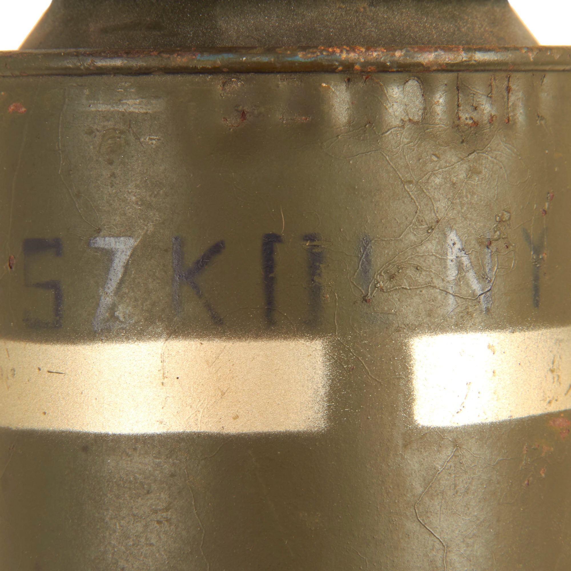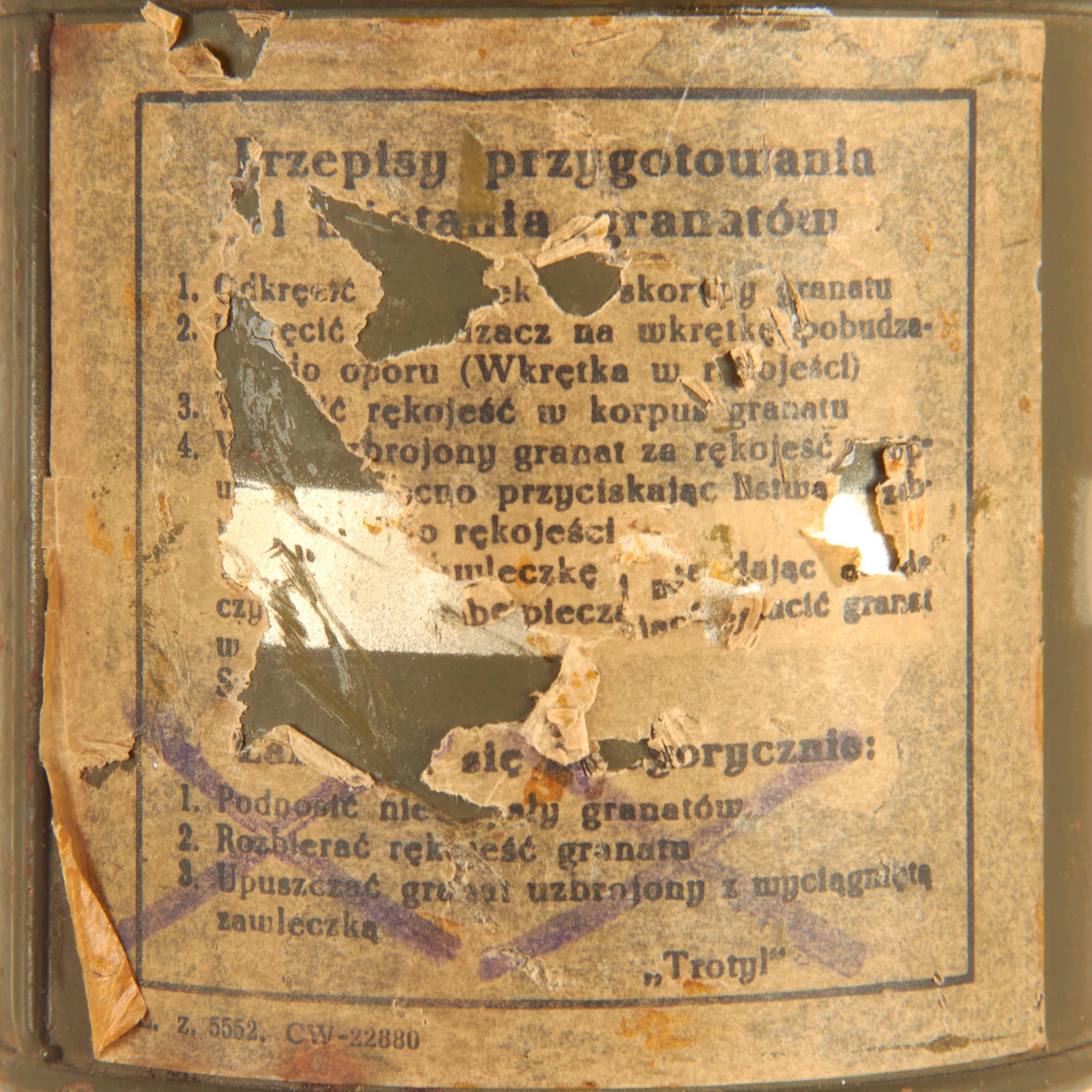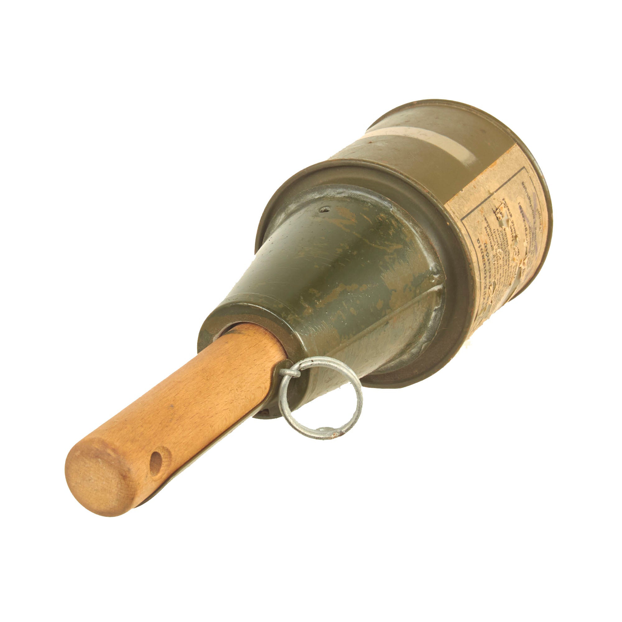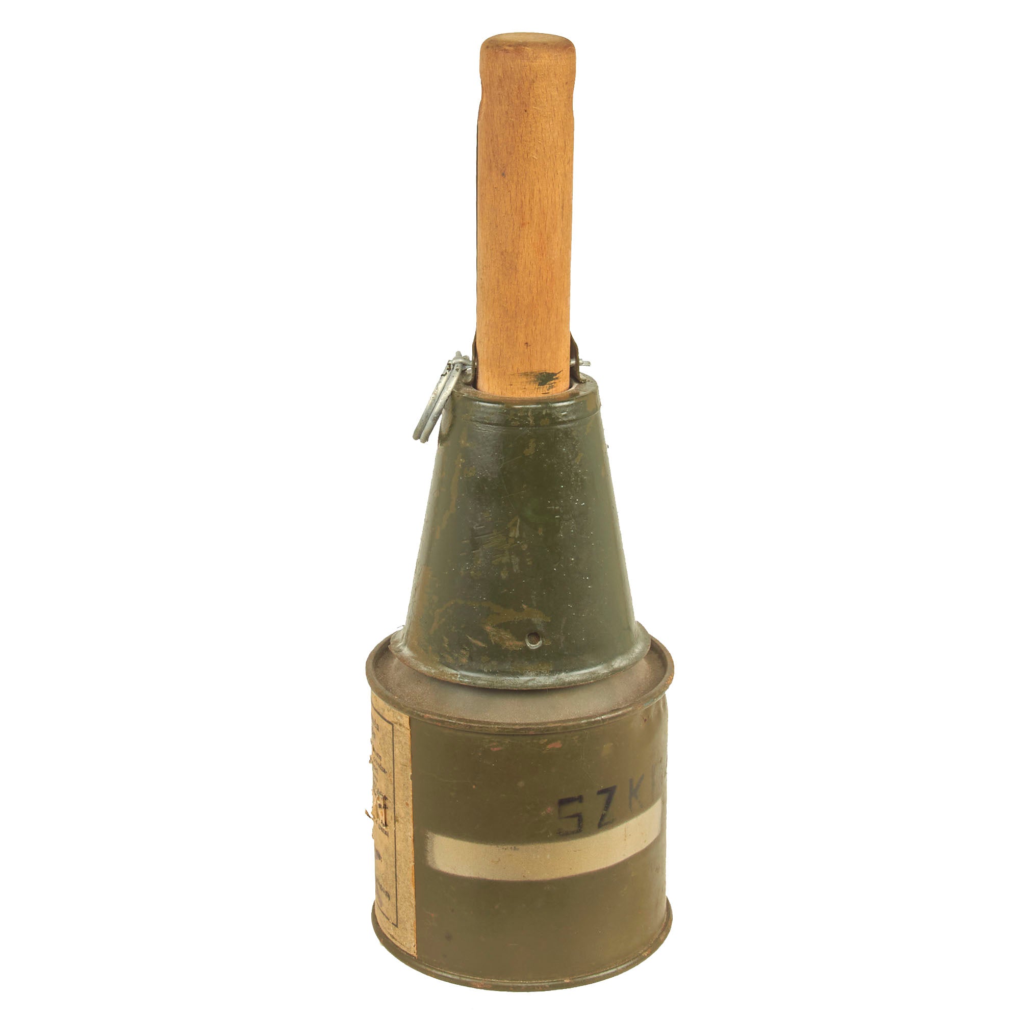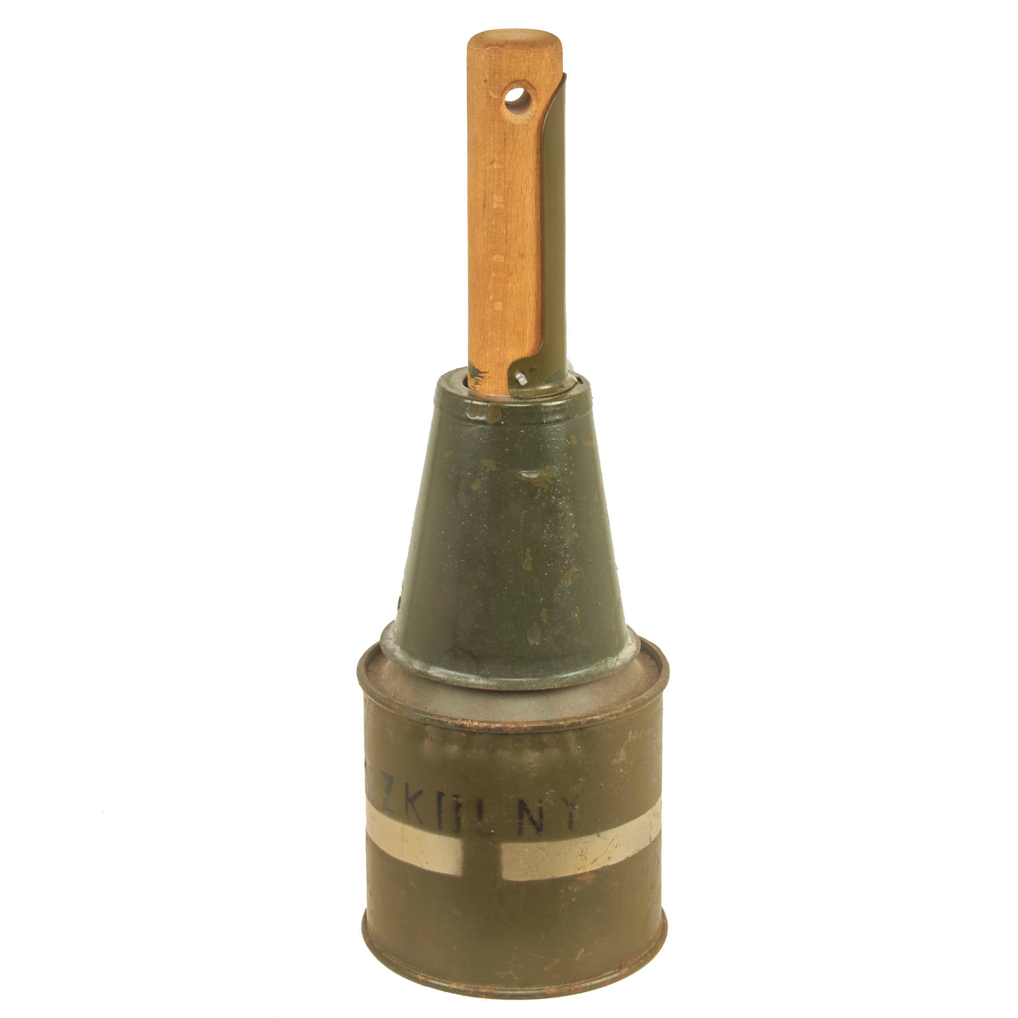 Original Item: Only one Available. This is a genuine very good condition inert example of a Soviet Manufactured RPG-43 (Short for ruchnaya protivotankovaya granata obraztca 1943, goda meaning "hand-held anti-tank grenade, year of 1943"). This example has a label in Polish, indicating that it was issued there during the cold war period. It is marked SZKOLNY on the side, which translates to "school" or training.
