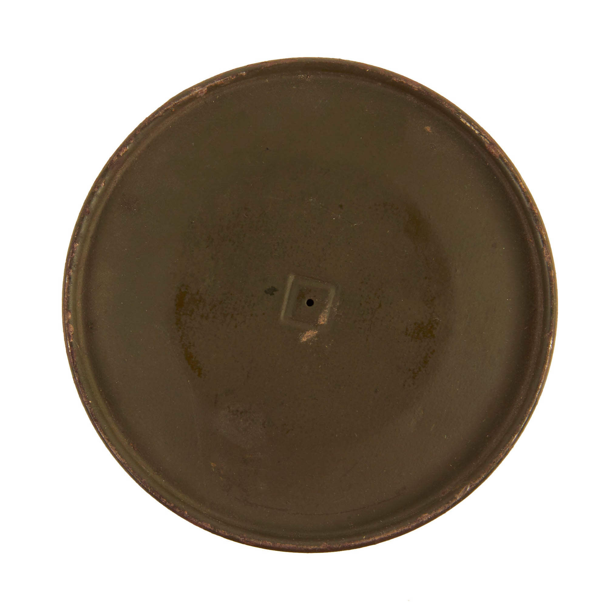 This example is in very good condition, showing light wear overall and some oxidation. The label on the side is also somewhat torn. The olive fabric streamers are still intact under the cap, and can be examined by removing the pull in. Ready to display!