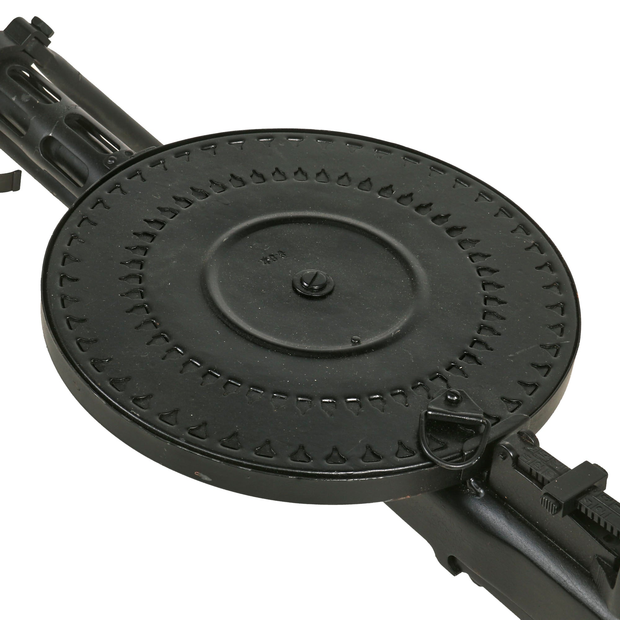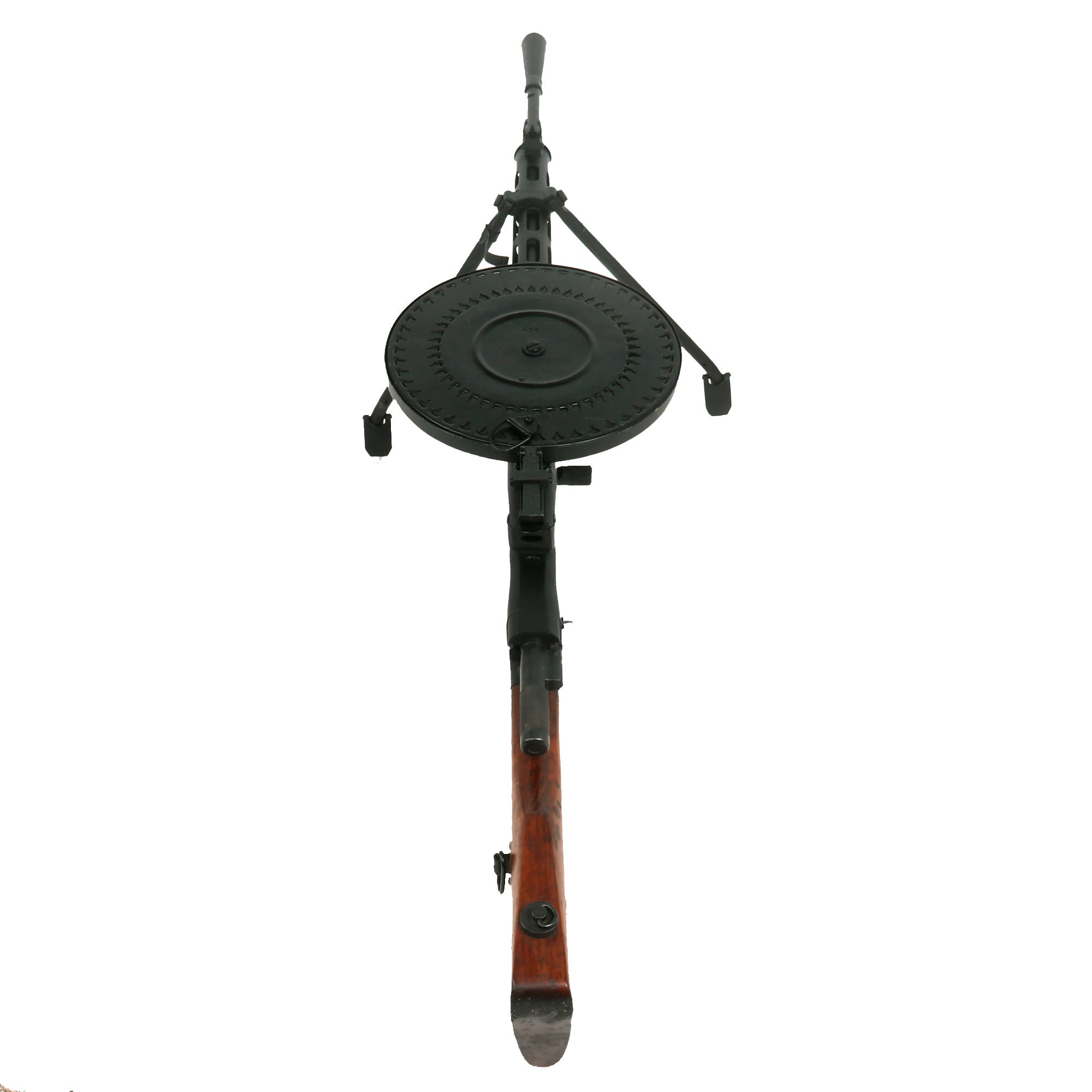 Original Item: Only One Available. Just purchased from a private collection, this is a fantastic original Polish 7.62 x 54R DPM Display Light Machine Gun, built from all original parts on an original BATF compliant non-firing display receiver, making this a 100% legal display Sub-Machine gun. This receiver was created by using portions of the original torch cut receiver, including the barrel bushing, combined with some new made steel portions. It has properly had a 25% section of the total length completely replaced entirely with solid steel bar stock. Meaning a 1/4 length section of the display receiver is solid steel, making this totally legal to own without a license of any kind. Every part on this display gun is original WWII manufacture other than 25% of the receiver replaced by solid steel (as required by BATF). The barrel has also been deactivated, and the included pan magazine welded in place on the receiver.