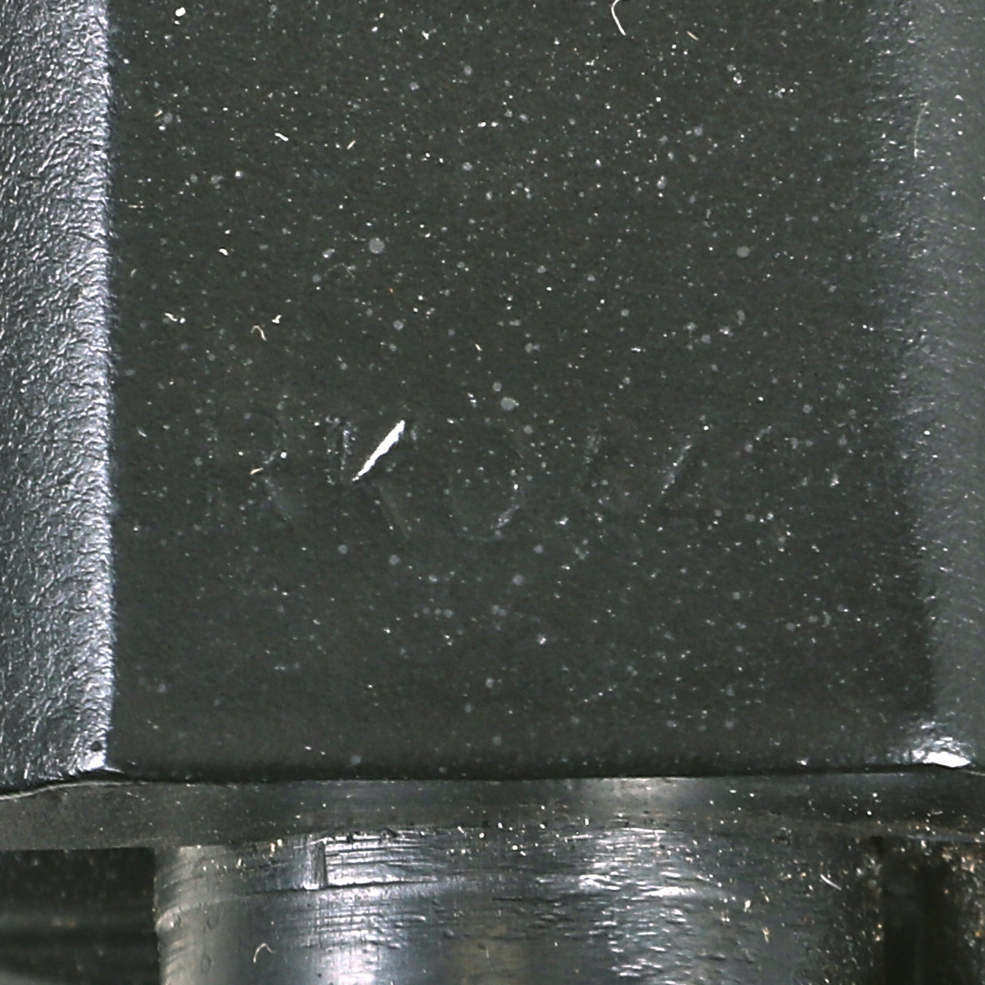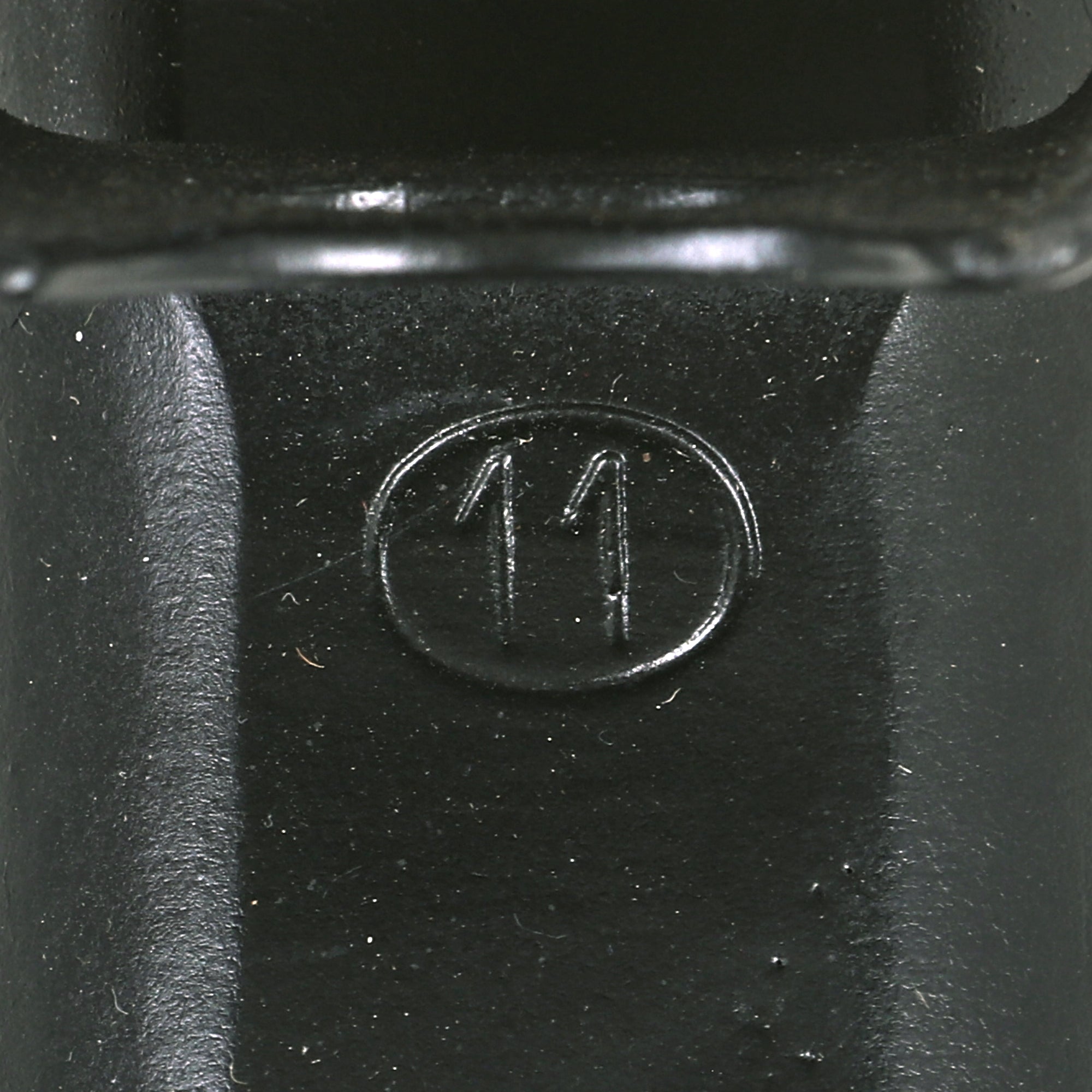 This display gun is constructed of all original parts on a totally re-welded display receiver, complete with an original bipod and pan magazine, which is welded to the receiver. It is marked with 11 in a Circle behind the rear sight, which is the Polish arsenal marking for Zakłady Metalowe im. gen. "Waltera" (General Walter Metal Works). Located in Radom, Poland, this is a factory with a lot of history, having produced and designed numerous arms. It received the factory code number of 11 to prevent confusion with an earlier Factory #11, the number received a single circle around it to differentiate it. Under the factory number are trades of markings, and the rear of the trigger group is serial number RK0445.