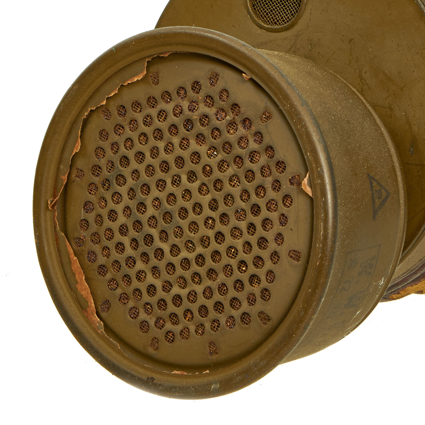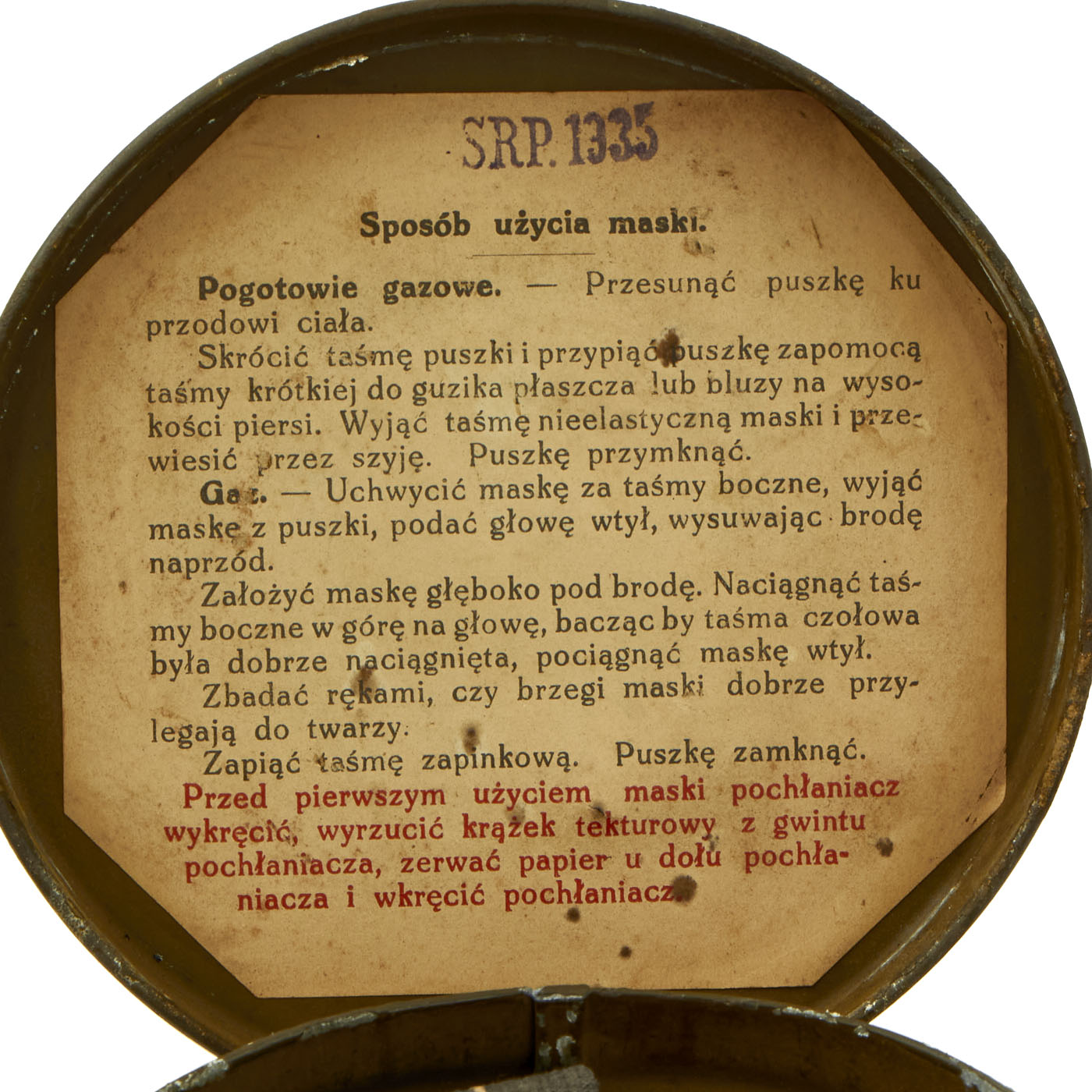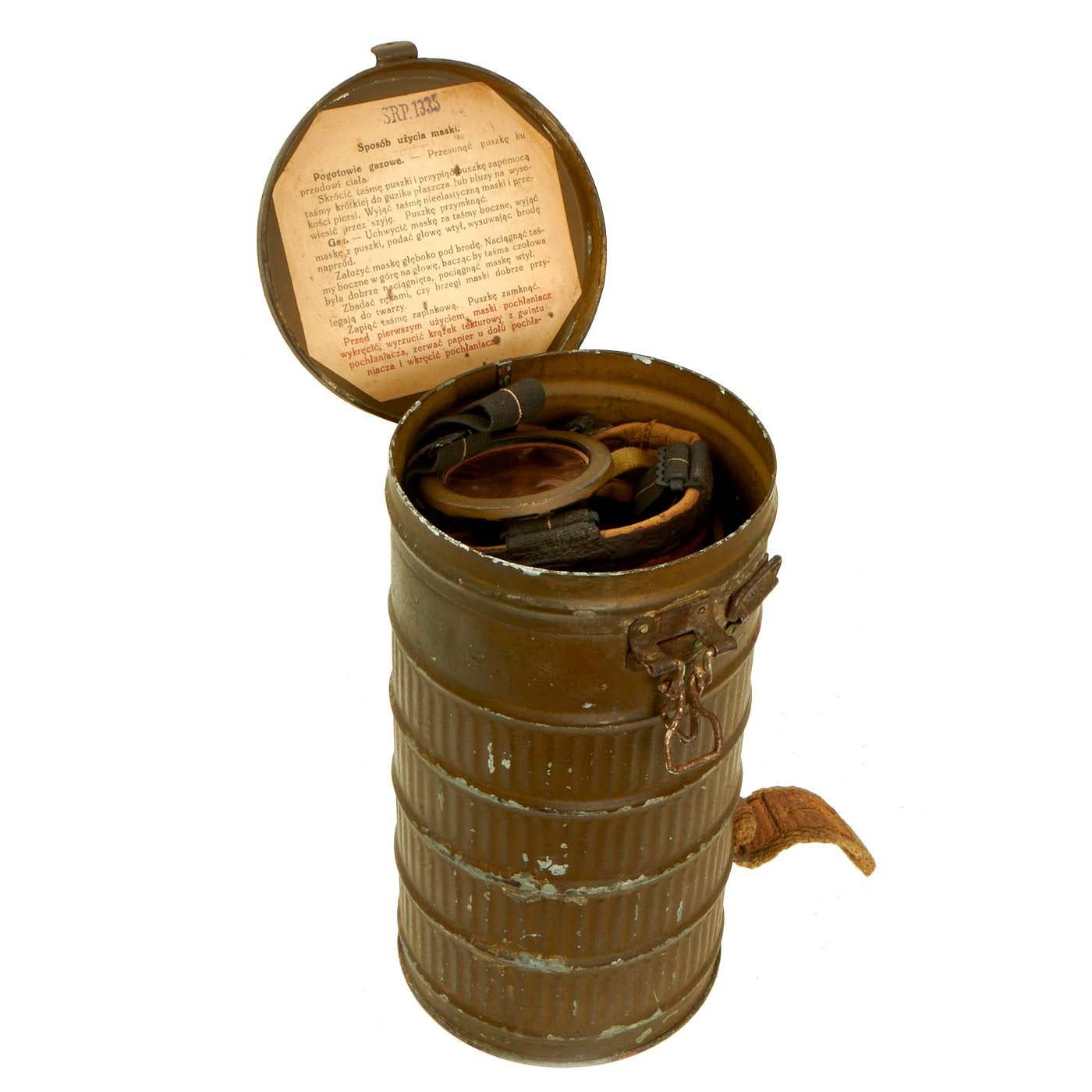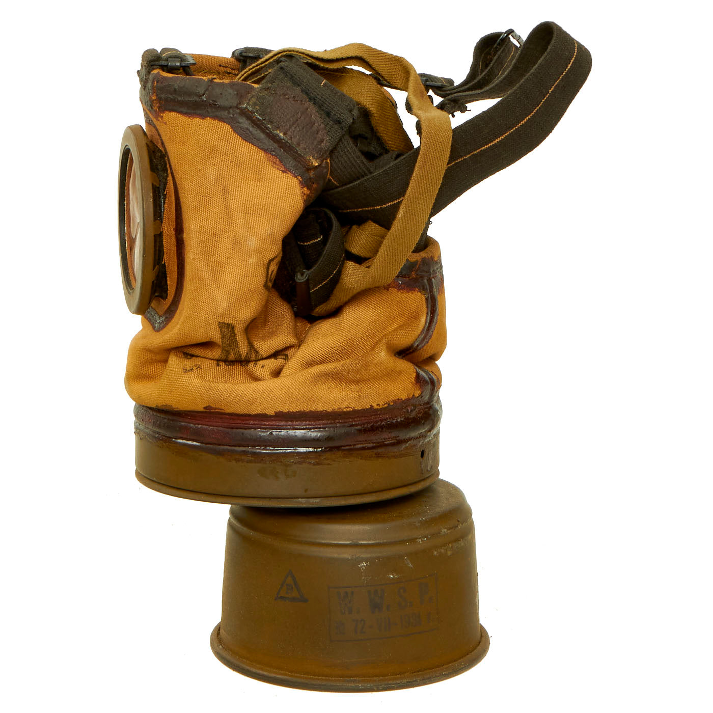Original Item: Only One Available. The Gas Mask Wz.24 popularly known as R.S.C. from the first letters of the names of the three manufacturers, Robert, Saunier and Cantot. It was the first gas mask produced in Poland during the interwar period under French license, modeled on the A.R.S. mask. These masks were produced in the Military Gas Equipment Factory in Radom. During the interwar period until 1939, this mask, apart from the wz. 32 mask, was the basic anti-chemical protection measure used by Polish Military units.
