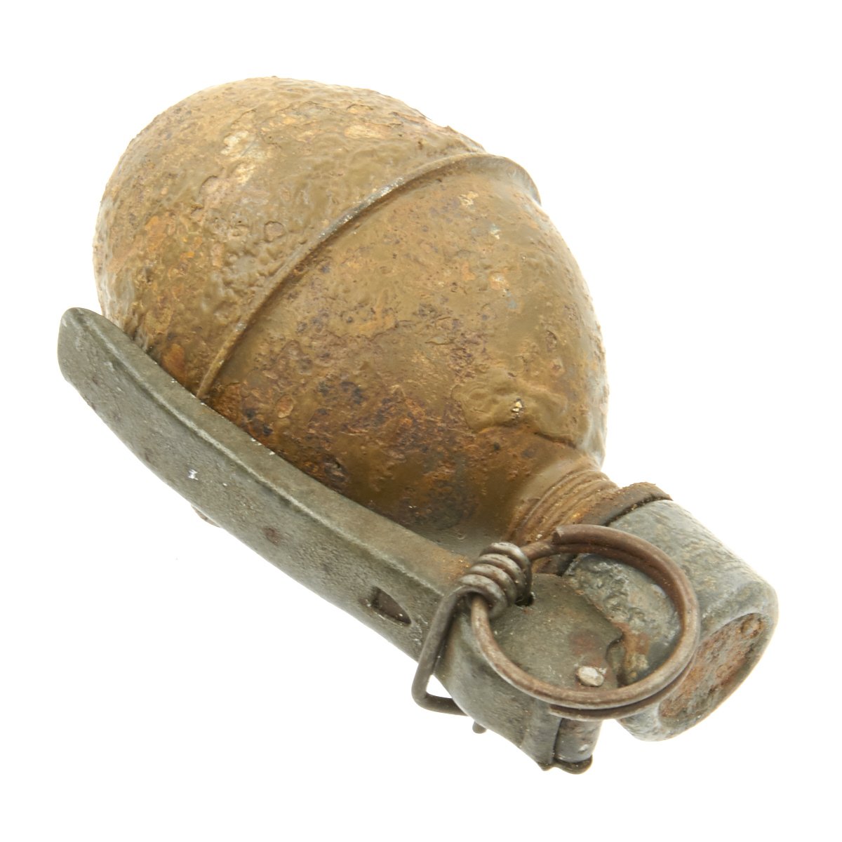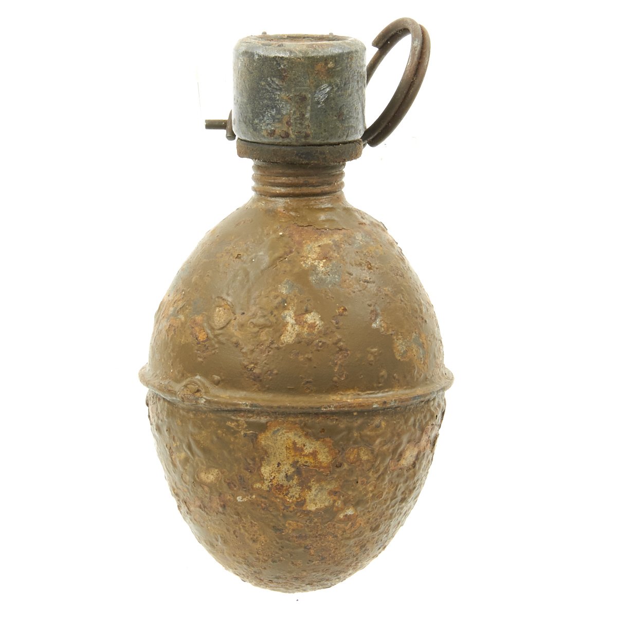 Original Item: Only One Available. This is an exceptionally rare BATF approved inert Polish WWII Defensive Grenade wz. 24. This example is complete with an original wz.Gr.31 percussion fuse, and still has a good deal of the original paint on the body, though it is flaking off due to corrosion in places.