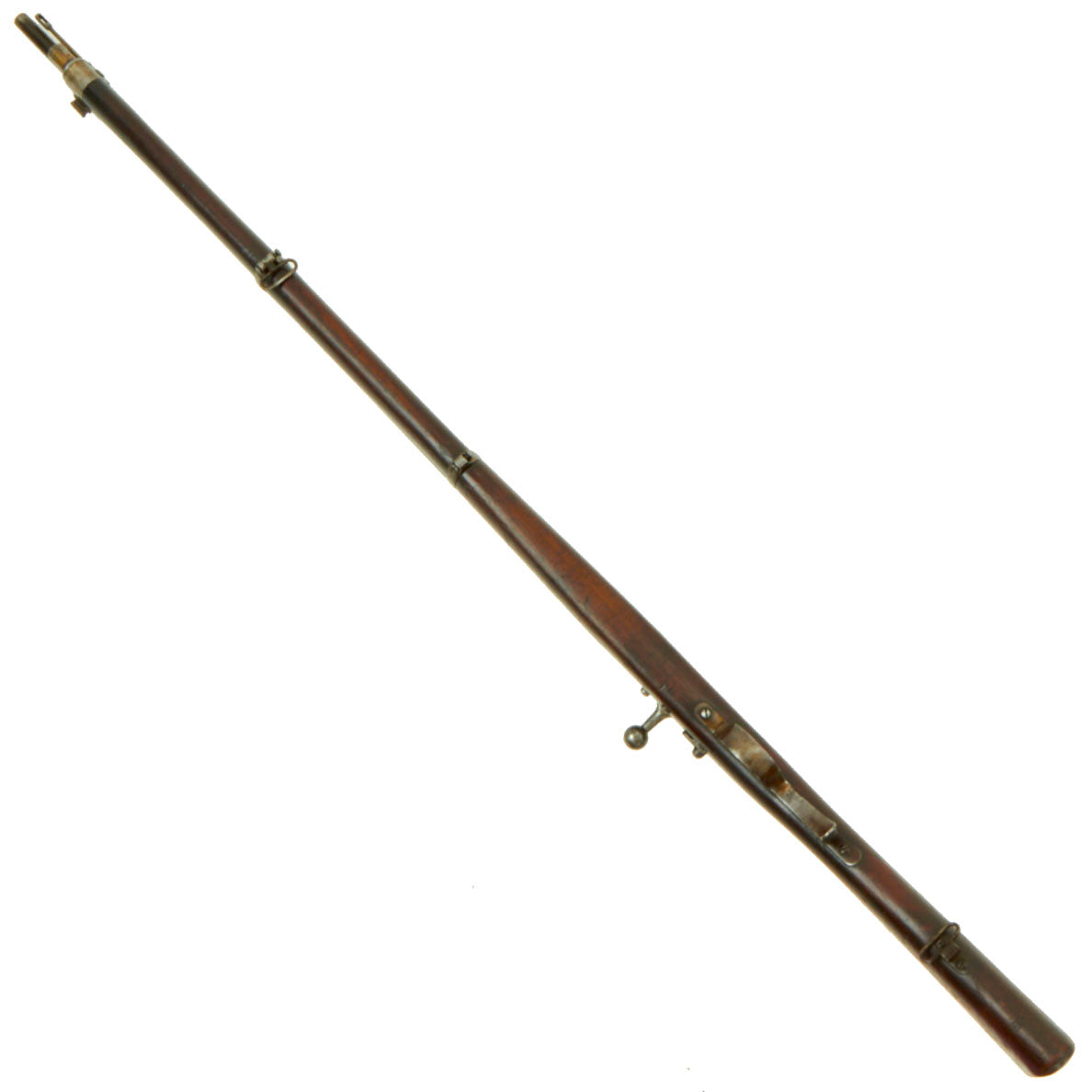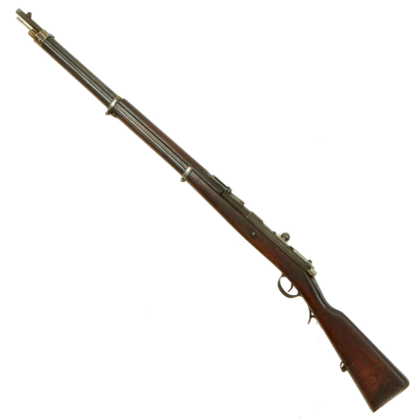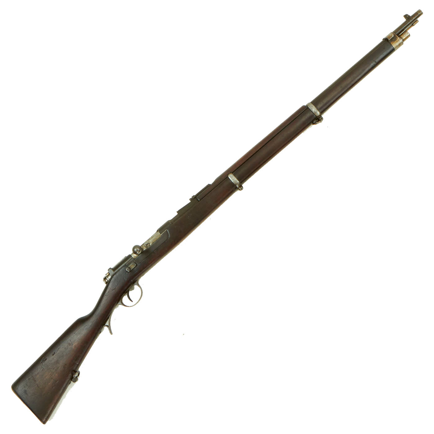 Original Item: One one Available. In 1886 ALFRED VON KROPATSCHEK designed an 8mm rimmed cartridge rifle that became the fore runner to the French LEBEL. Known as the 1886 Kropatschek Rifle it's big customer was PORTUGAL. Production lasted from 1886 until 1898, however many saw service in the First World War and later in the Spanish Civil War of the 1930's. Kropatschek's rifles used a tubular magazine (constructed of nickel-plated steel) of his design, of the same type used in the German Mauser Gewehr 1871/84 and the Japanese Type 22 Murata. While designed for black powder, the Kropatschek action proved to be strong enough to handle smokeless powder.