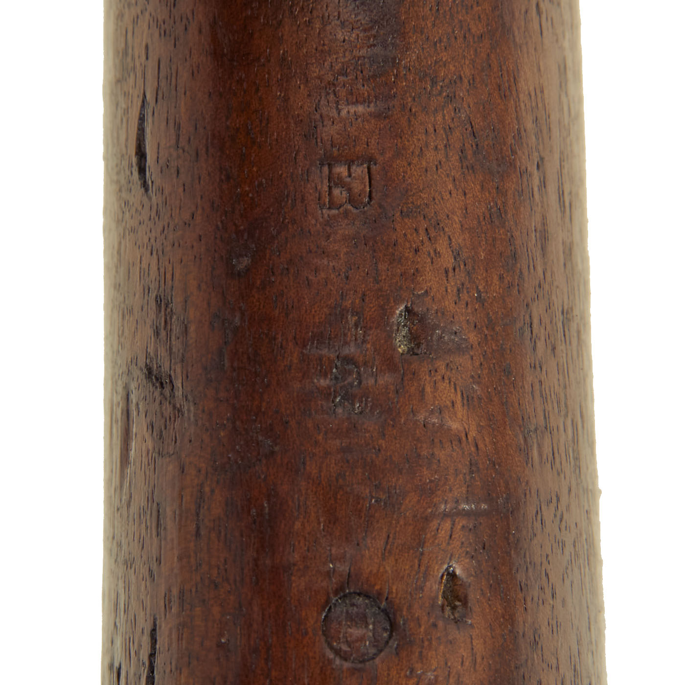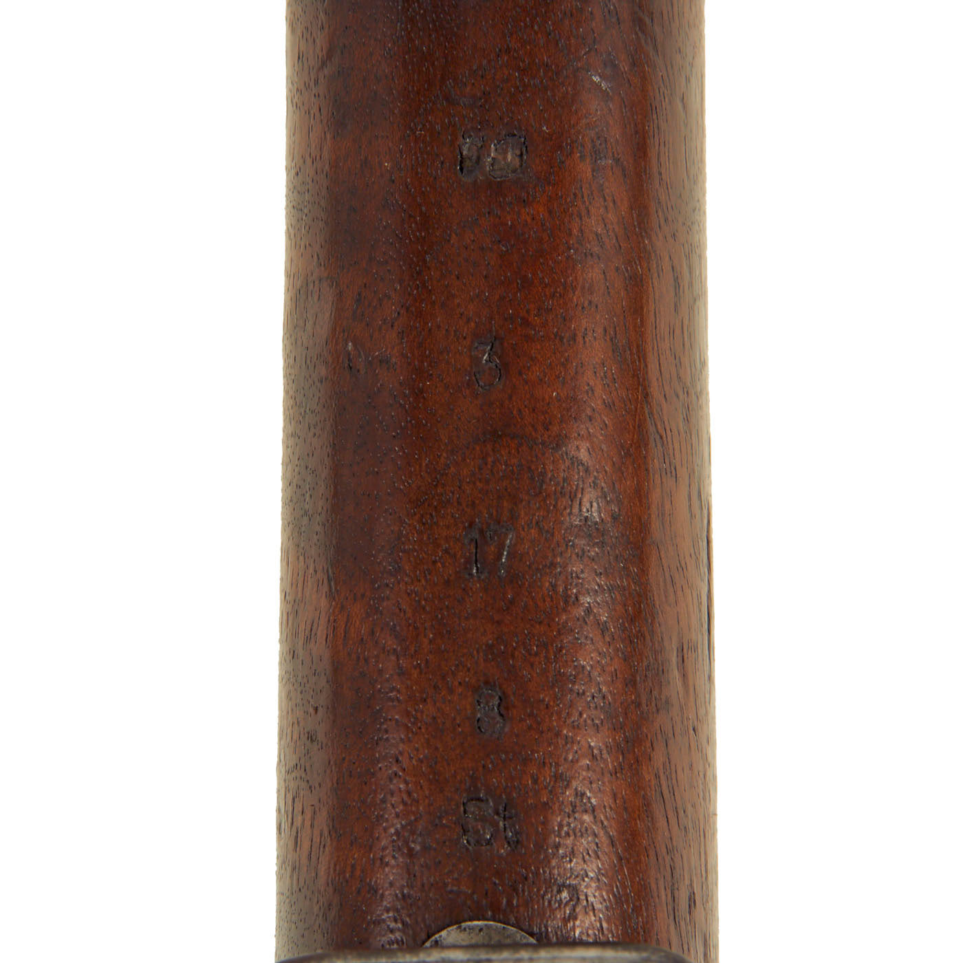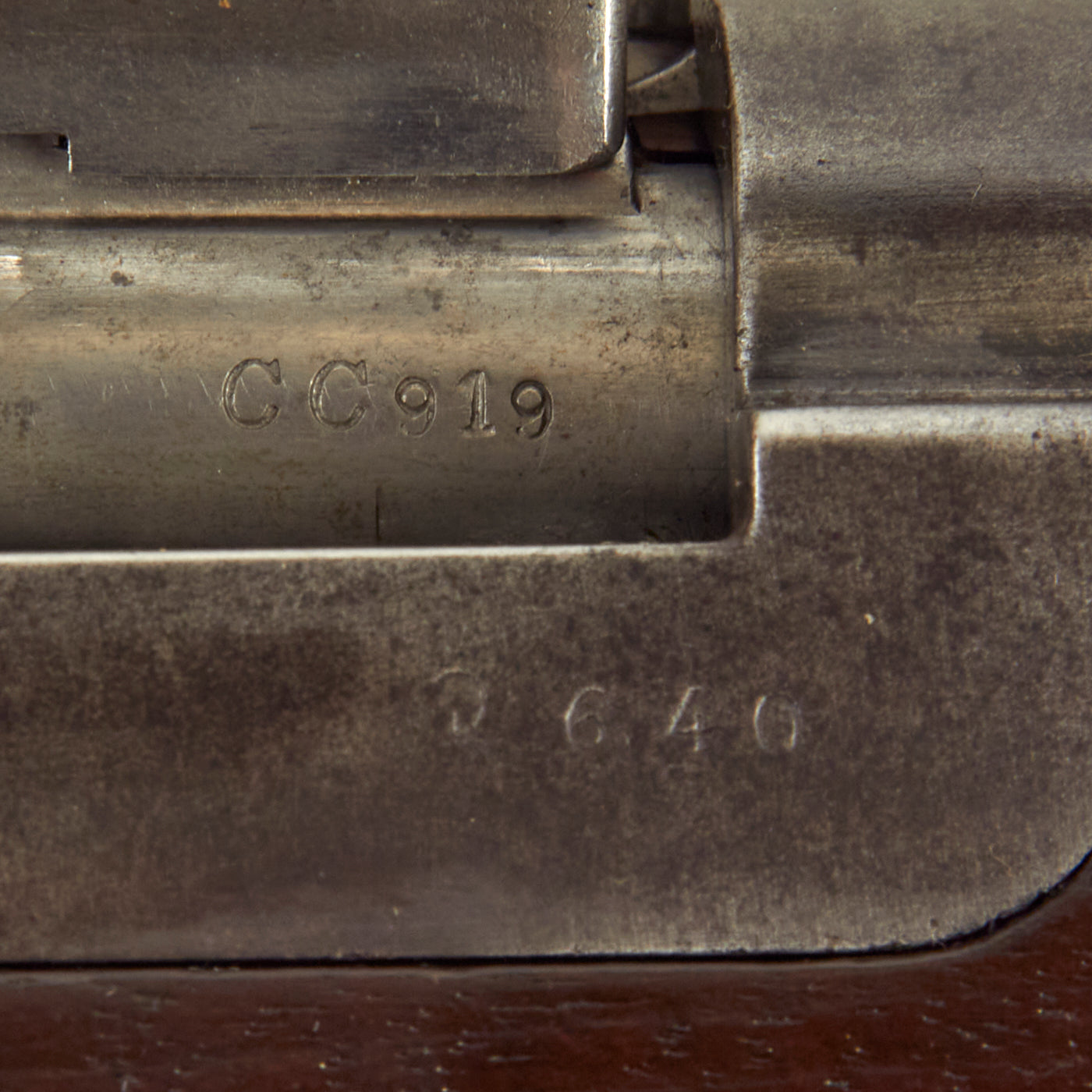 Serial number Q640 is marked on the barrel and receiver, while the bolt is a non matching arsenal replacement with different serial numbers. The stock is also non-matching. This is very common to see on these rifles, which were in service for some time, especially the colonial service examples.