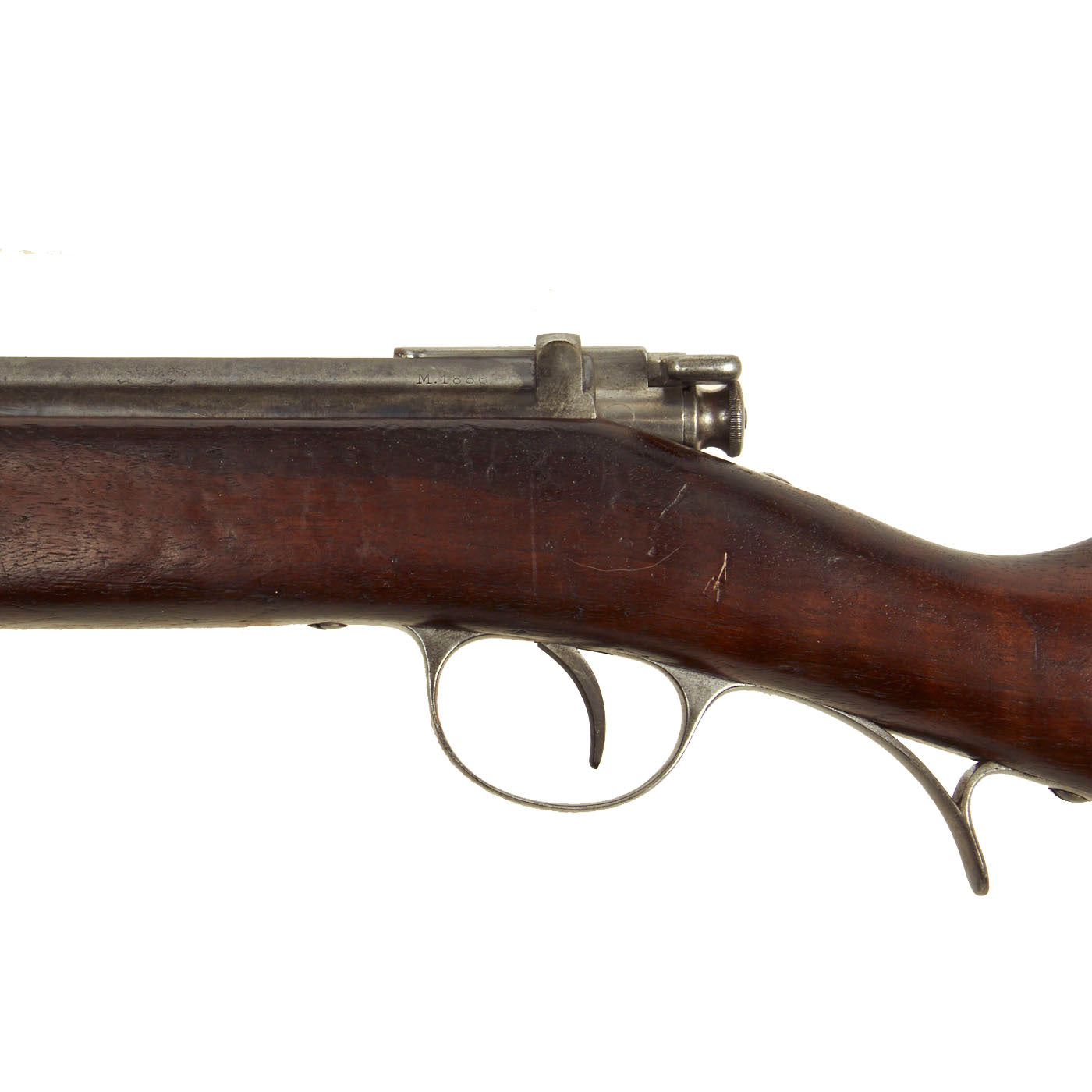Original Item: One one Available. In 1886 ALFRED VON KROPATSCHEK designed an 8mm rimmed cartridge rifle that became the fore runner to the French LEBEL. Known as the 1886 Kropatschek Rifle it's big customer was PORTUGAL. Production lasted from 1886 until 1898, however many saw service in the First World War and later in the Spanish Civil War of the 1930's. Kropatschek's rifles used a tubular magazine (constructed of nickel-plated steel) of his design, of the same type used in the German Mauser Gewehr 1871/84 and the Japanese Type 22 Murata. While designed for black powder, the Kropatschek action proved to be strong enough to handle smokeless powder.