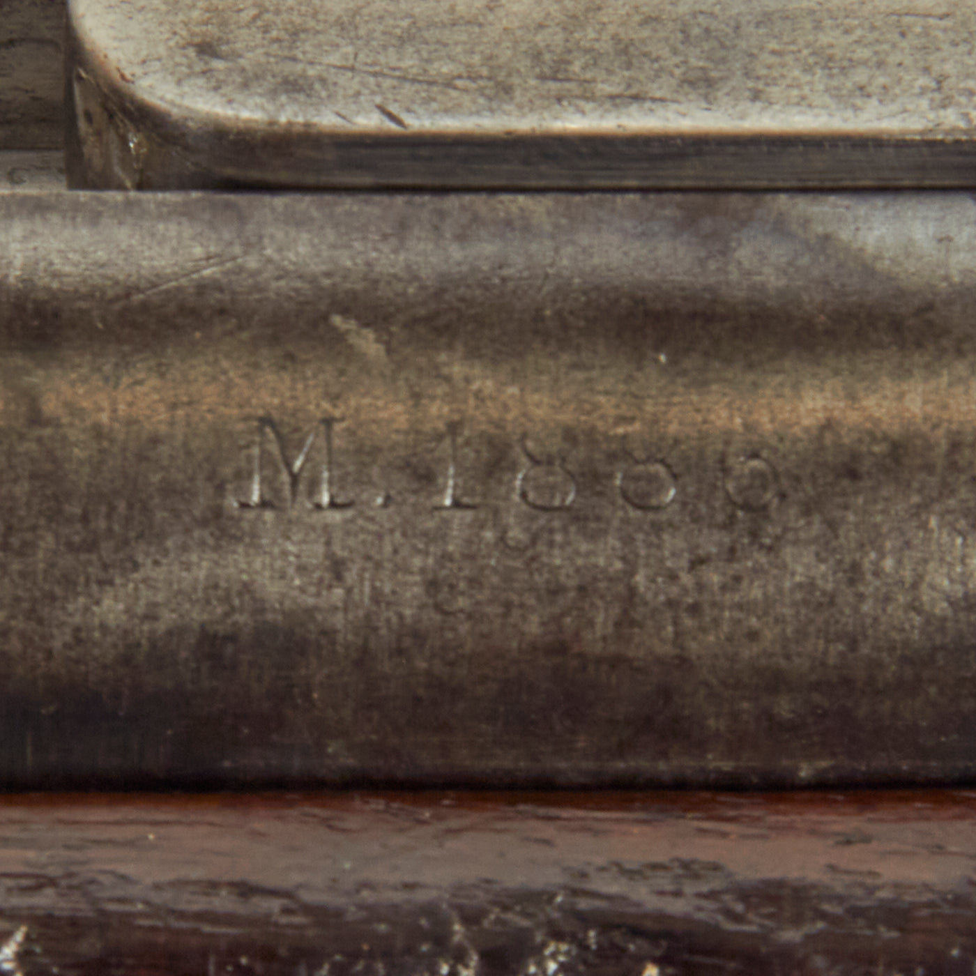 Ours is marked on the left rear receiver with M.1886 and the metalwork is a bit worn, which has made the receiver markings somewhat faint, but definitely still legible. The front end is marked with Œ.W.F.G. STEYR / 1886, for Österreichische Waffenfabriksgesellschaft, (ŒWG, Austrian Arms-Manufacturing Company), also commonly referred to as Steyr Werke. Steyr is an Austrian City just outside Vienna and at the time was the home of the entire Austrian arms production. They made Kropatschek rifles under contract for shipment to Portugal.