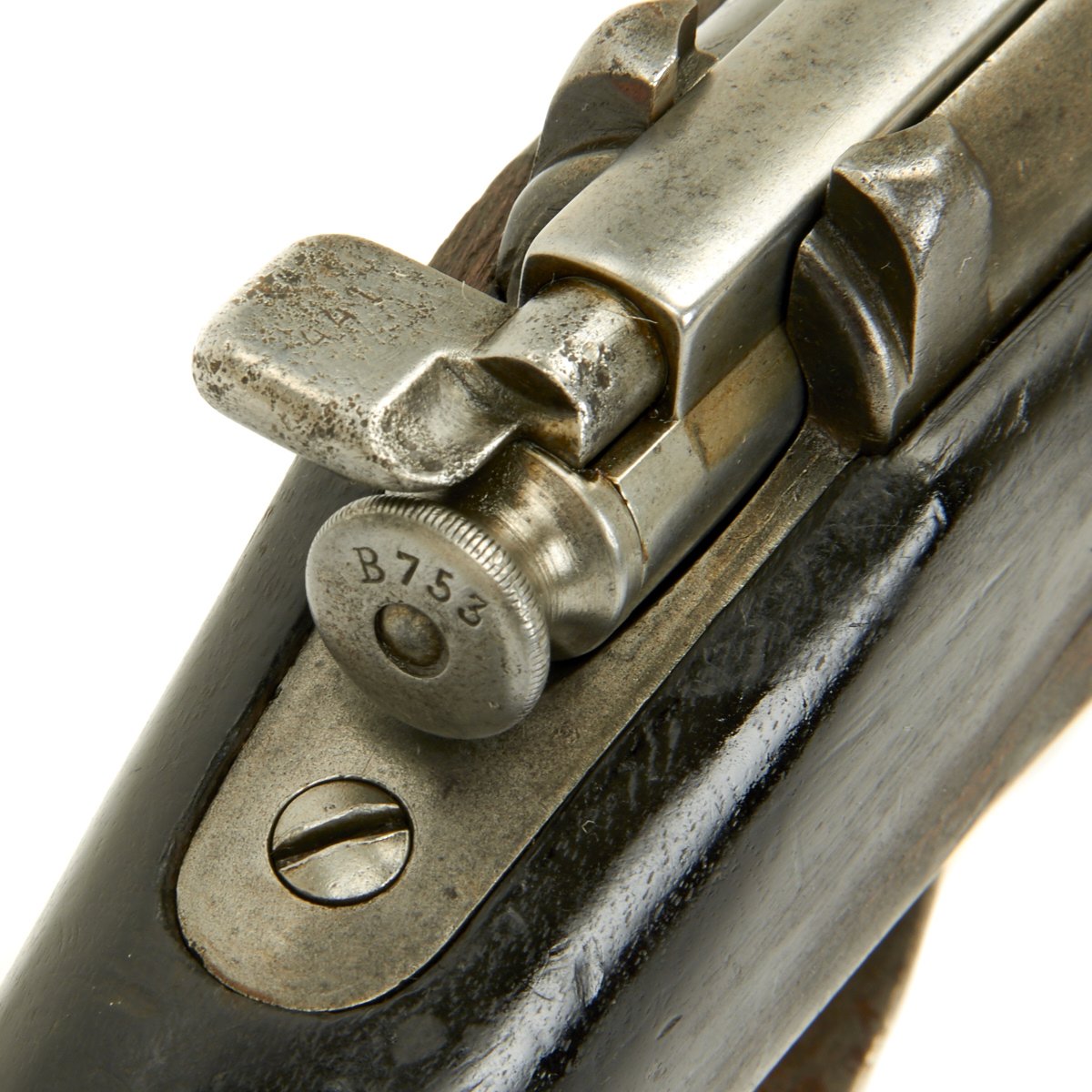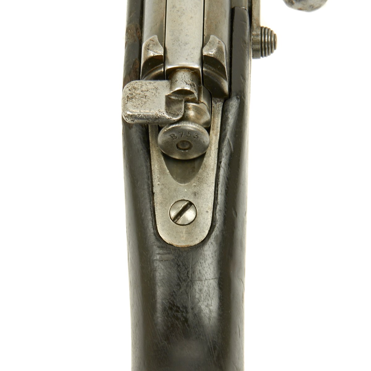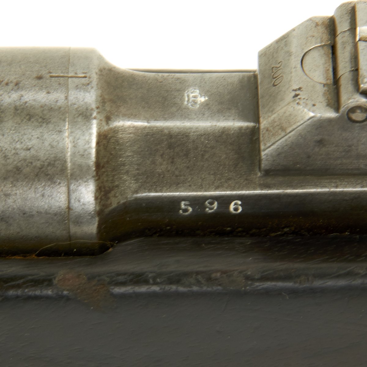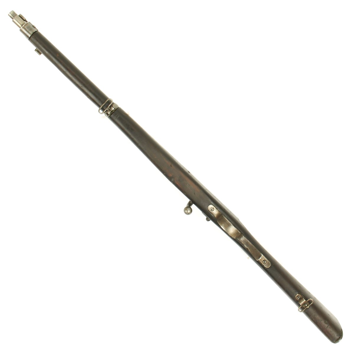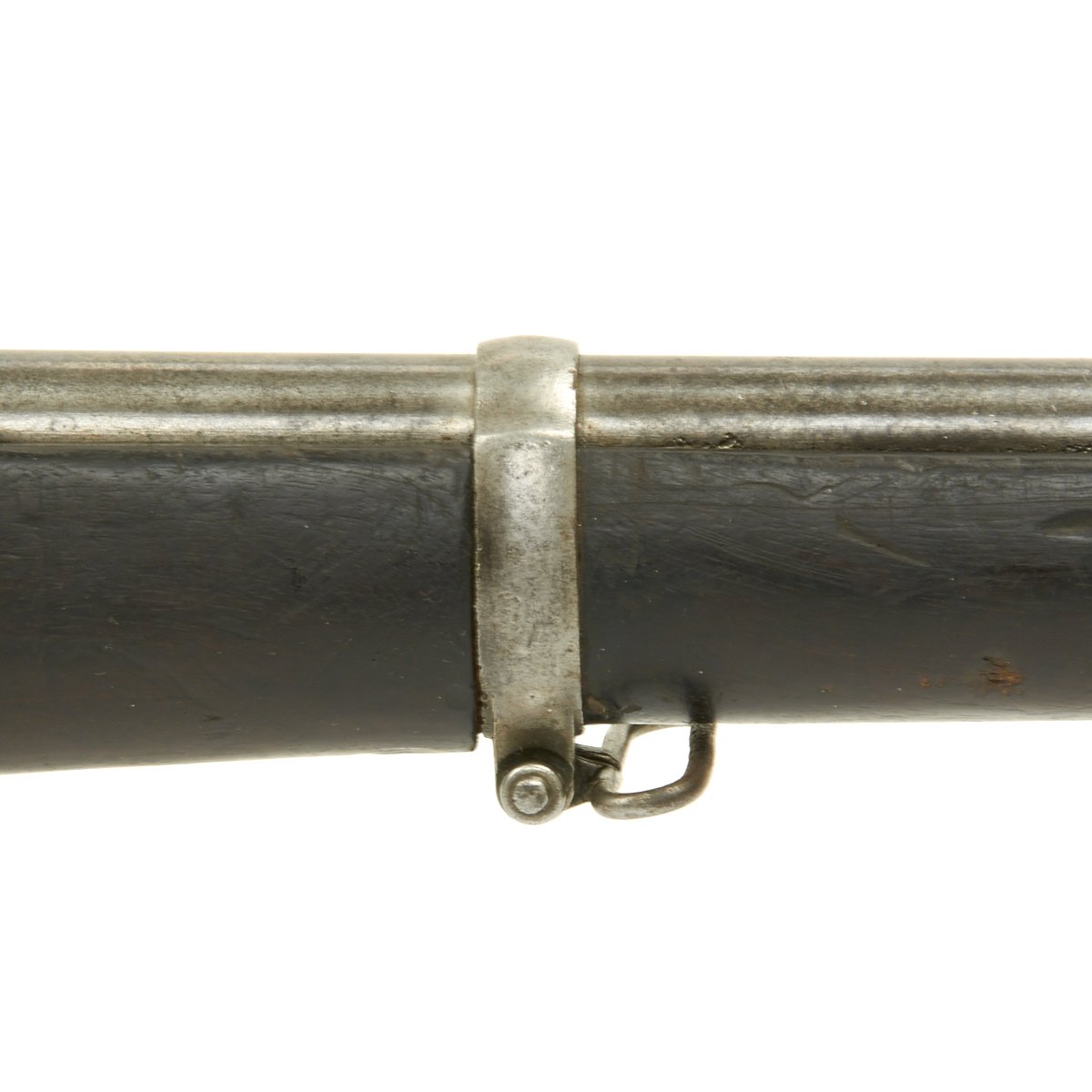 Three figure serial number 596 is on the barrel, however the serial numbers on the other components do not match, indicating long service and arsenal refitting. Offered in very good condition with sling swivels and original cleaning rod present. Bore shows lands and groves but is somewhat worn. Hard to find in this configuration.