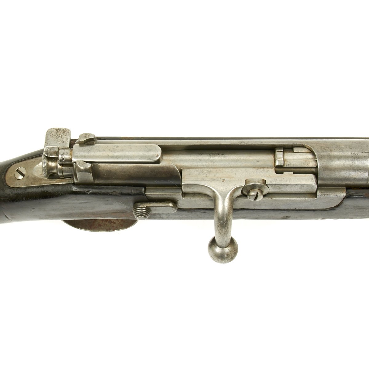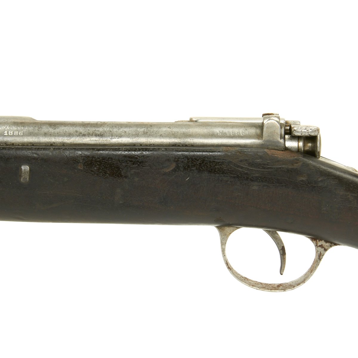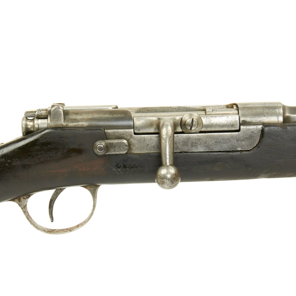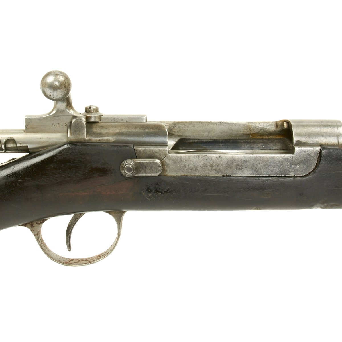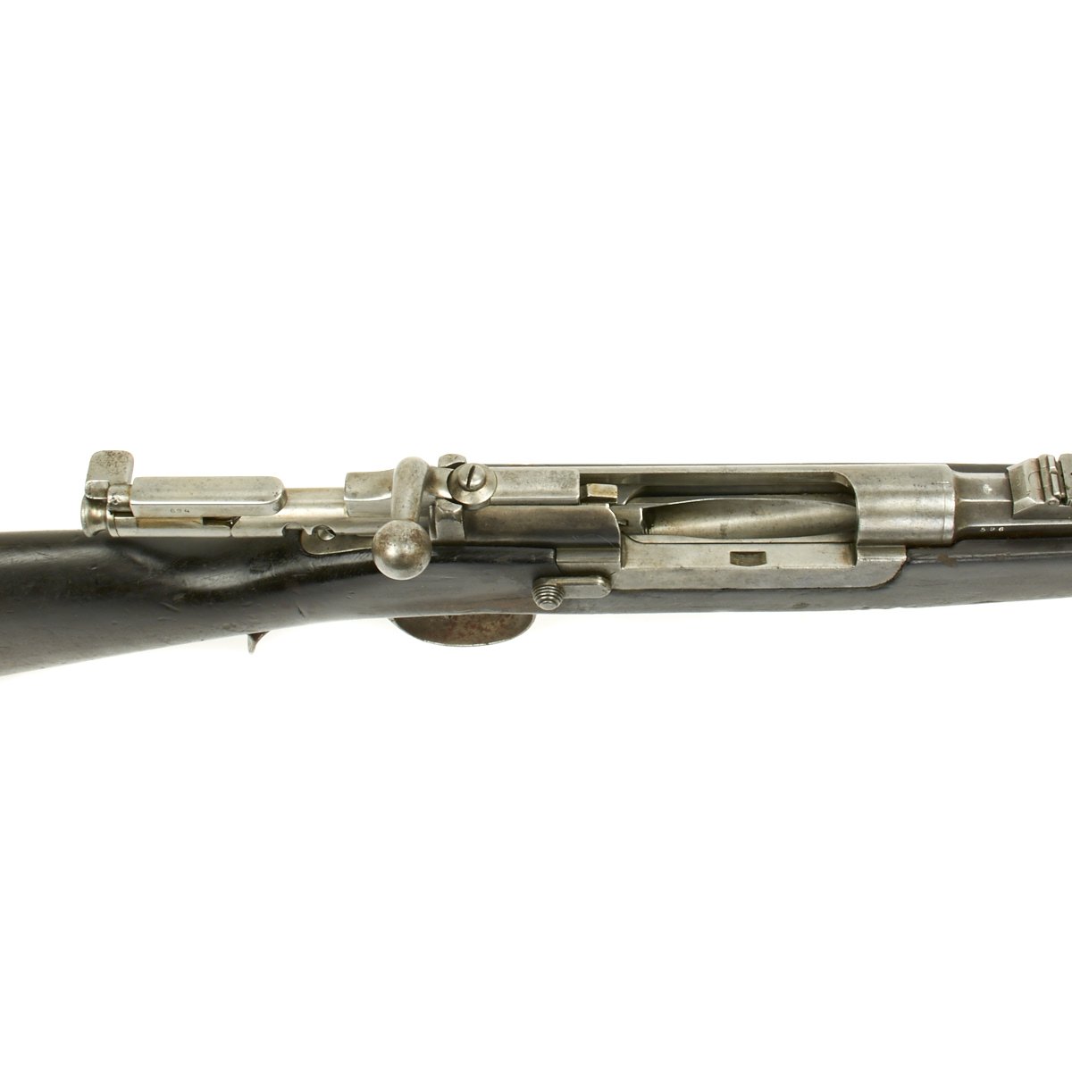 Original Item: One Only. In 1886 ALFRED VON KROPATSCHEK designed an 8mm rimmed cartridge rifle that became the fore runner to the French LEBEL. Known as the 1886 Kropatschek Rifle it's big customer was PORTUGAL. Production lasted from 1886 until 1898, however many saw service in the First World War and later in the Spanish Civil War of the 1930's. Kropatschek's rifles used a tubular magazine (constructed of nickel-plated steel) of his design, of the same type used in the German Mauser Gewehr 1871/84 and the Japanese Type 22 Murata. While designed for black powder, the Kropatschek action proved to be strong enough to handle smokeless powder.