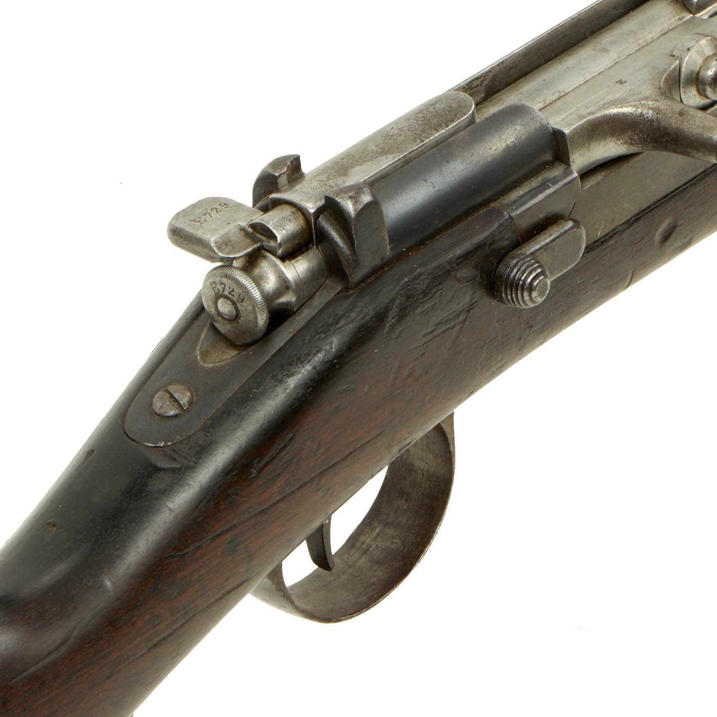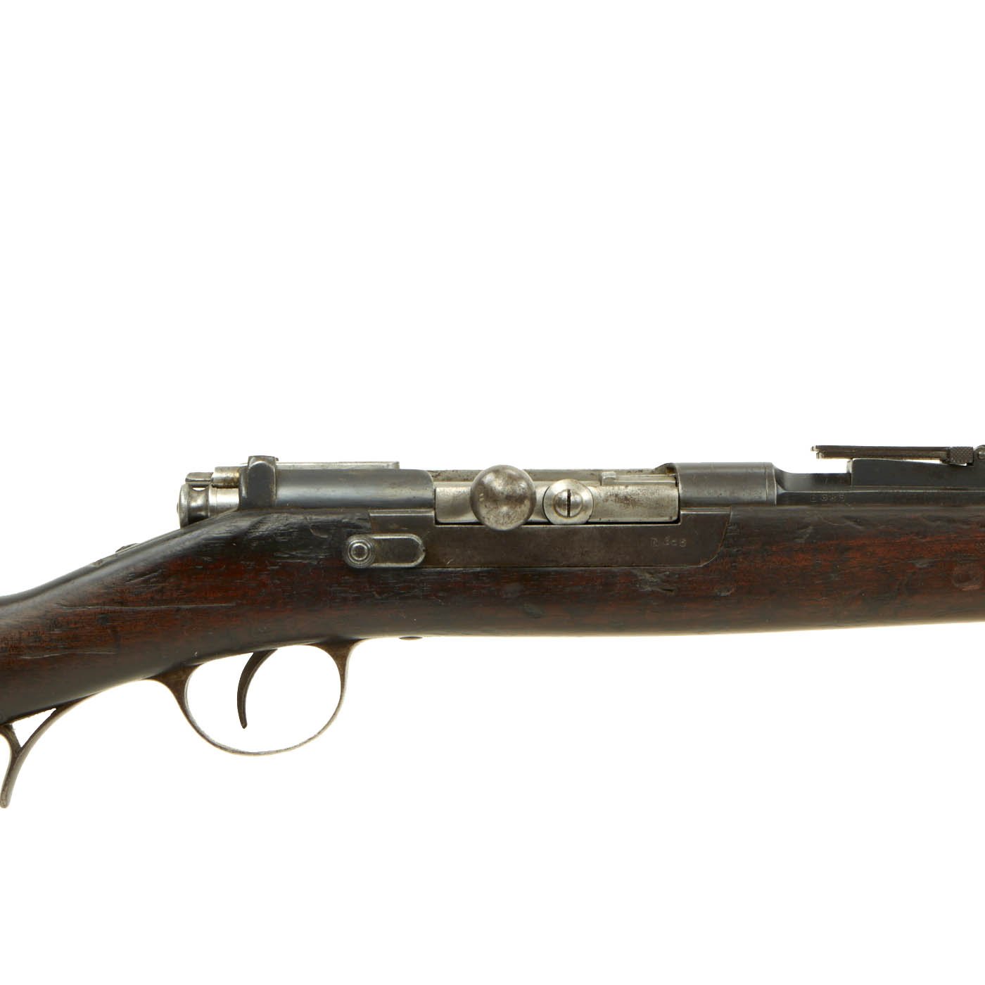Original Item: One one Available. In 1886 ALFRED VON KROPATSCHEK designed an 8mm rimmed cartridge rifle that became the fore runner to the French LEBEL. Known as the 1886 Kropatschek Rifle it's big customer was PORTUGAL. Production lasted from 1886 until 1898, however many saw service in the First World War and later in the Spanish Civil War of the 1930's. Kropatschek's rifles used a tubular magazine (constructed of nickel-plated steel) of his design, of the same type used in the German Mauser Gewehr 1871/84 and the Japanese Type 22 Murata. While designed for black powder, the Kropatschek action proved to be strong enough to handle smokeless powder.