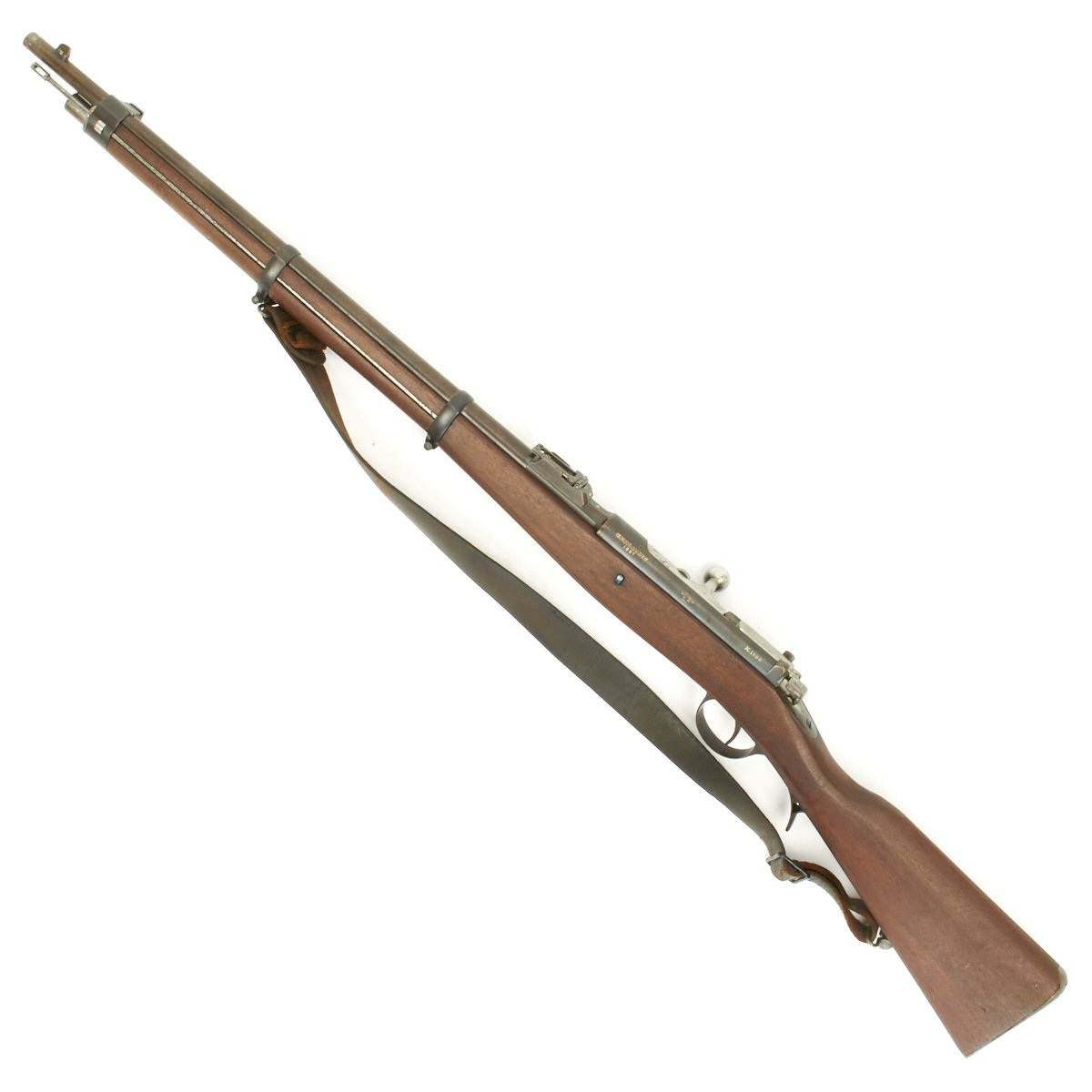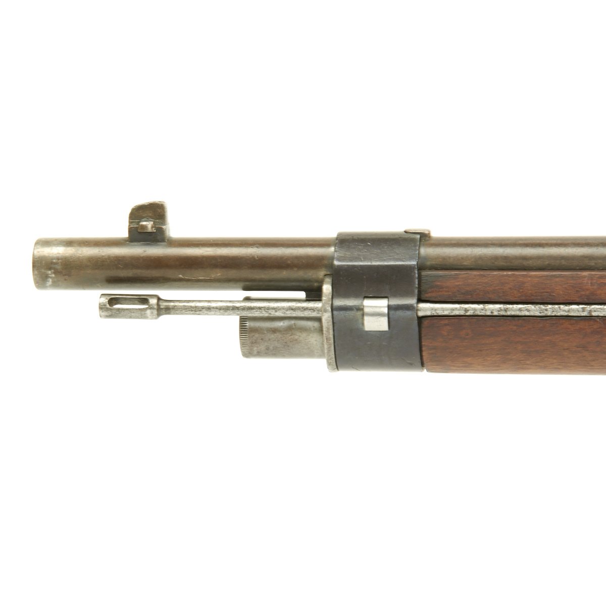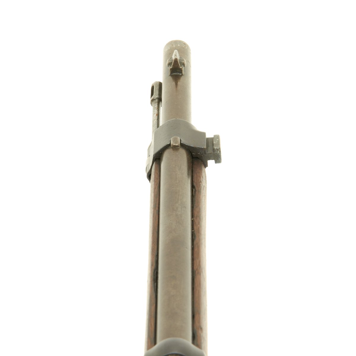 Our example is an excellent condition short rifle version also known as a ligth carbine called the Carabina de Caçadores 8 mm m/1886: 8 mm Light Infantry Carbine. It is fitted with a 25" barrel and a full tube magazine under the barrel. Ours is marked M.1886 and :- Œ.W.F.G. STEYR 1886 for Österreichische Waffenfabriksgesellschaft, (ŒWG, Austrian Arms-Manufacturing Company), also commonly referred to as Steyr Werke. Steyr is an Austrian City just outside Vienna and at the time was the home of the entire Austrian arms production. They made Kropatschek rifles under contract for shipment to Portugal.