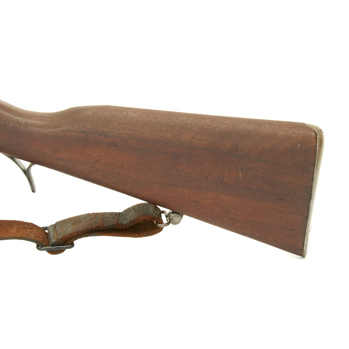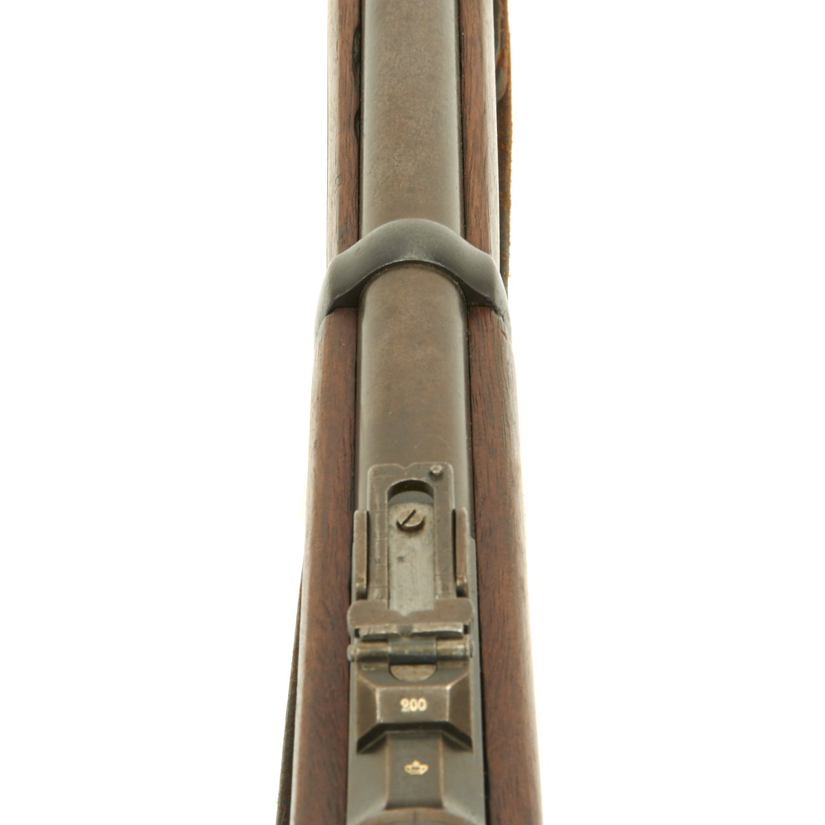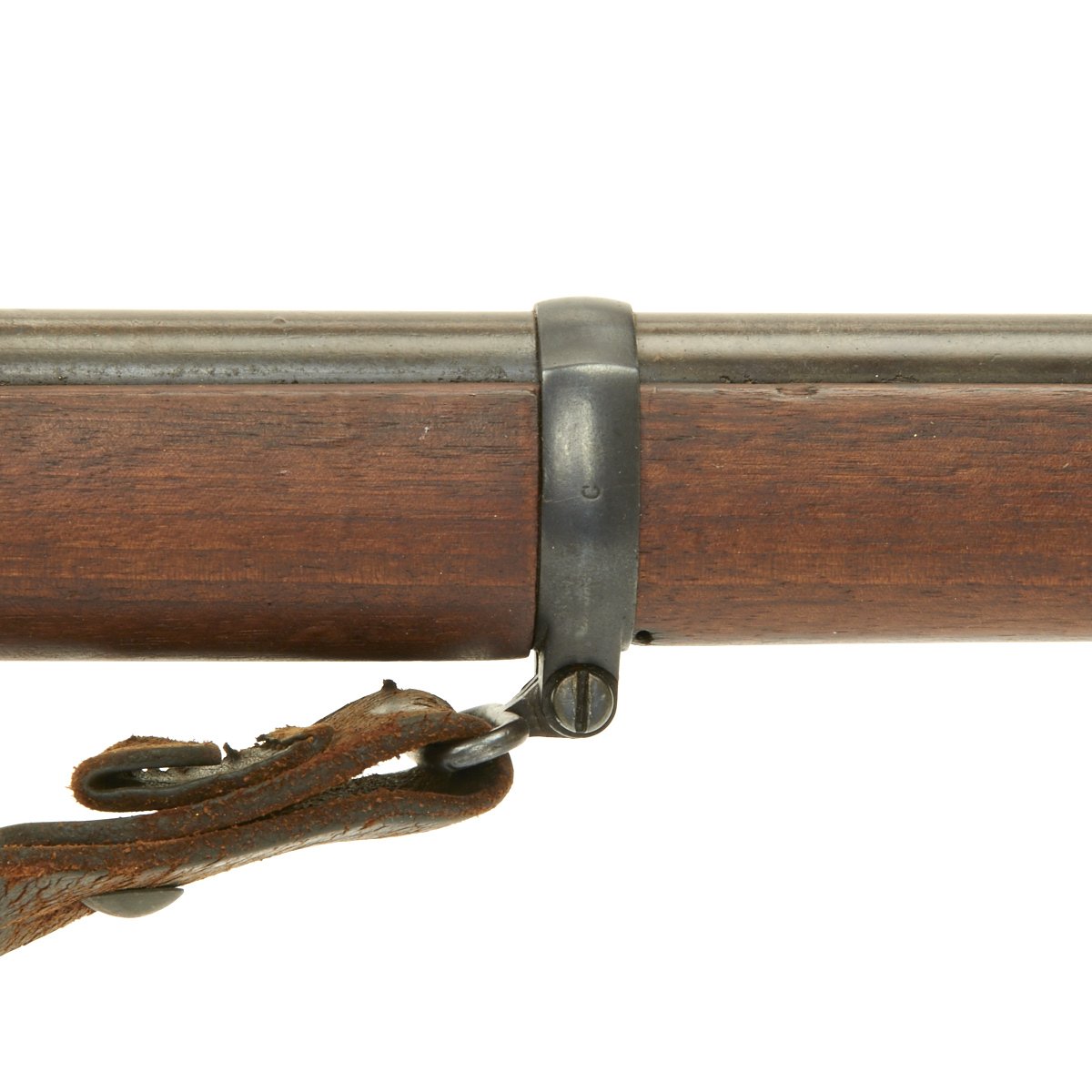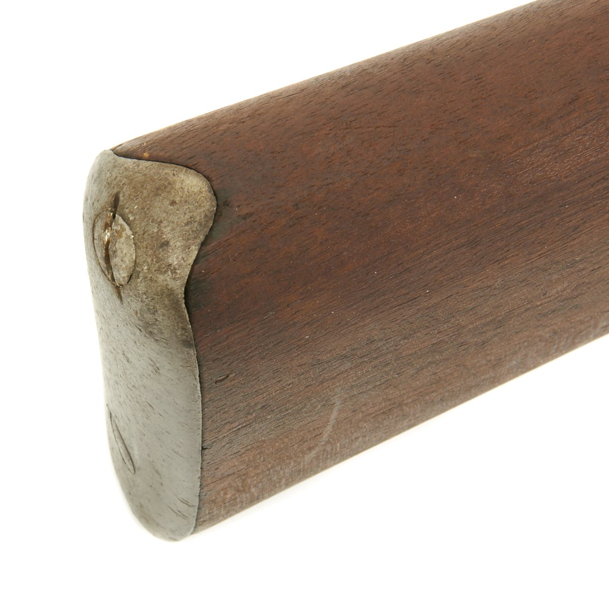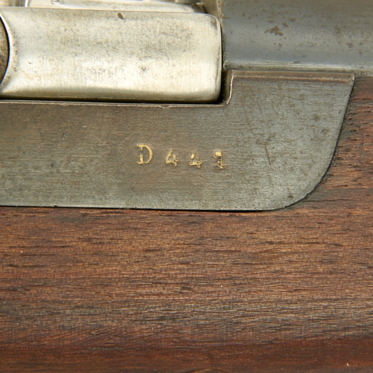 Serial number D441 is on the barrel, receiver, and all parts of the bolt. Offered in very good condition with sling swivels and original cleaning rod present. Bore is in excellent condition with a bright finish and clear lands and grooves. Stock is excellent as well, with just a few dents and chips, and a wonderful finish. Hard to find in this wonderful condition.